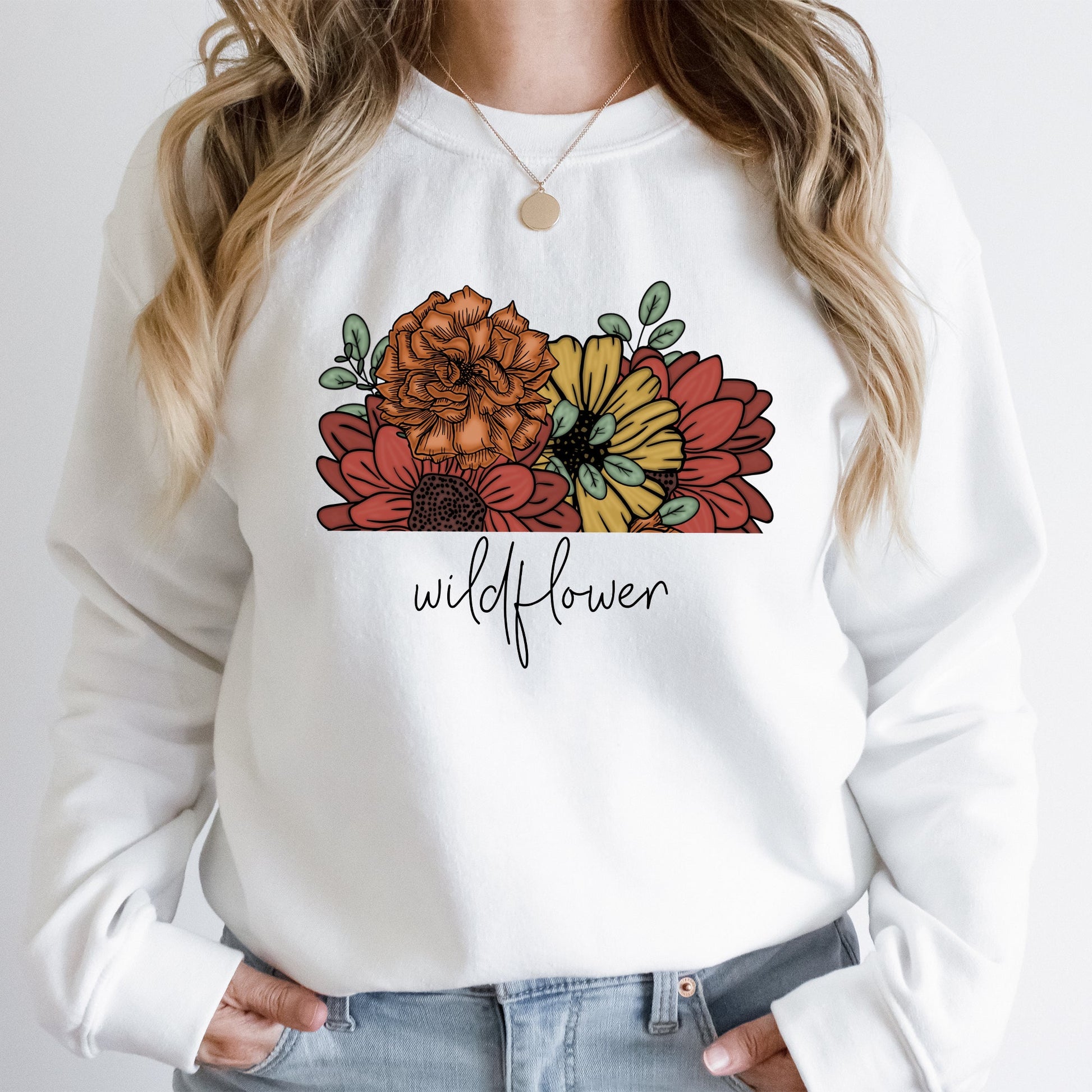 Bold Wildflower Bouquet Comfy Sweatshirt | Bold Statement Flowers | Boho Spring Flowers | Warm Fleece Lined | Wildflower | Warm Colors | Floral Print
