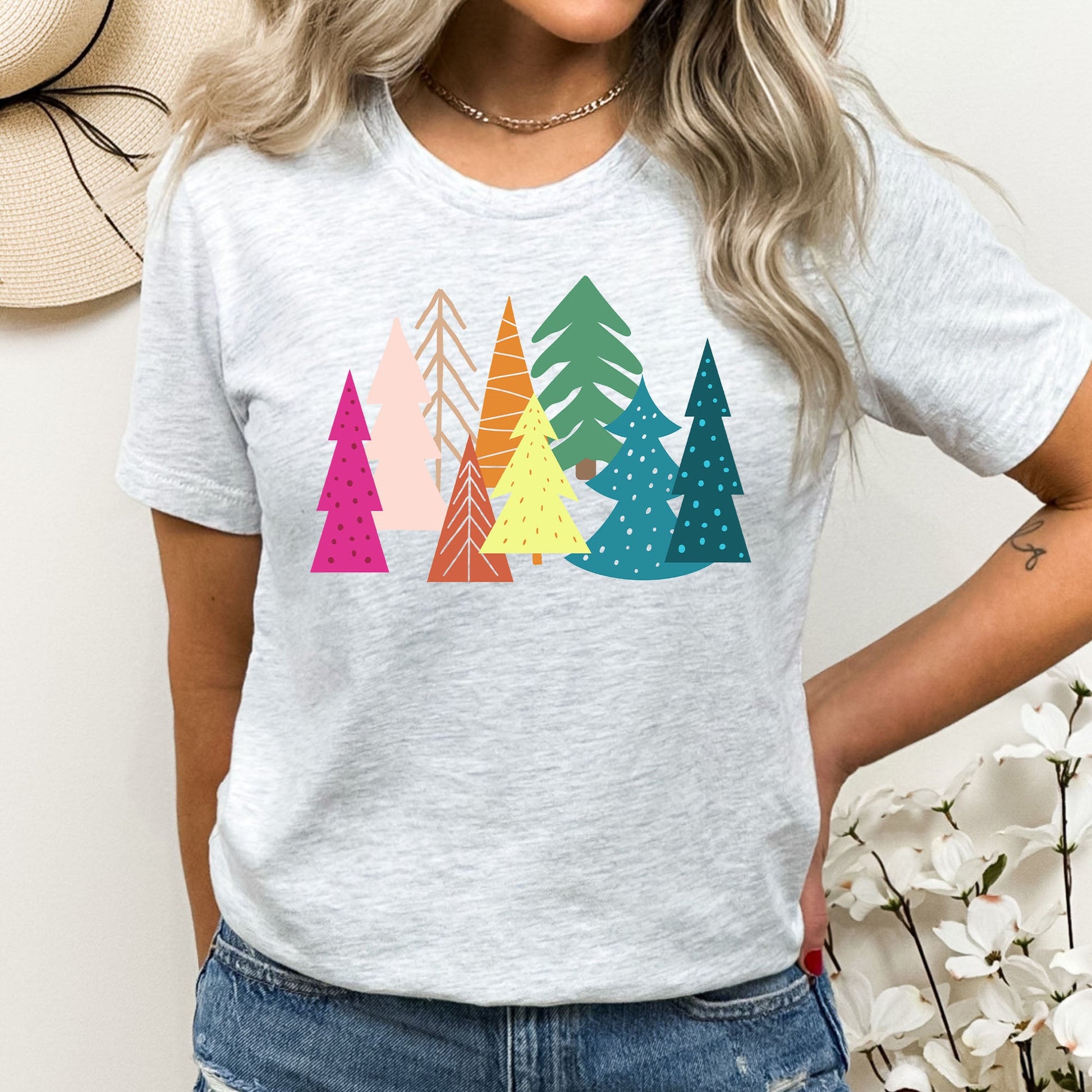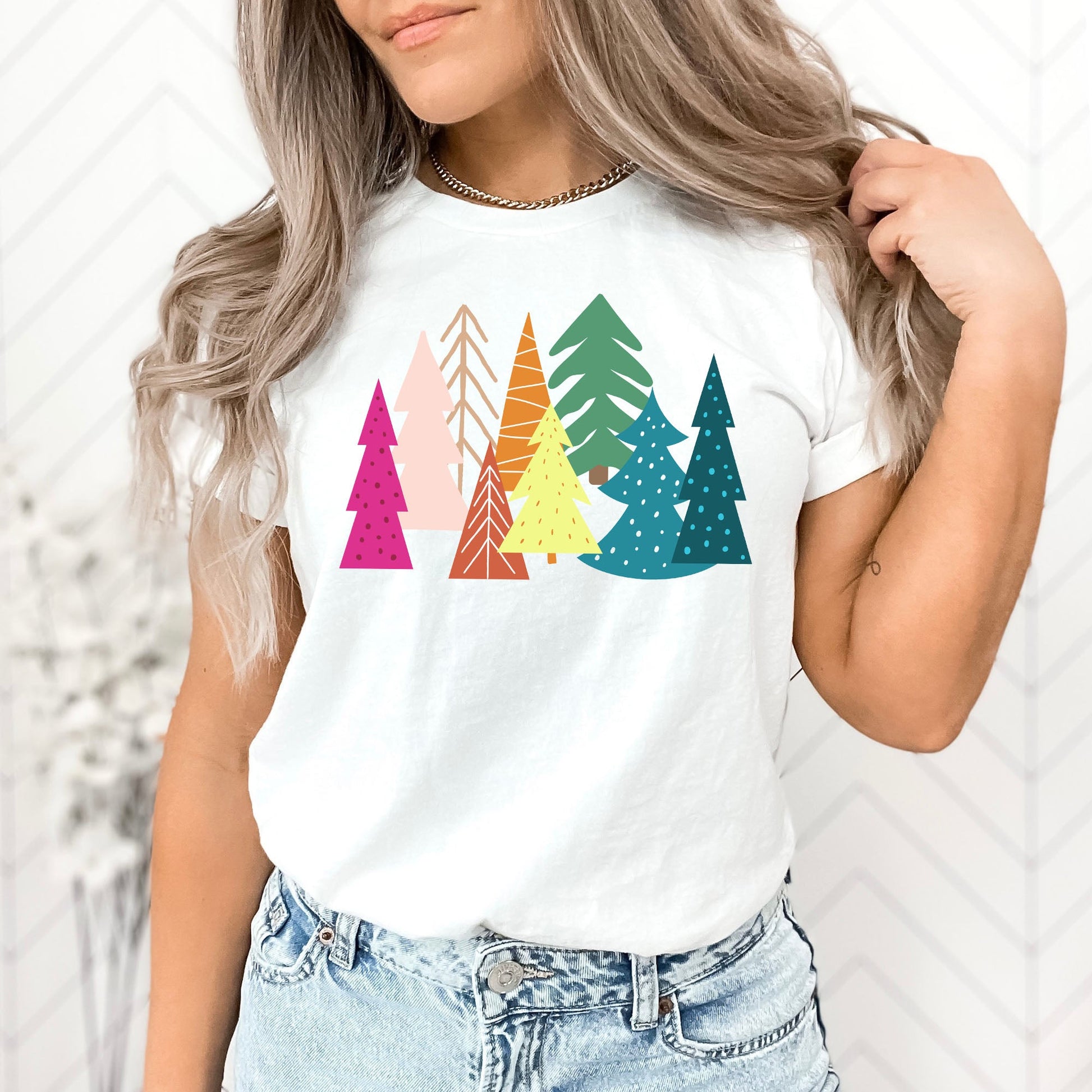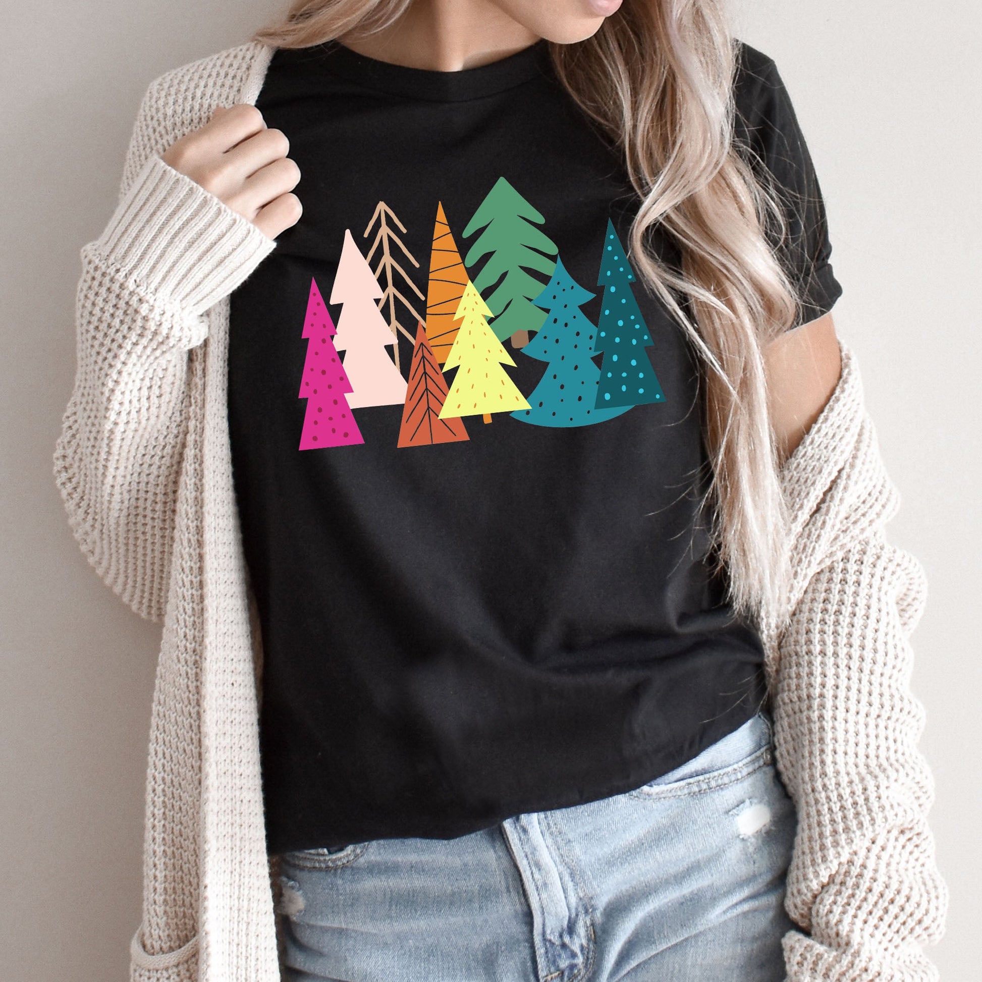 Bright Merry Christmas Trees Graphic Tee | Colorful | Merry and Bright | Holiday Season | Forest | Unique | Layering Tee