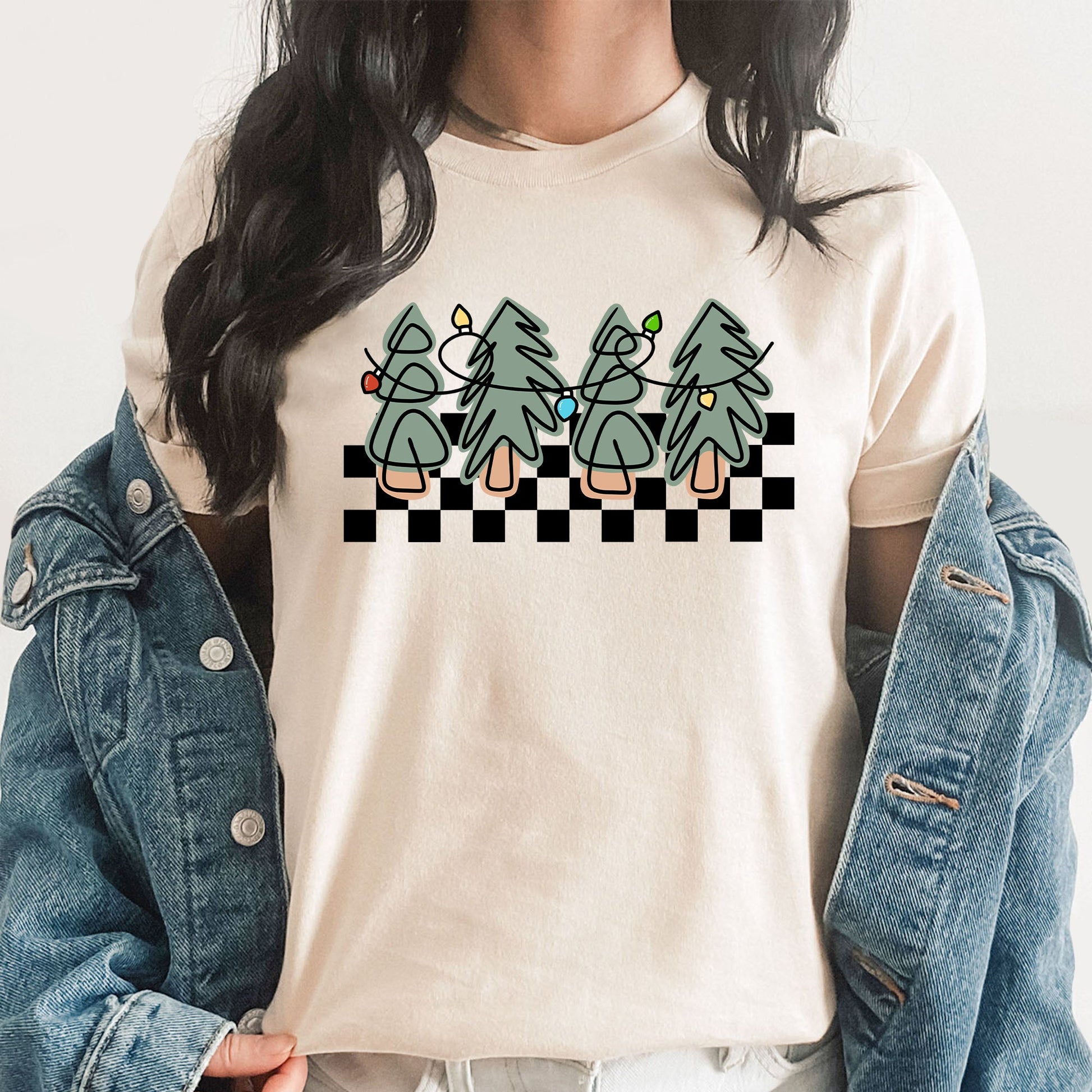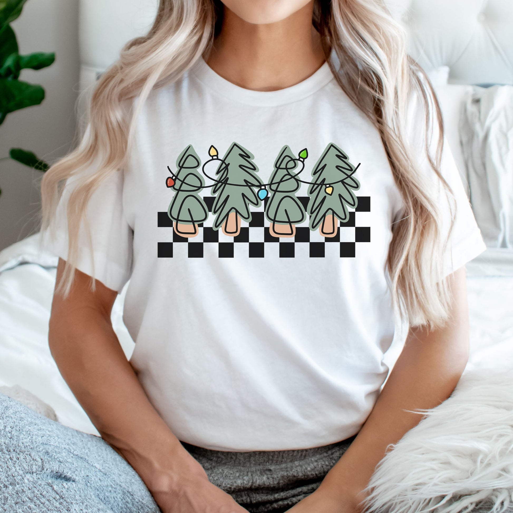 Checkered Tree Doodles Graphic Tee | Christmas Style | Christmas Lights | Doodle Trees | Holiday Season | Trendy | Layering Tee