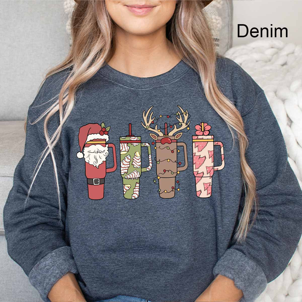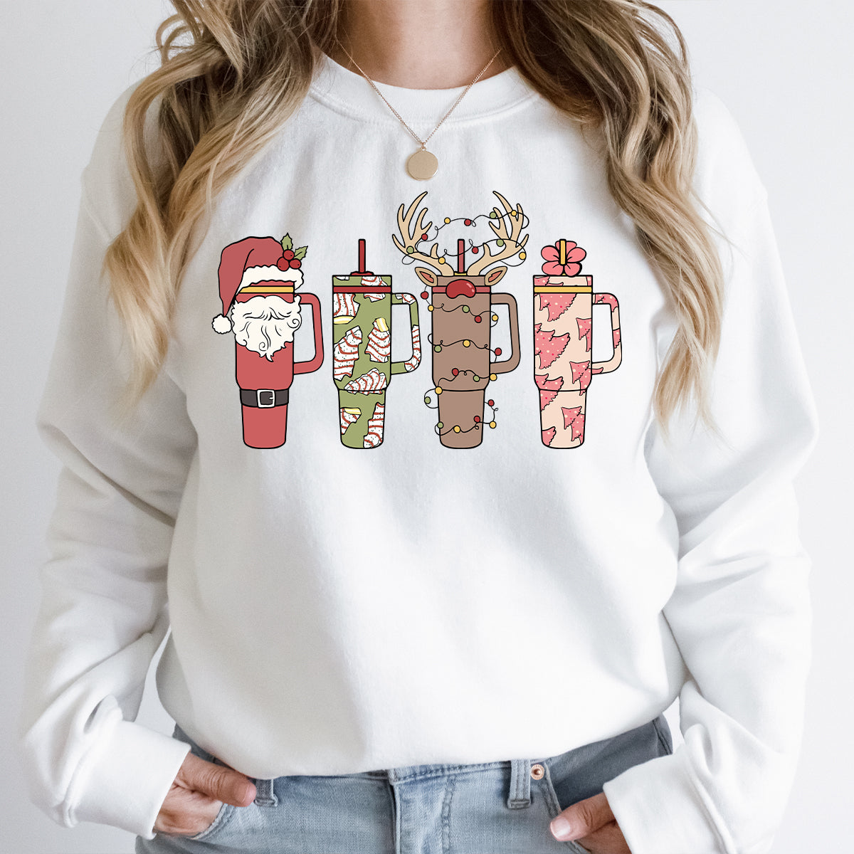 Christmas Stanley Cups Comfy Sweatshirt | Holiday Cups | Santa | Snack Cake | Reindeer | Trendy | Favorite Cup | Christmas