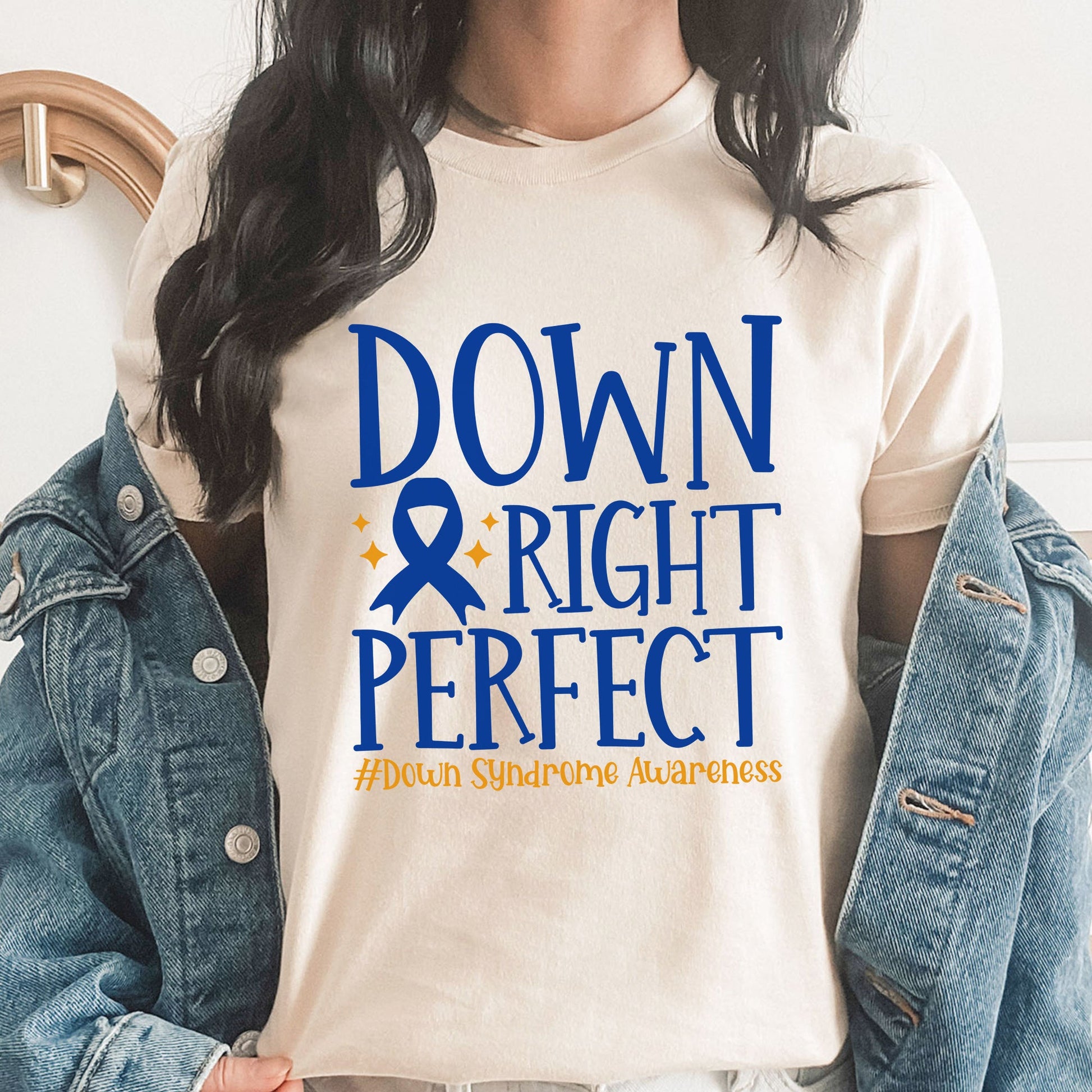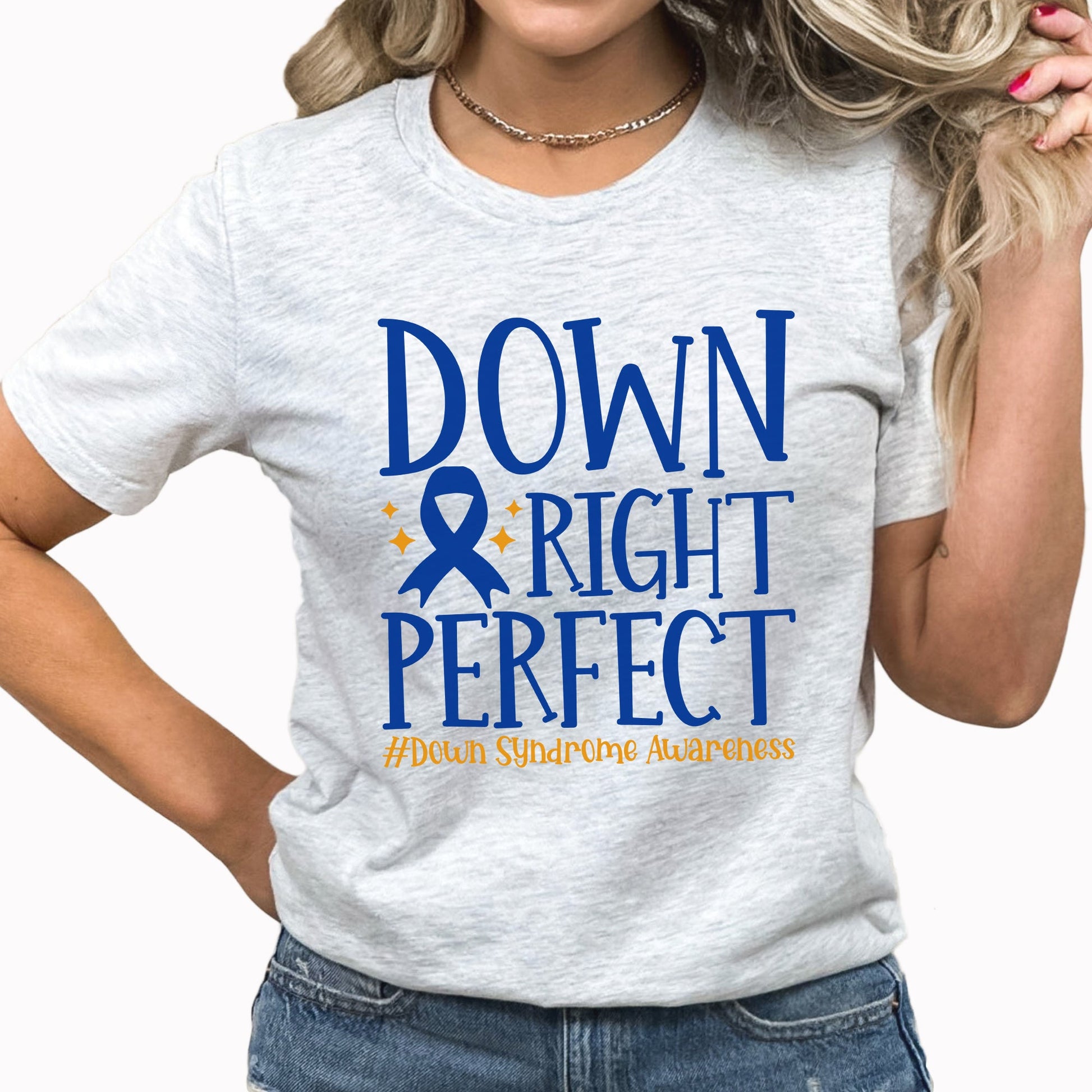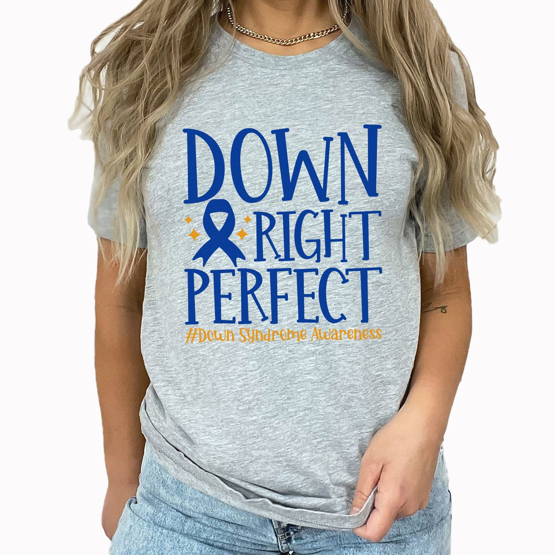 Down Right Perfect Graphic Tee | Down Syndrome | Extra Chromosome | Lucky Few | Down Syndrome Awareness | Blue Ribbon