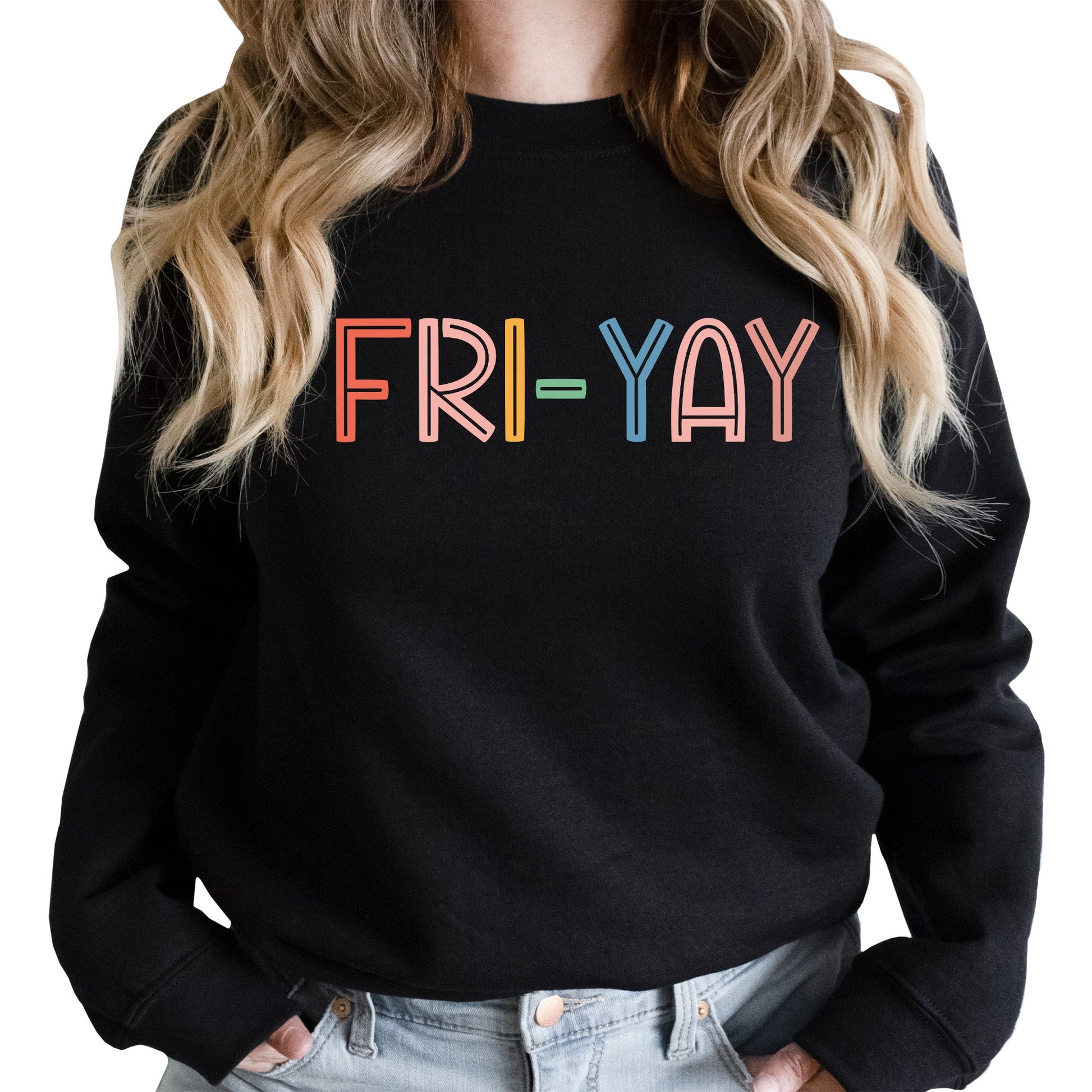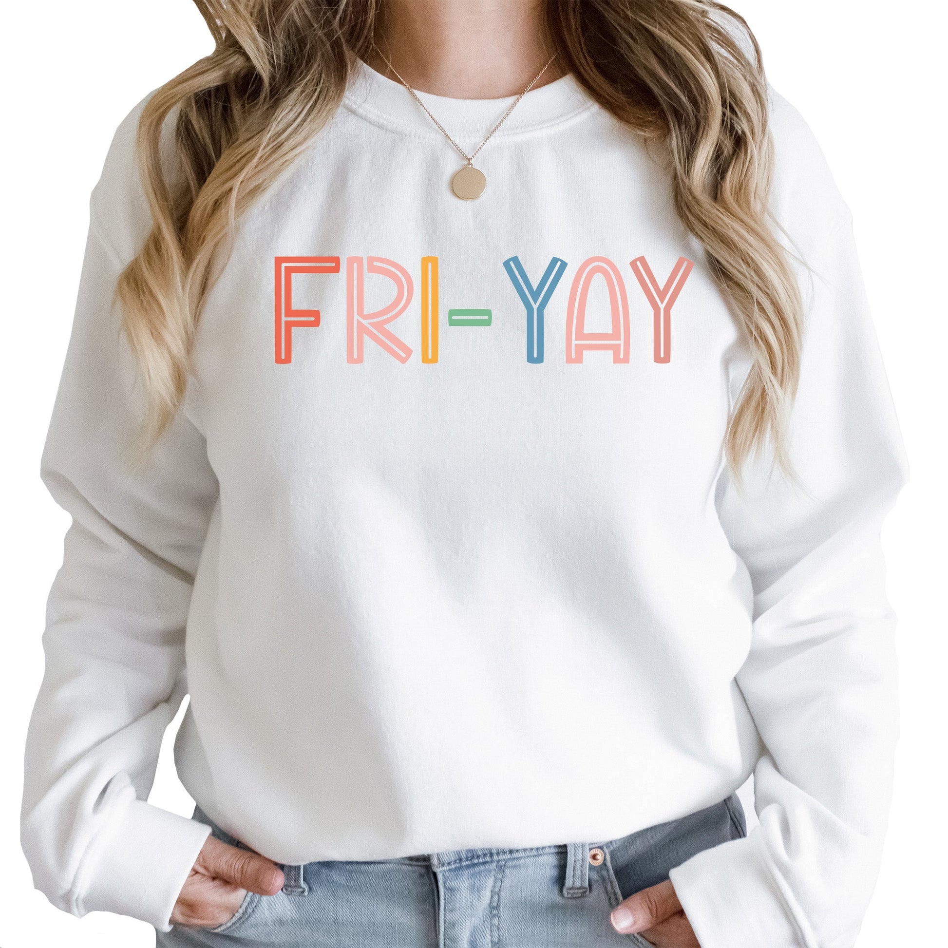 Fri-Yay Comfy Sweatshirt | Colorful Graphic | Teacher | School | Friday | Yay | Weekend | Learn | School Break | Celebrate | Bright Colors | Fun Friday