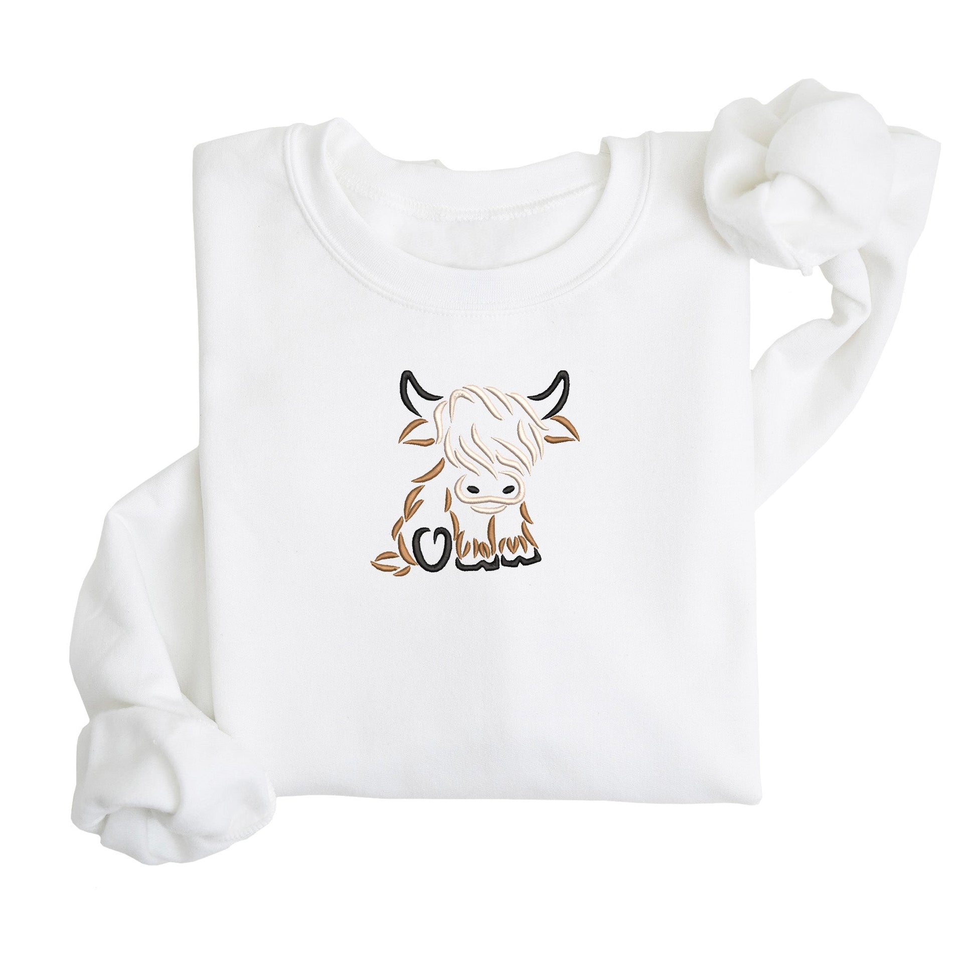 Highland Cow Embroidered Sweatshirt | Fleece Lined Pullover | Western Cow | Cute Animal | Baby Cow | Stitched