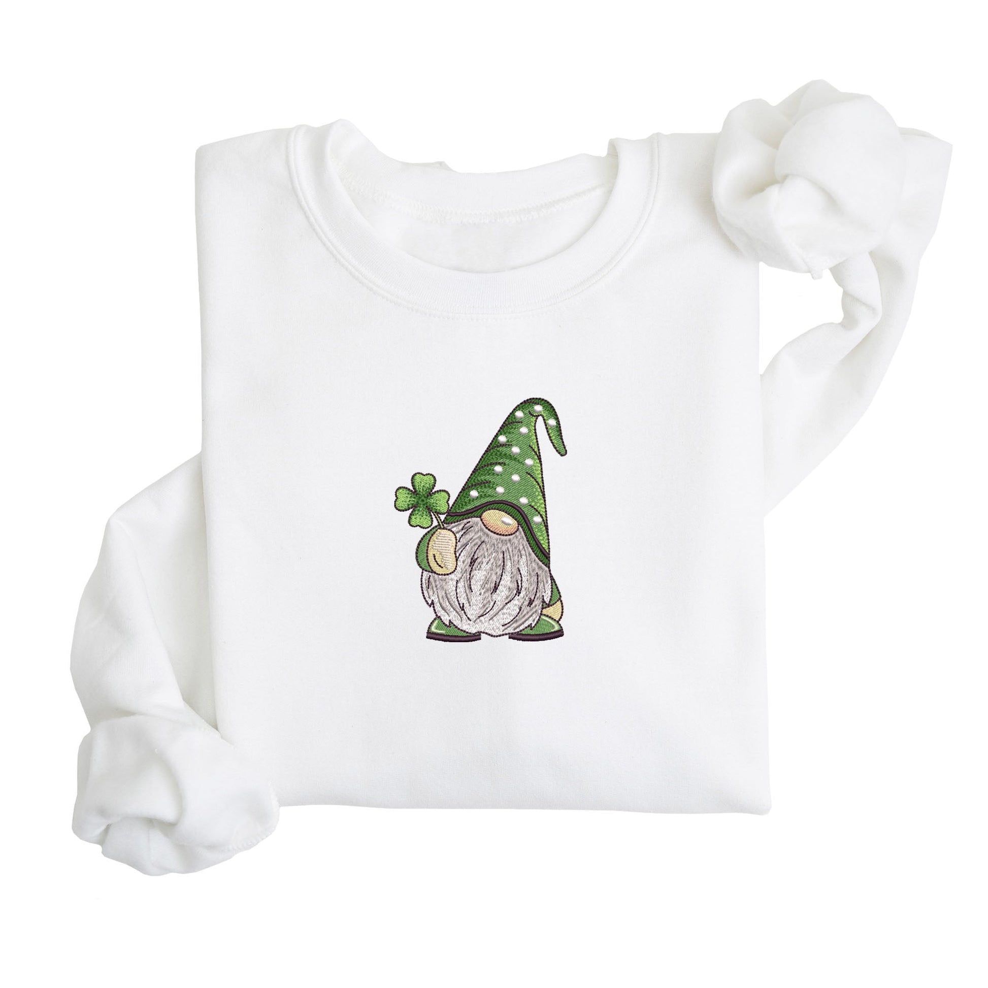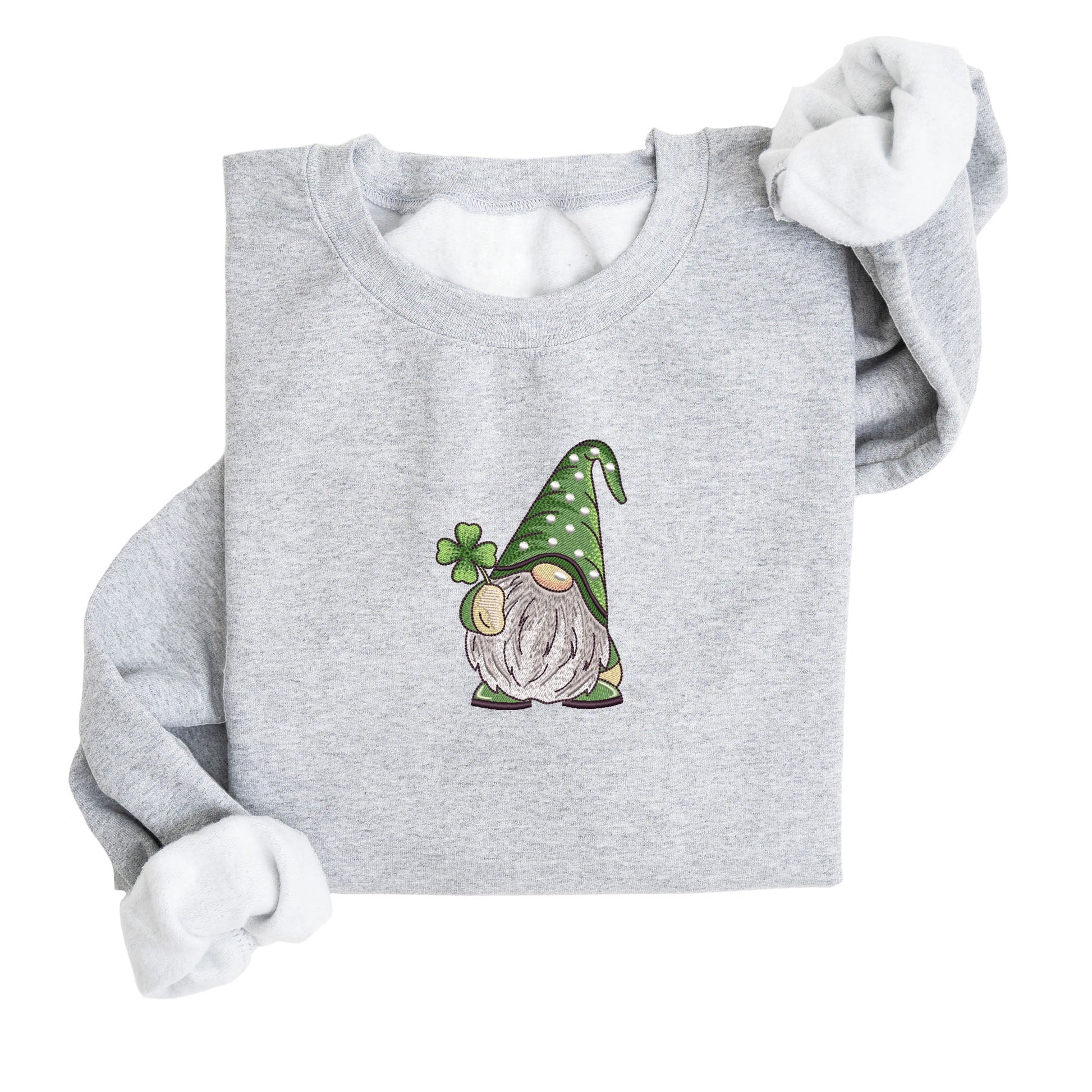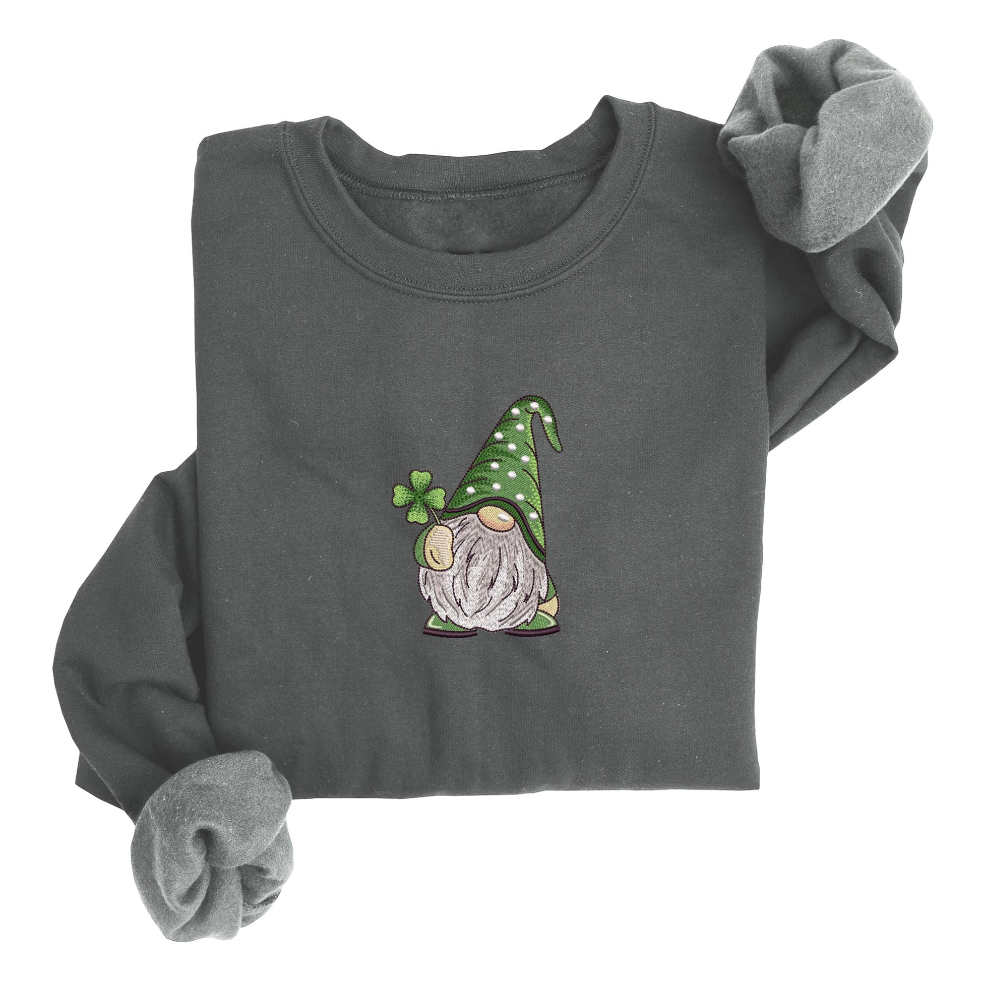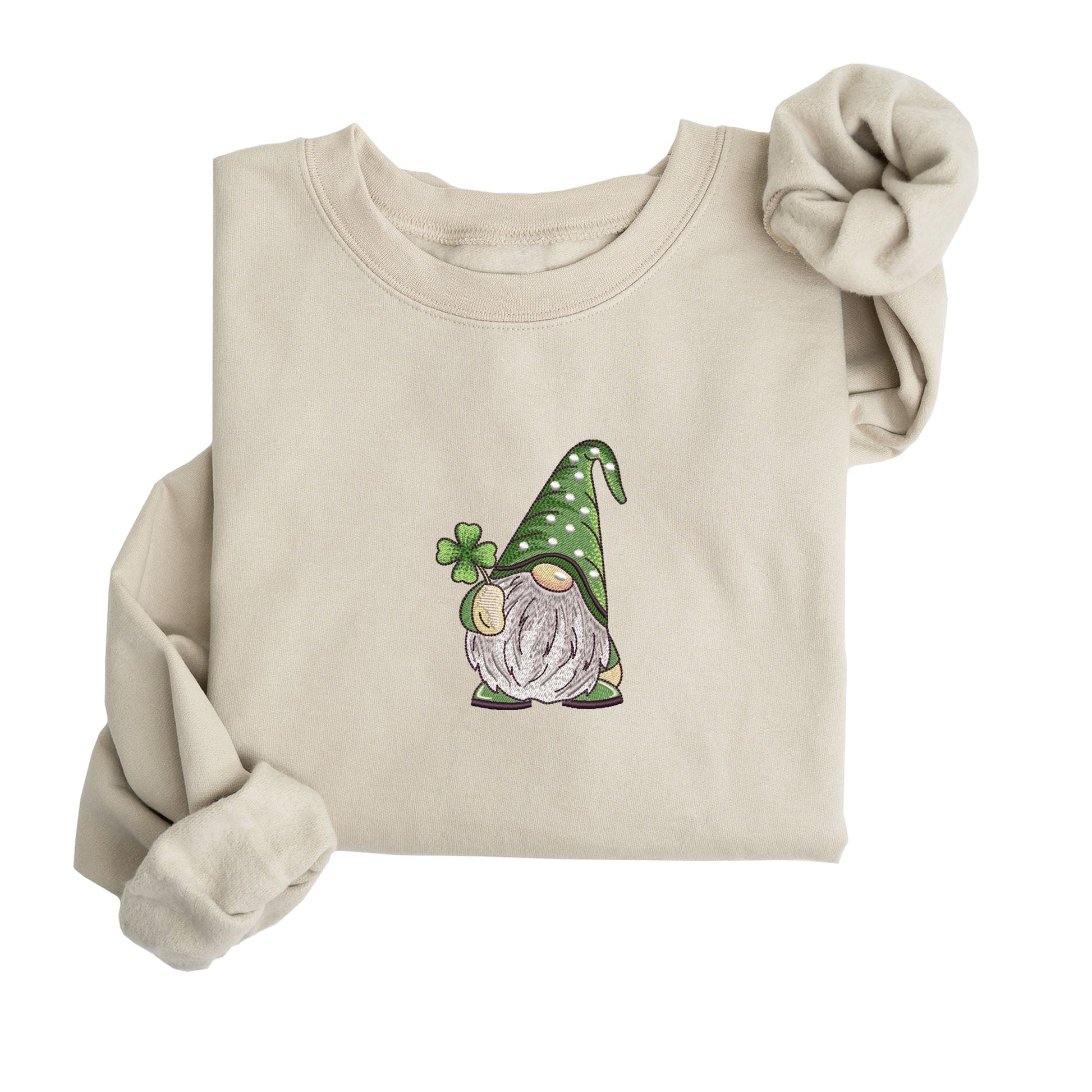 Shamrock Gnome Embroidered Sweatshirt | Fleece Lined Pullover | St. Patrick's Day | Leprechaun | Shamrock | Four Leaf Clover | Stitched | Green | Lucky