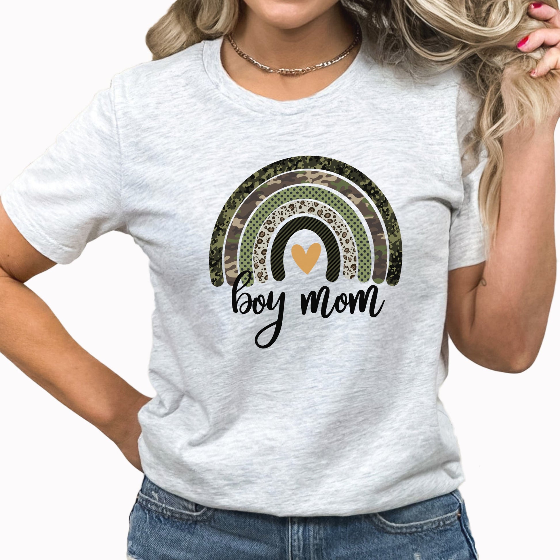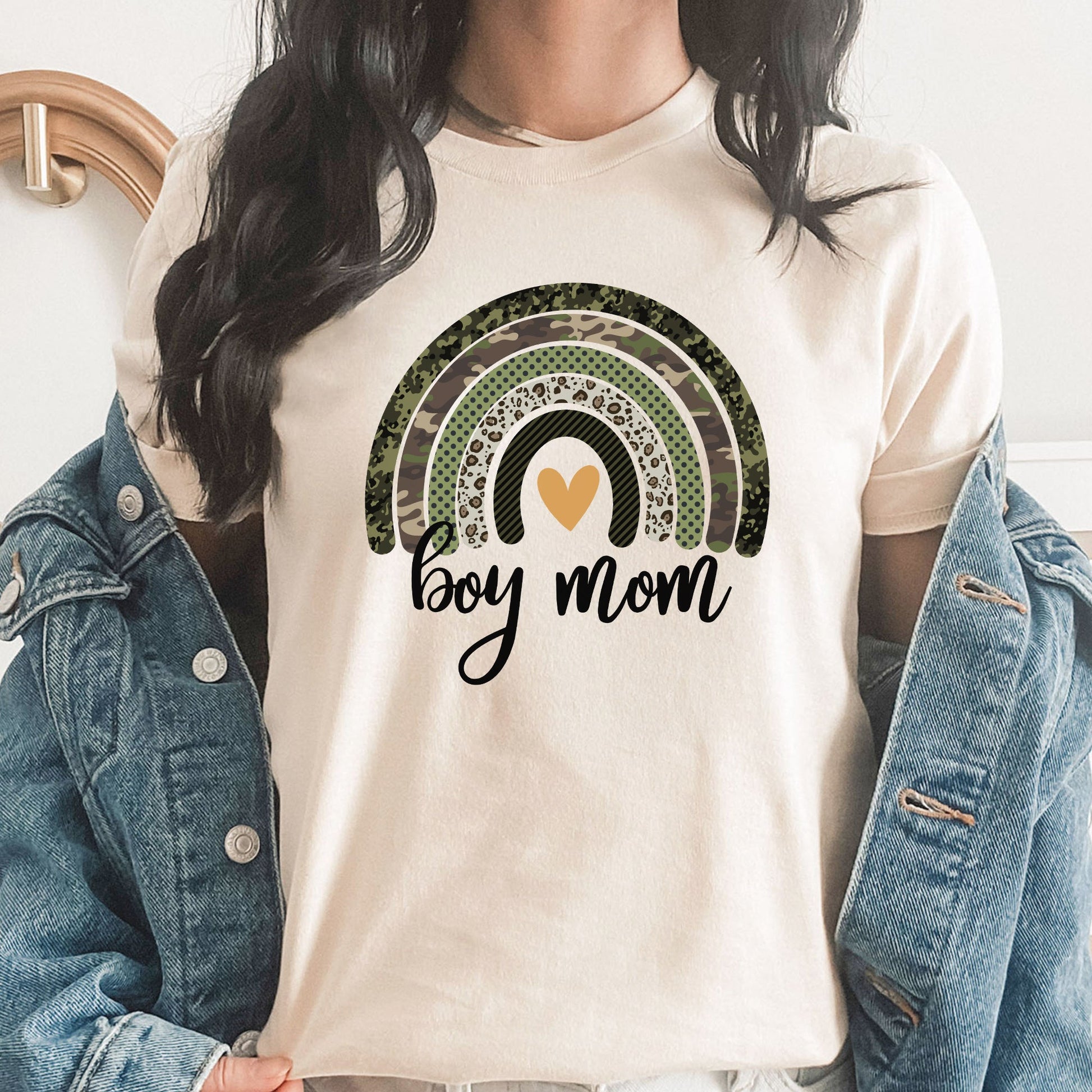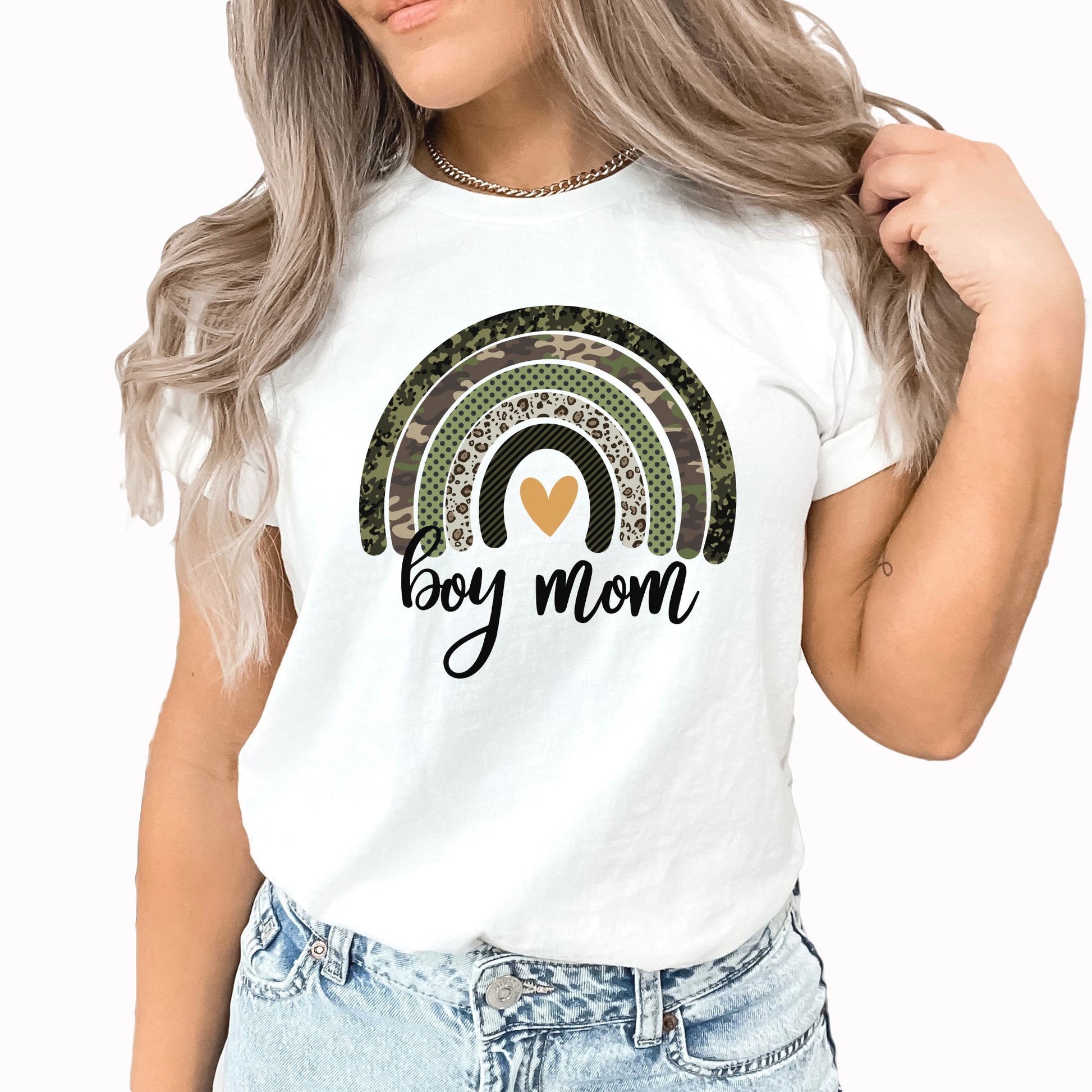 Boy Mom Camouflage Rainbow Graphic Tee | Dirt | Mom Of Both | Little Boys | Mom Life | Camouflage | Mother | Children
