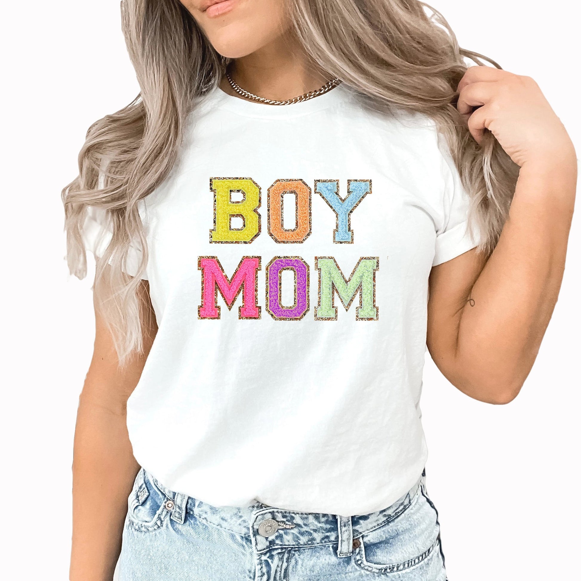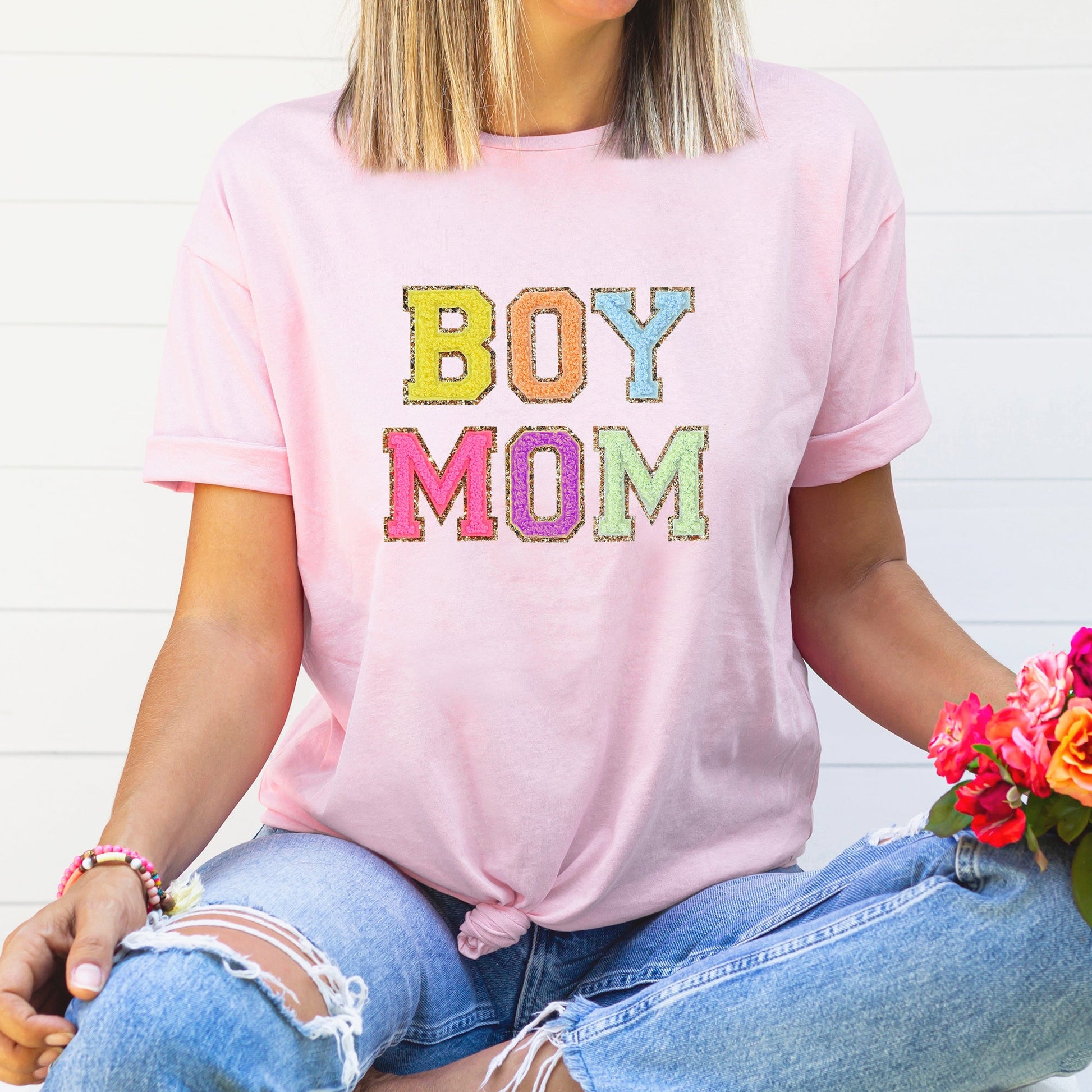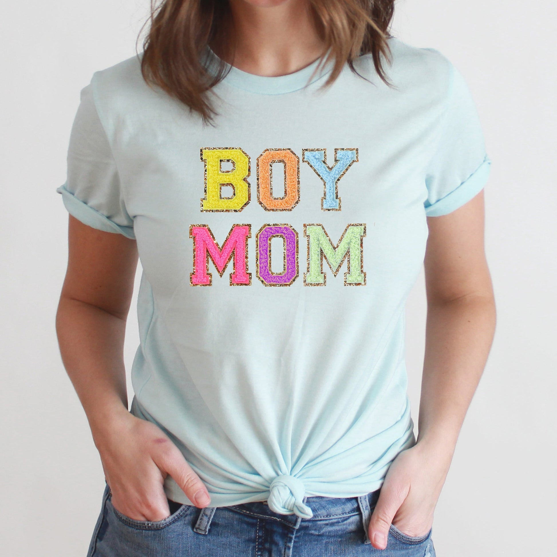 Boy Mom Graphic Tee | Varsity Letter | Mom | Mother | Mama | Mother's Day | Block Lettering