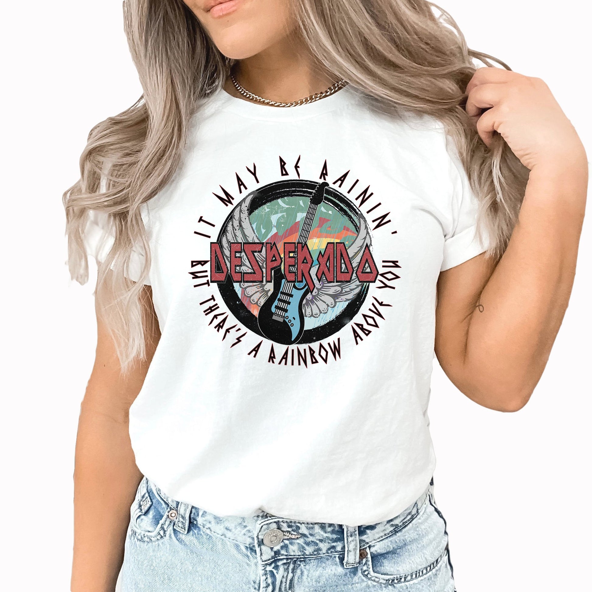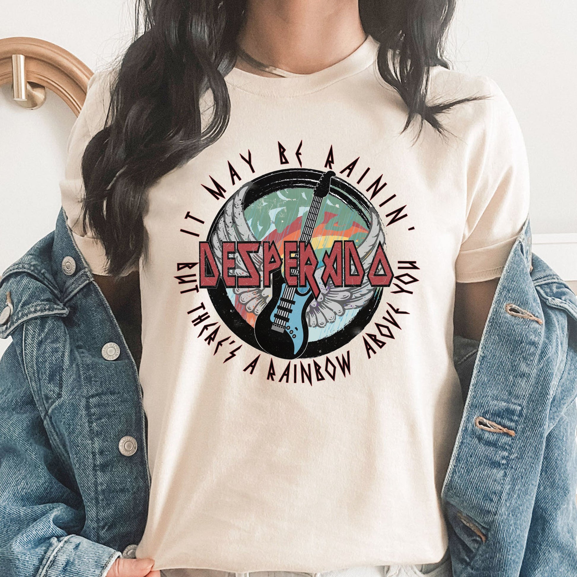 Whether you're attending a concert, enjoying a casual day out, or simply want to infuse your style with musical flair, the "Desperado" Graphic Tee is the perfect choice. It's a wearable ode to the magic of music, allowing you to carry a piece of musical history with you wherever you go.