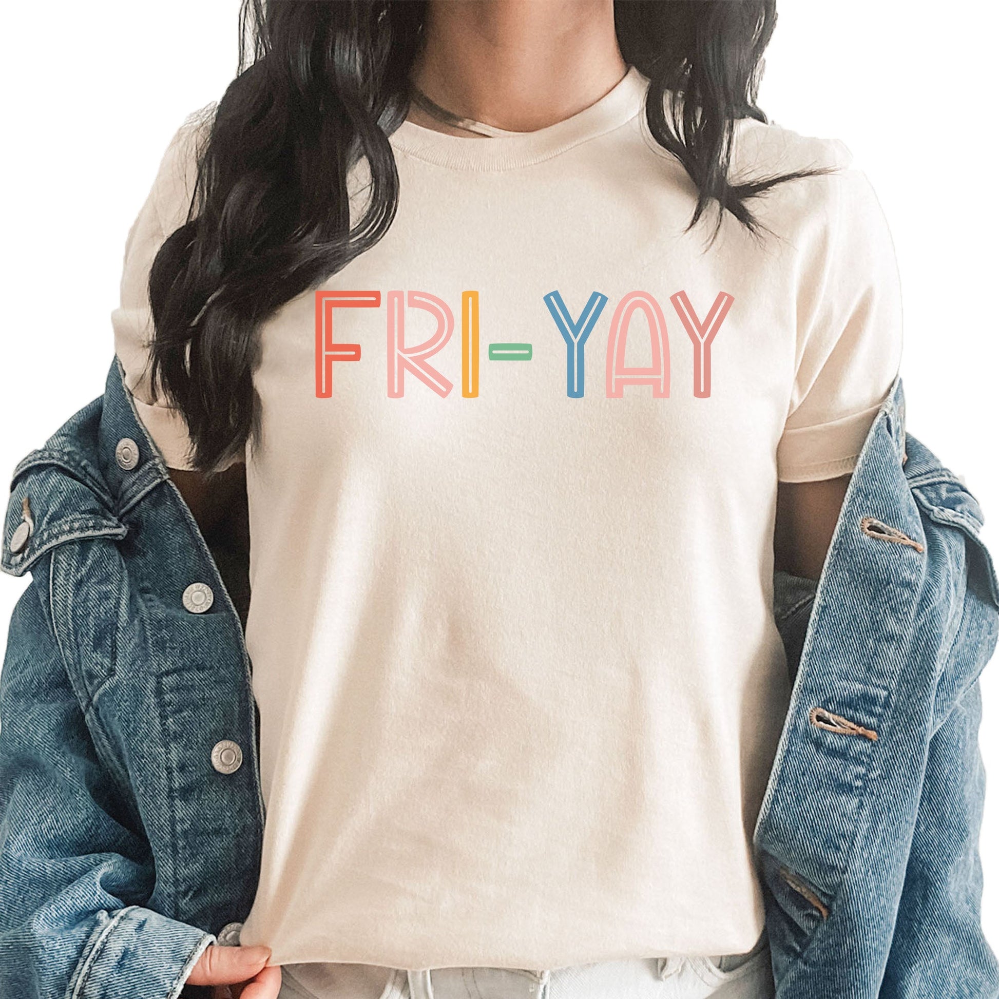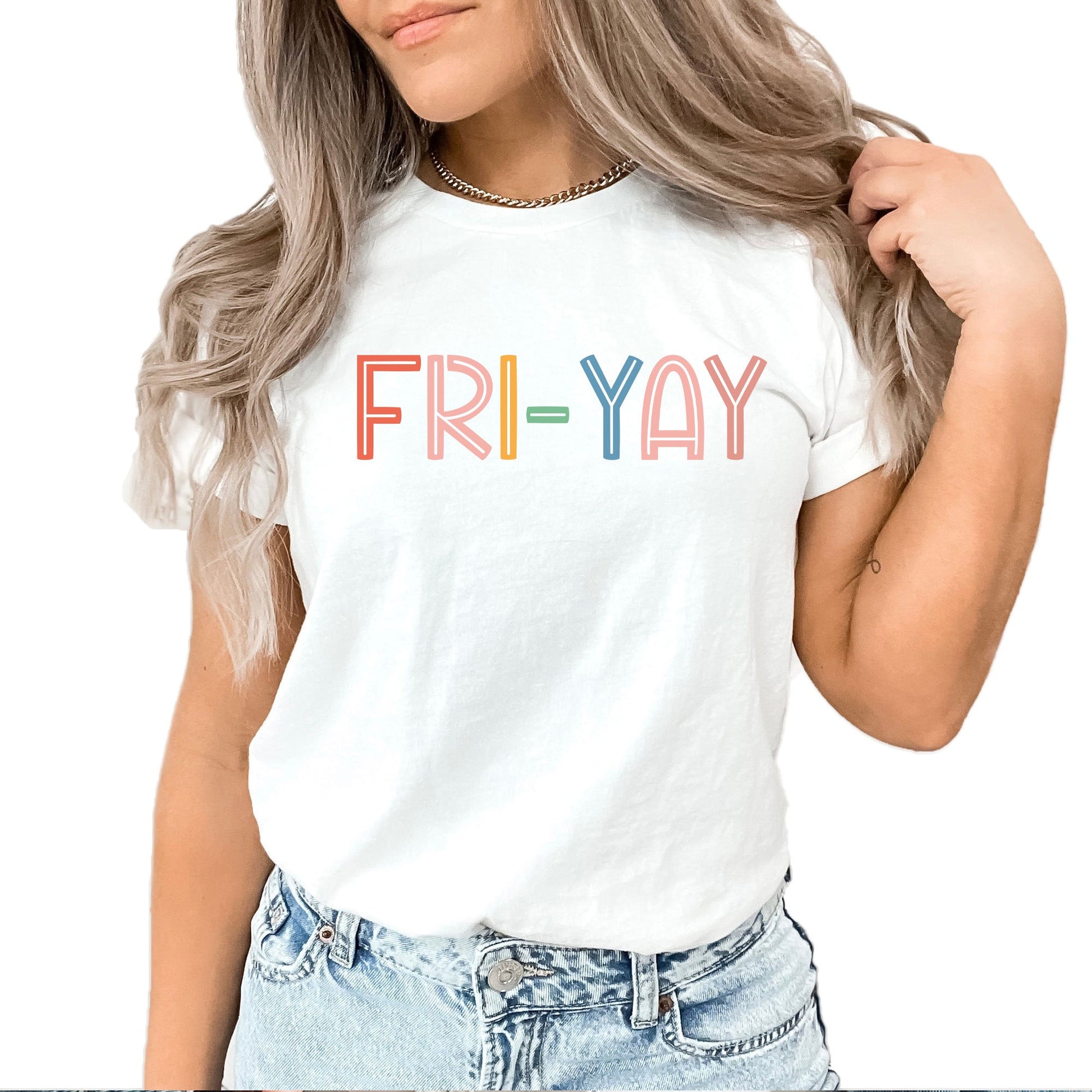 Fri-Yay Teacher Graphic Tees | Friday | Colorful Graphic | Bright Colors | Teacher | Teach | Weekend | School | Fun Friday | Layering Tee