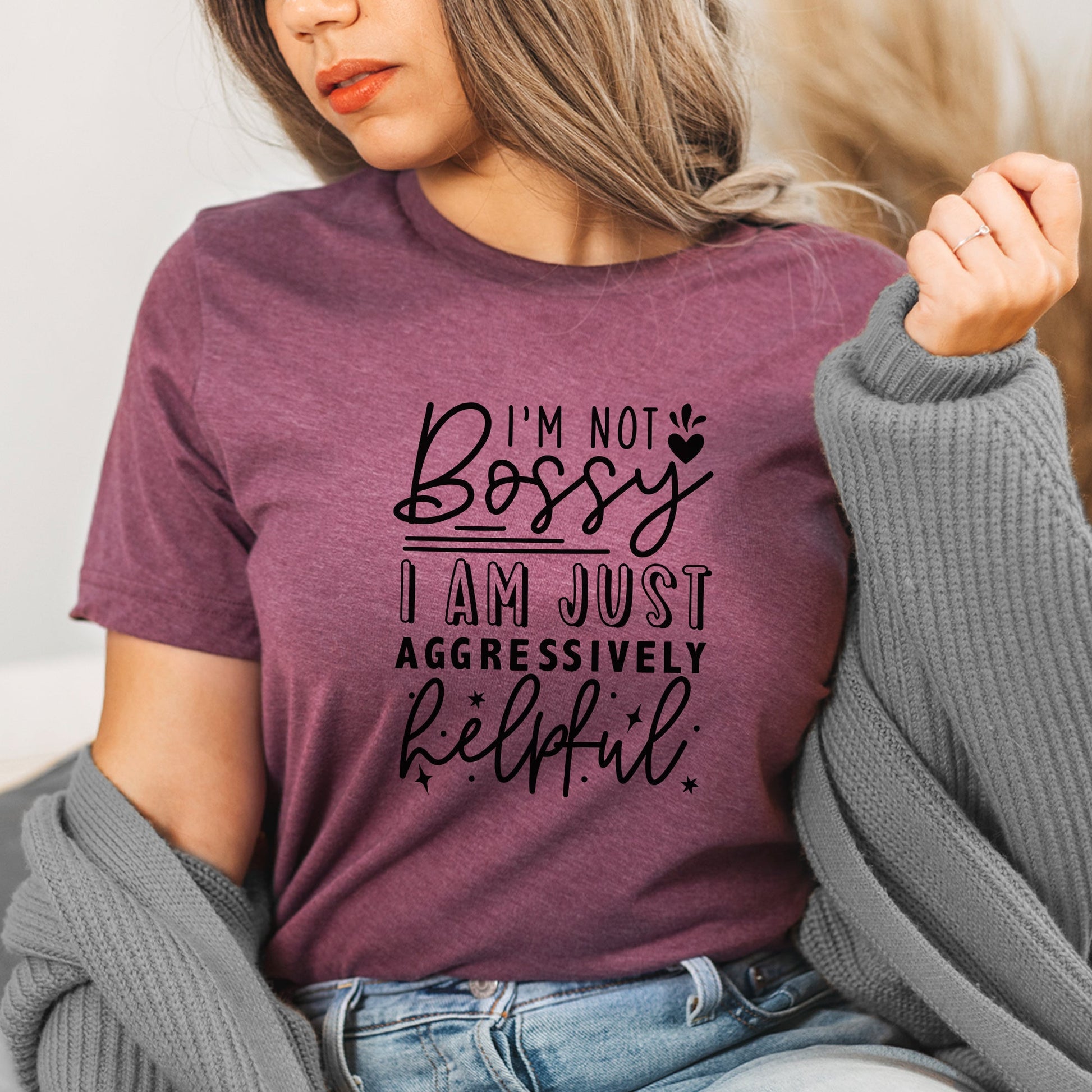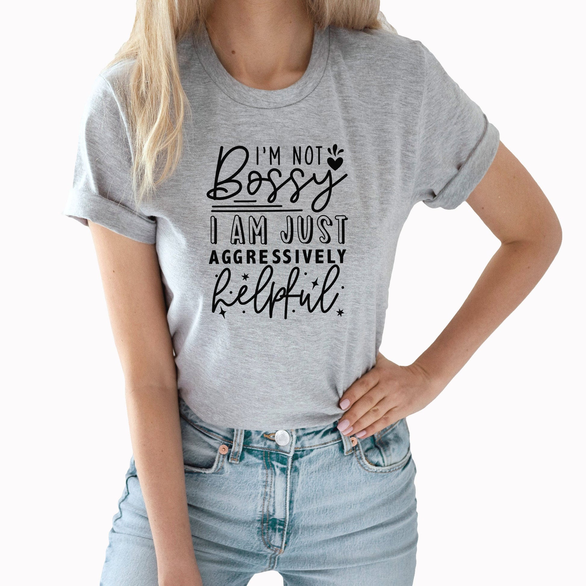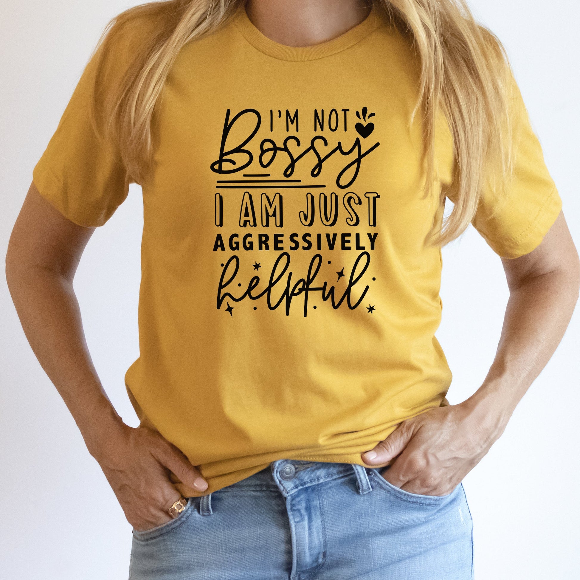I'm Not Bossy I Am Just Aggressively Helpful | Mostly Sarcastic Graphic Tee | Funny Sarcasm | Humor Tees | Bossy Graphic | Layering Tee