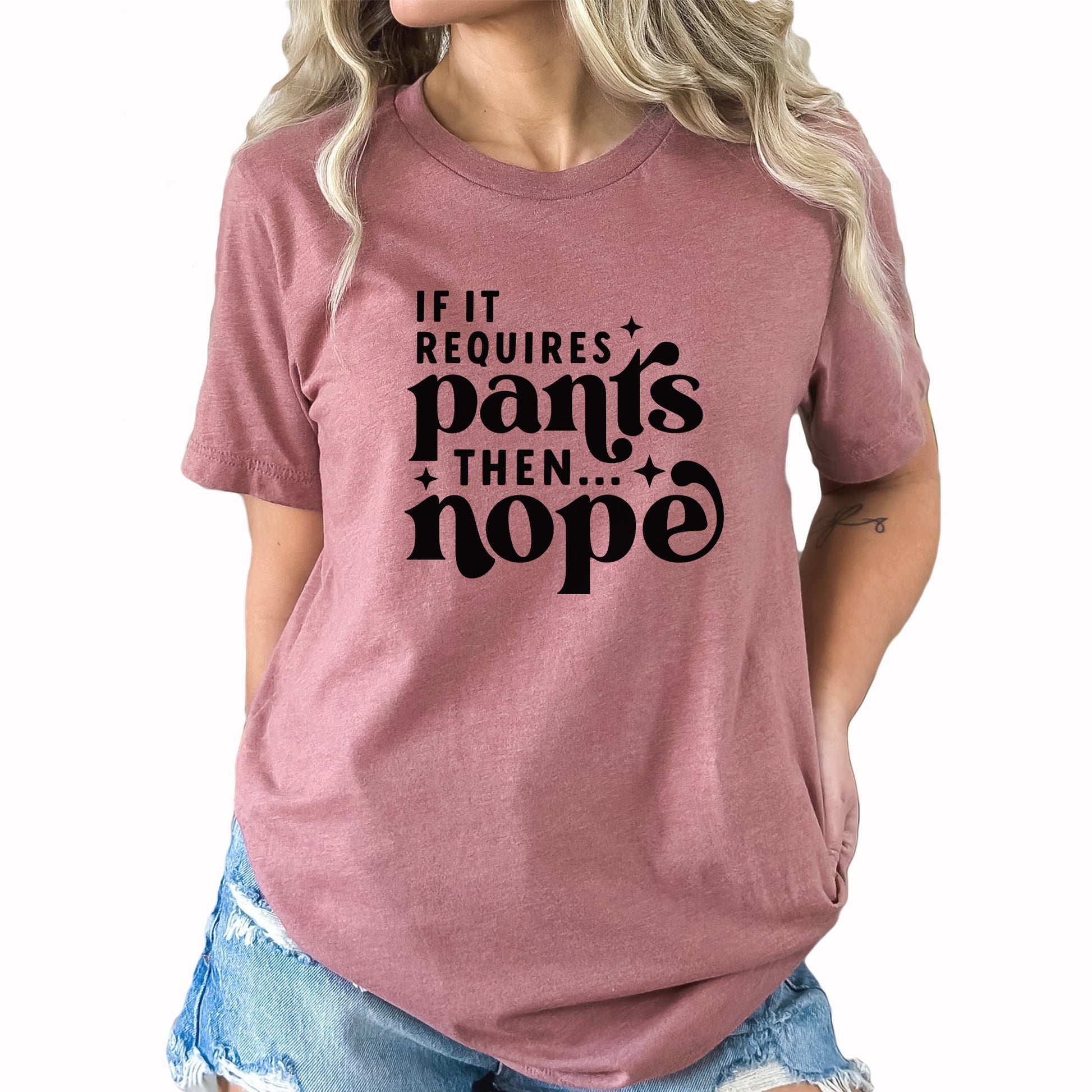 Crafted with comfort and a touch of humor in mind, this tee features premium materials for a soft and breathable feel against your skin. The standout graphic boldly states, "If It Requires Pants, No Thanks," celebrating the joy of choosing comfort over formality when working from home.