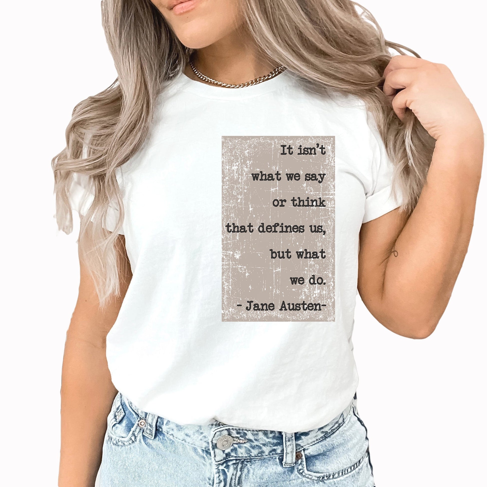 Introducing the "Jane Austen Graphic Tee" – a literary tribute to the timeless words and wisdom of the renowned author, Jane Austen. This tee isn't just an article of clothing; it's a wearable homage to one of the most influential voices in literature, capturing the essence of her insightful prose and enduring impact on the literary world.
