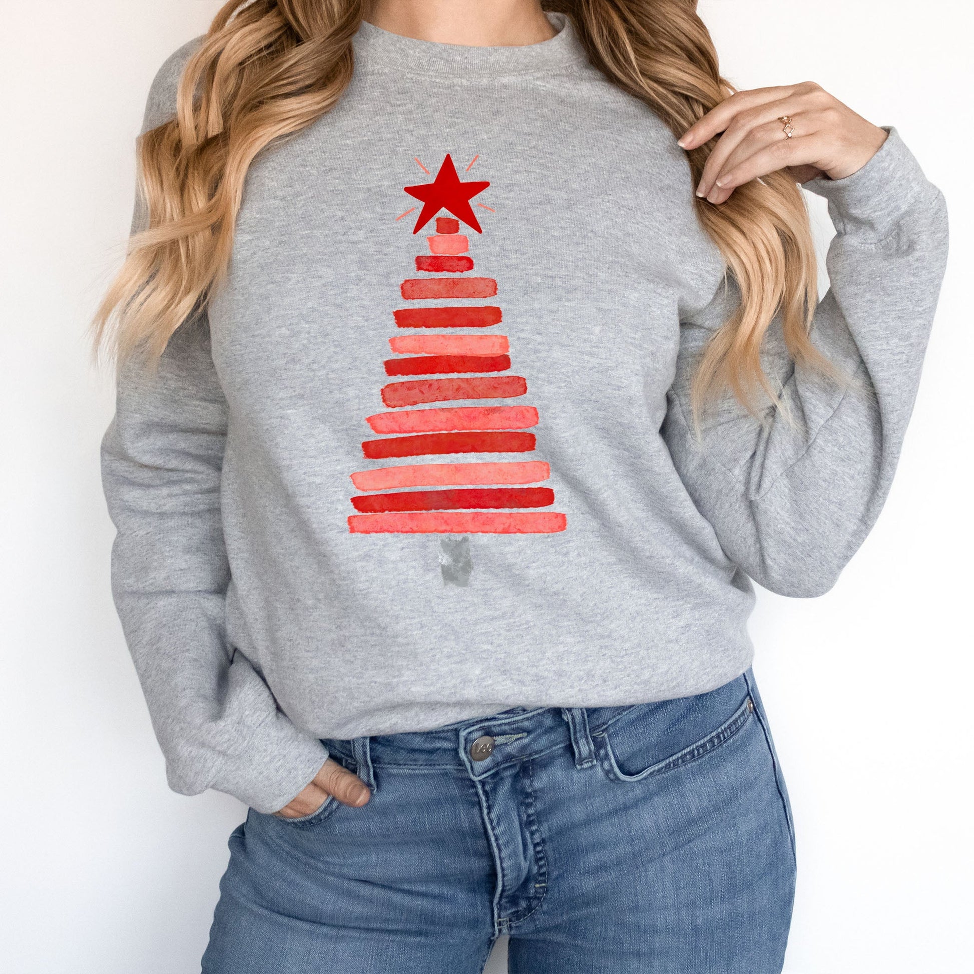 Jolly Christmas Tree Graphic Sweatshirt | Comfy Fleece Lined | Red Tree | Watercolor Print | Dark Red | Abstract Art | Christmas Tree | Holiday Season