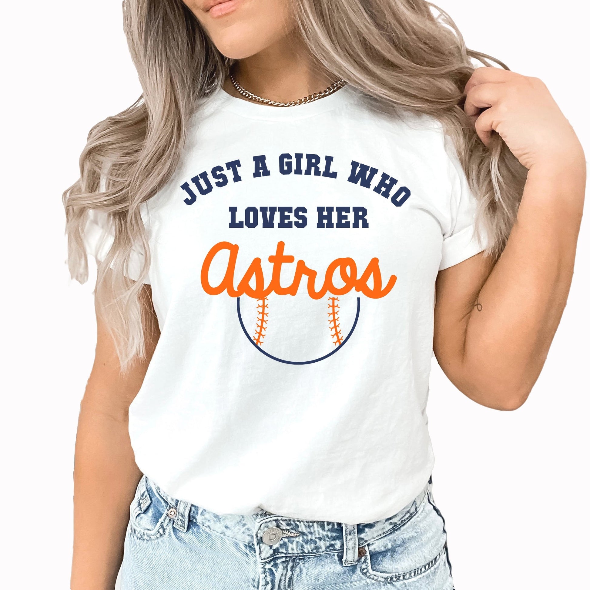 Just a Girl Who Loves Her Astros Graphic Tee | Major League | Popular Baseball Teams | Home Base | Sports | Paly Ball | Layering Tee