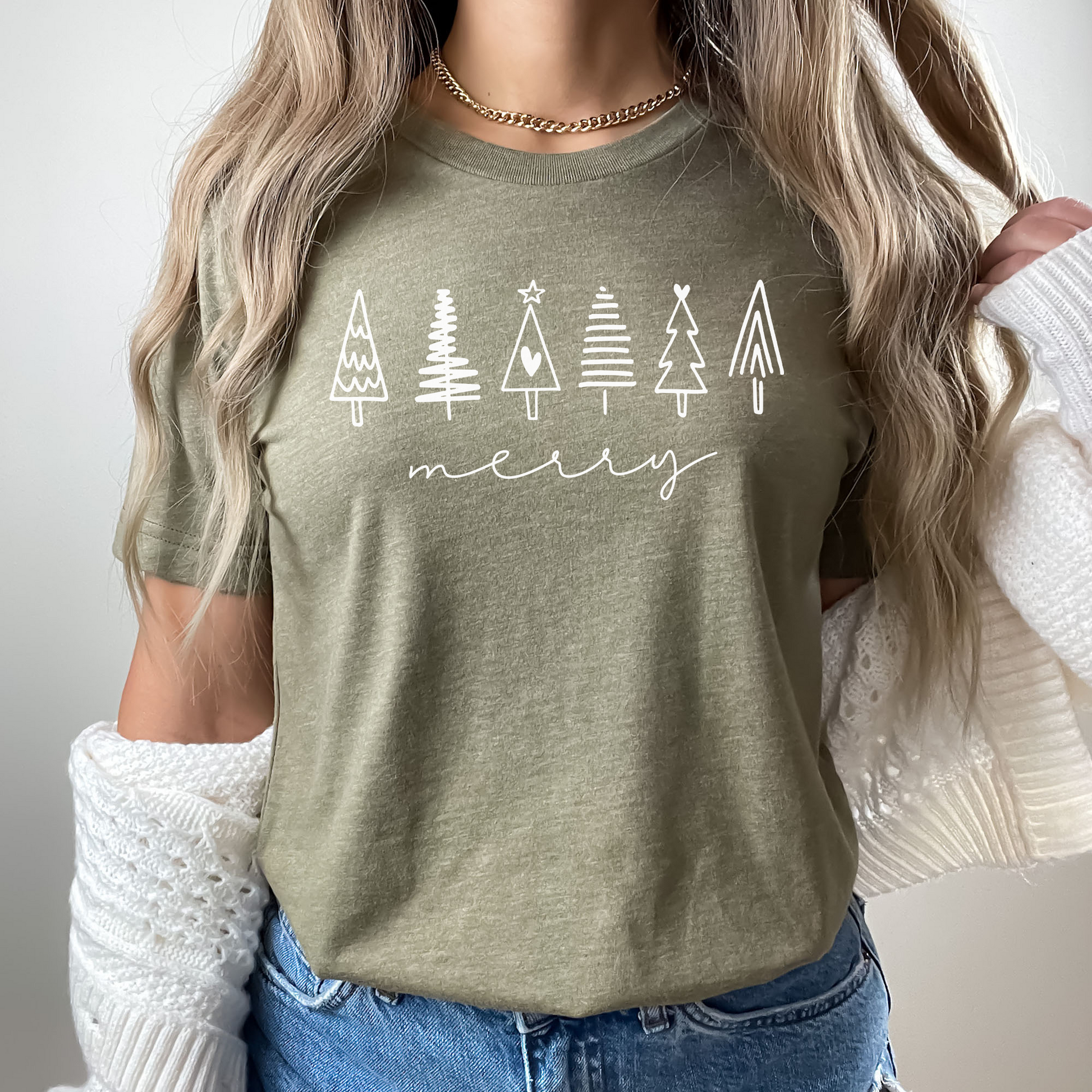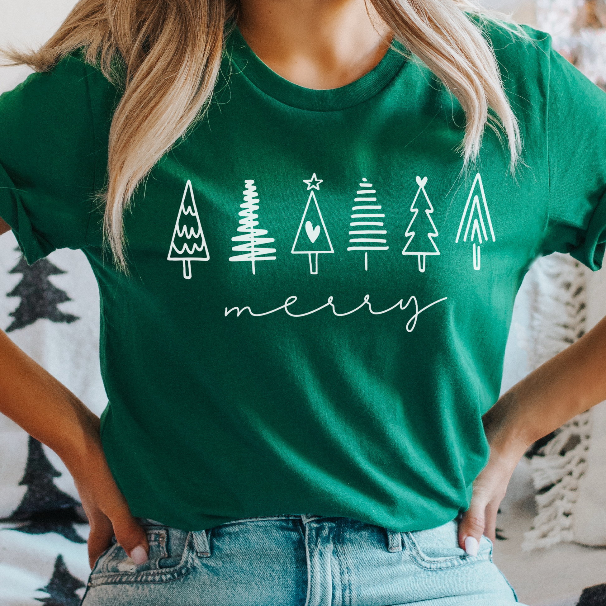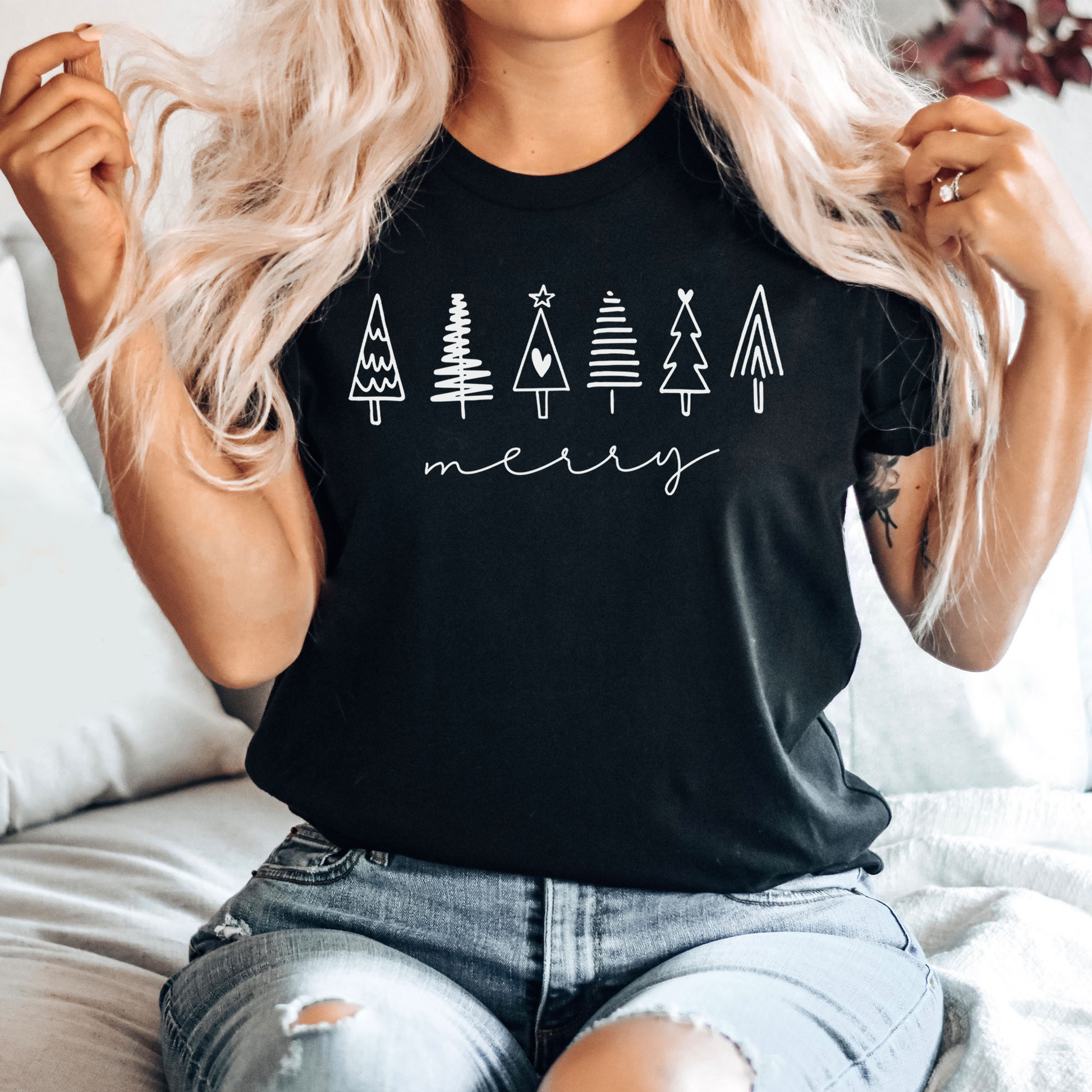 Merry Christmas Tree Doodles Graphic Tee | Merry | Christmas | Holiday Season | 6 Trees | Forest | Christmas Tree