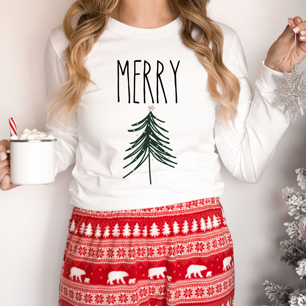 Merry Christmas Tree Graphic Long Sleeve Tees | Christmas | Jolly | Holiday | Tree | Long Sleeve | Super soft | Layering Tee