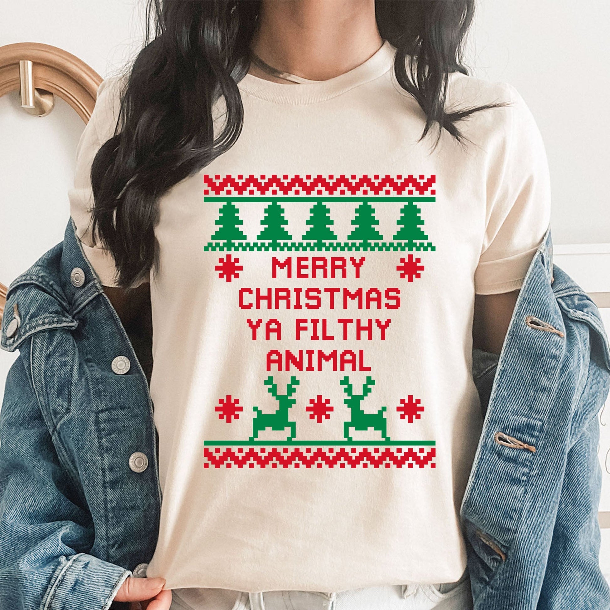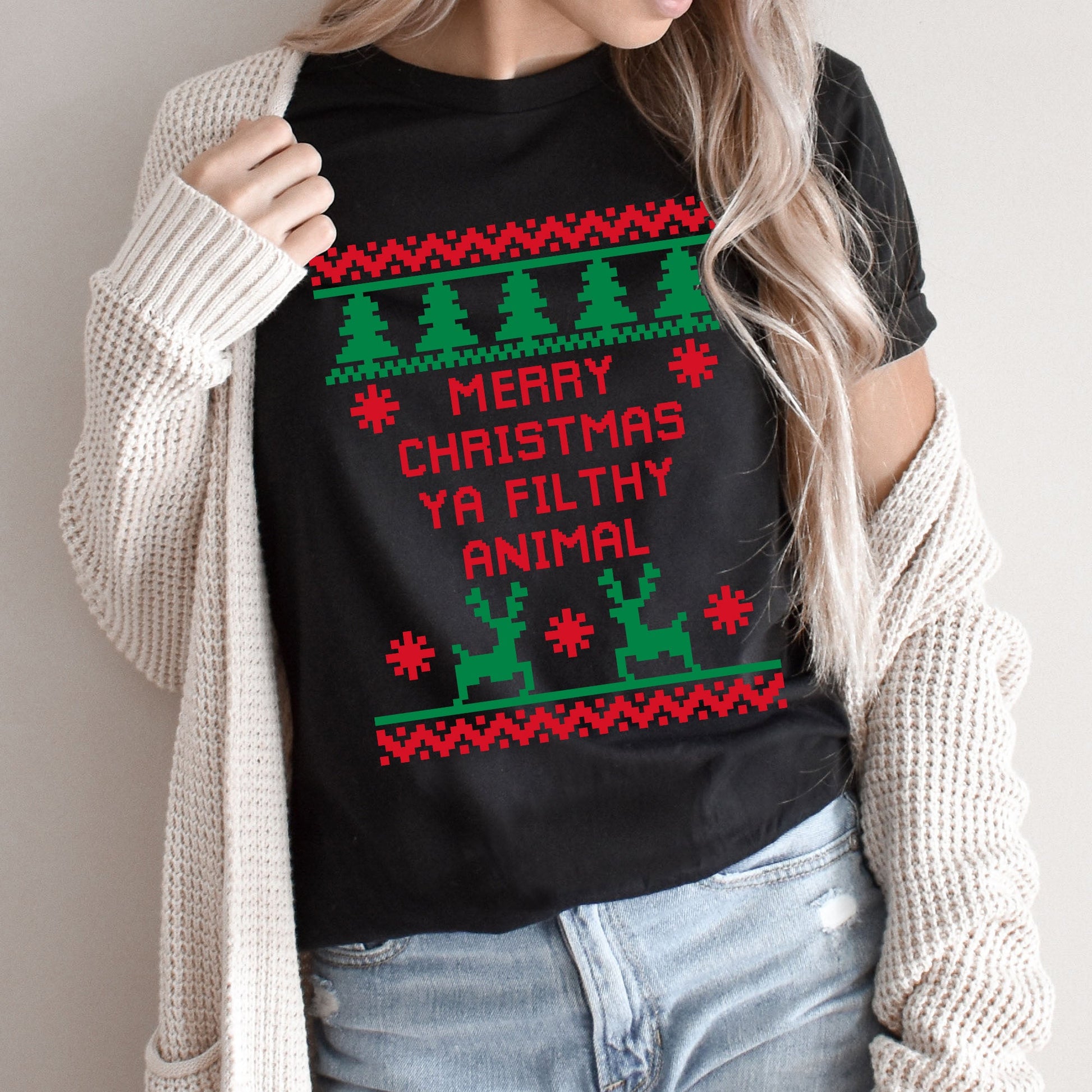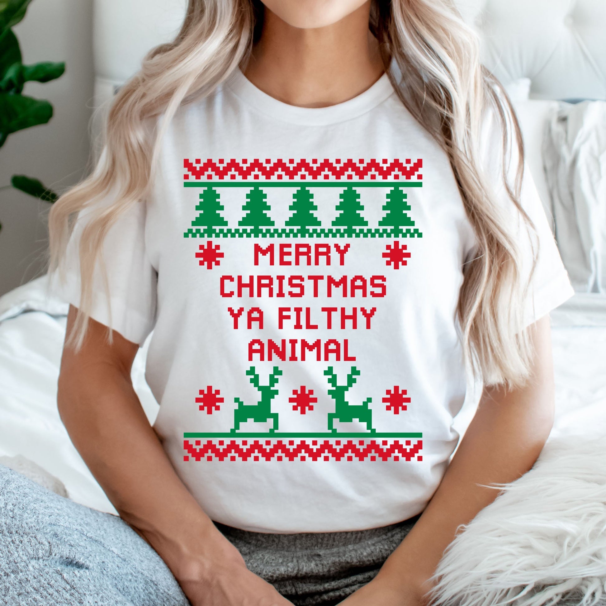 Merry Christmas Ya Filthy Animal Graphic Tee | Ugly Christmas Sweater | Holiday Movie | Christmas Show | Prank | Family Vacation
