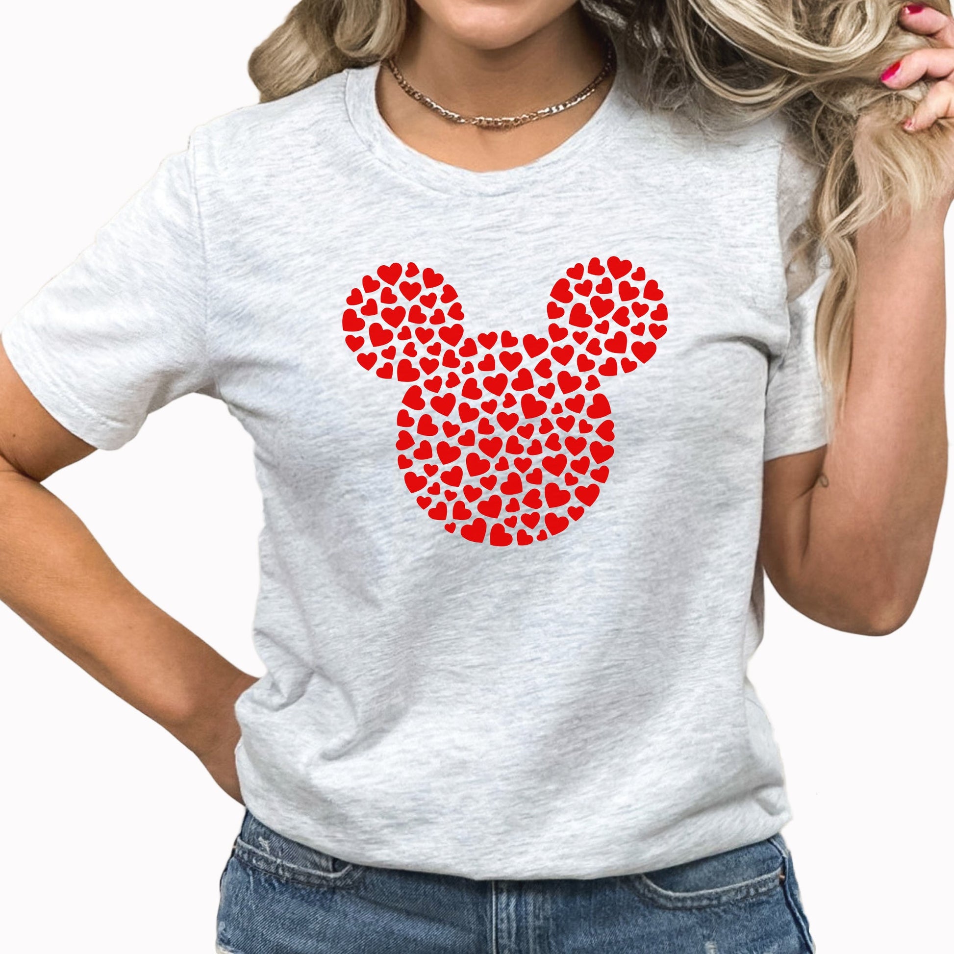 Celebrate the magic of love and the timeless charm of Disney with our Mickey Hearts Graphic Tee. This delightful shirt seamlessly combines the iconic appeal of Mickey Mouse with the sweet sentiment of Valentine's Day, making it a must-have for theme park enthusiasts and Disney lovers alike.