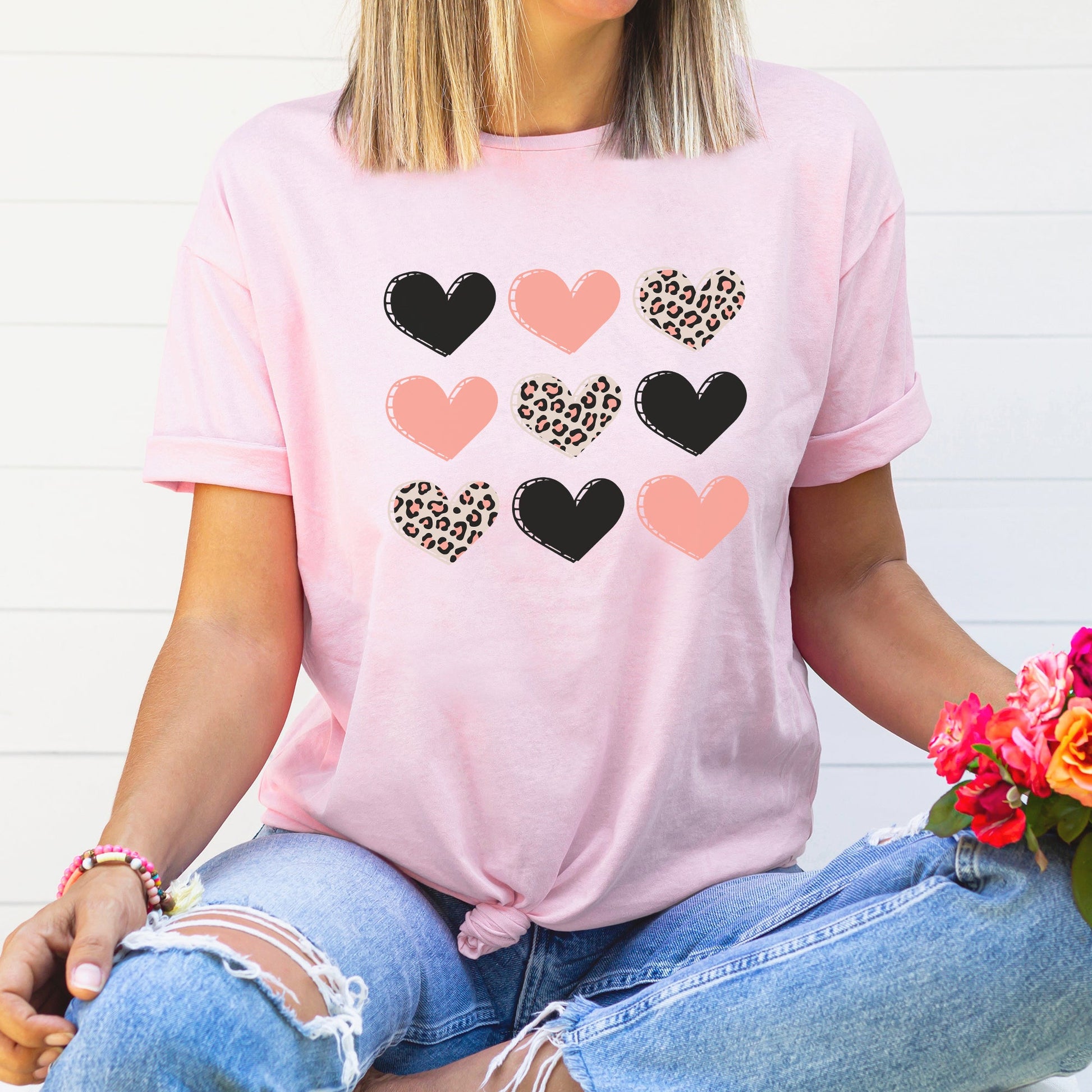 Pattern Heart Grid Graphic Tee | Heart | Love | Valentine | Valentine's Day | Leopard Print | Heart Grid