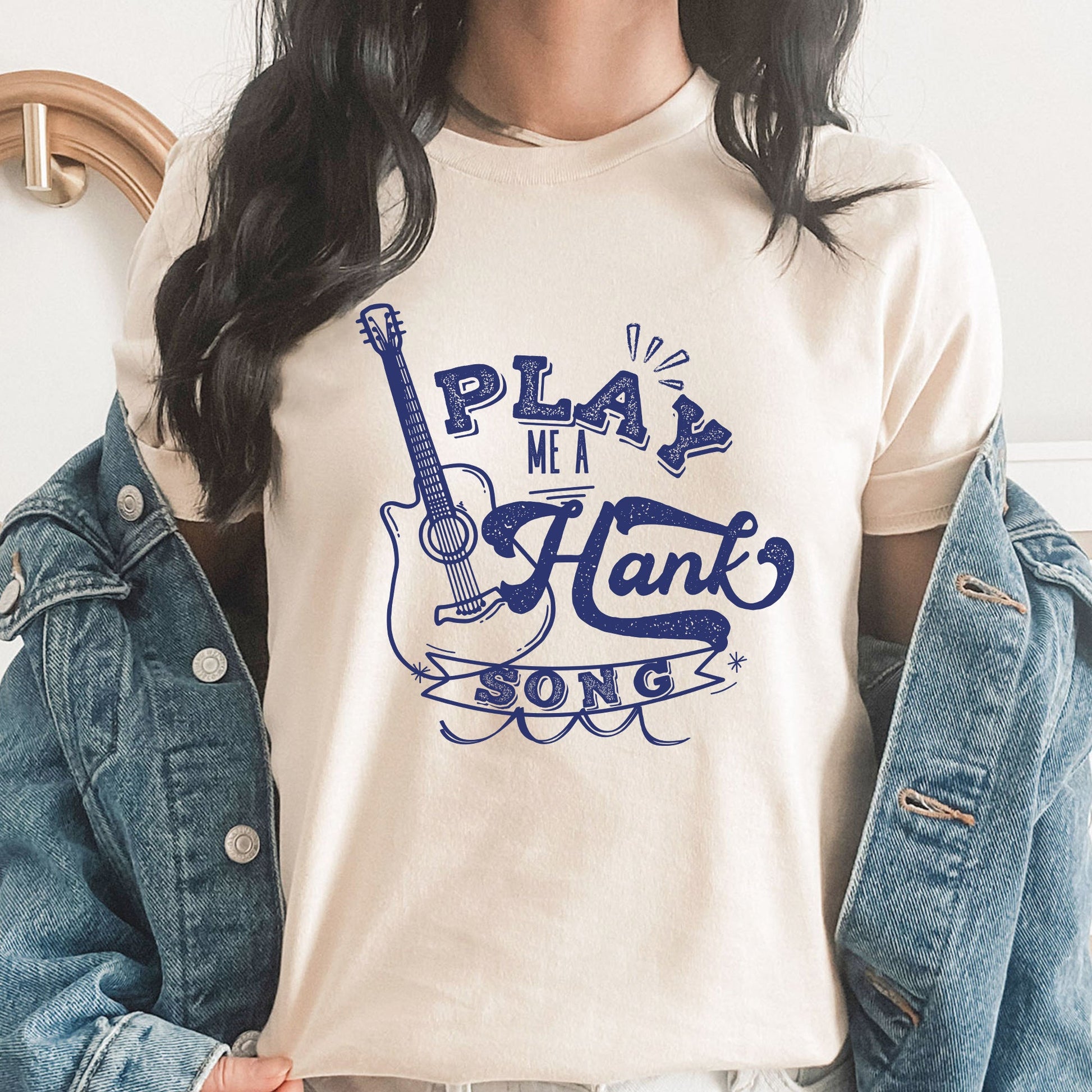 Play Me A Hank Song Graphic Tee | Country Music | Western | Guitar | Lyrics | Country | Cowboy