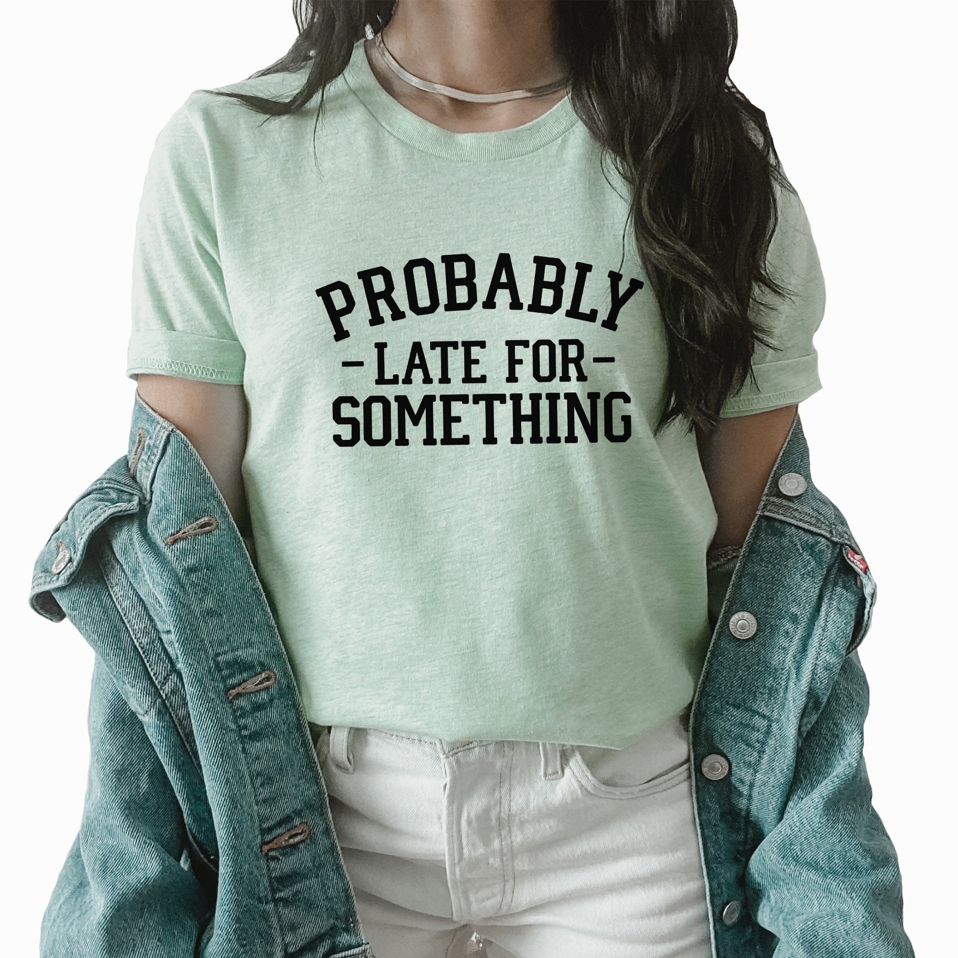 Whether you're running on your own time or just appreciate the leisurely pace of things, this tee invites you to celebrate the art of being fashionably late. So, wear it proudly, let your style speak volumes, and revel in the joy of embracing your own timeline with the "Probably Late" Graphic Tee – where humor meets the laid-back attitude!