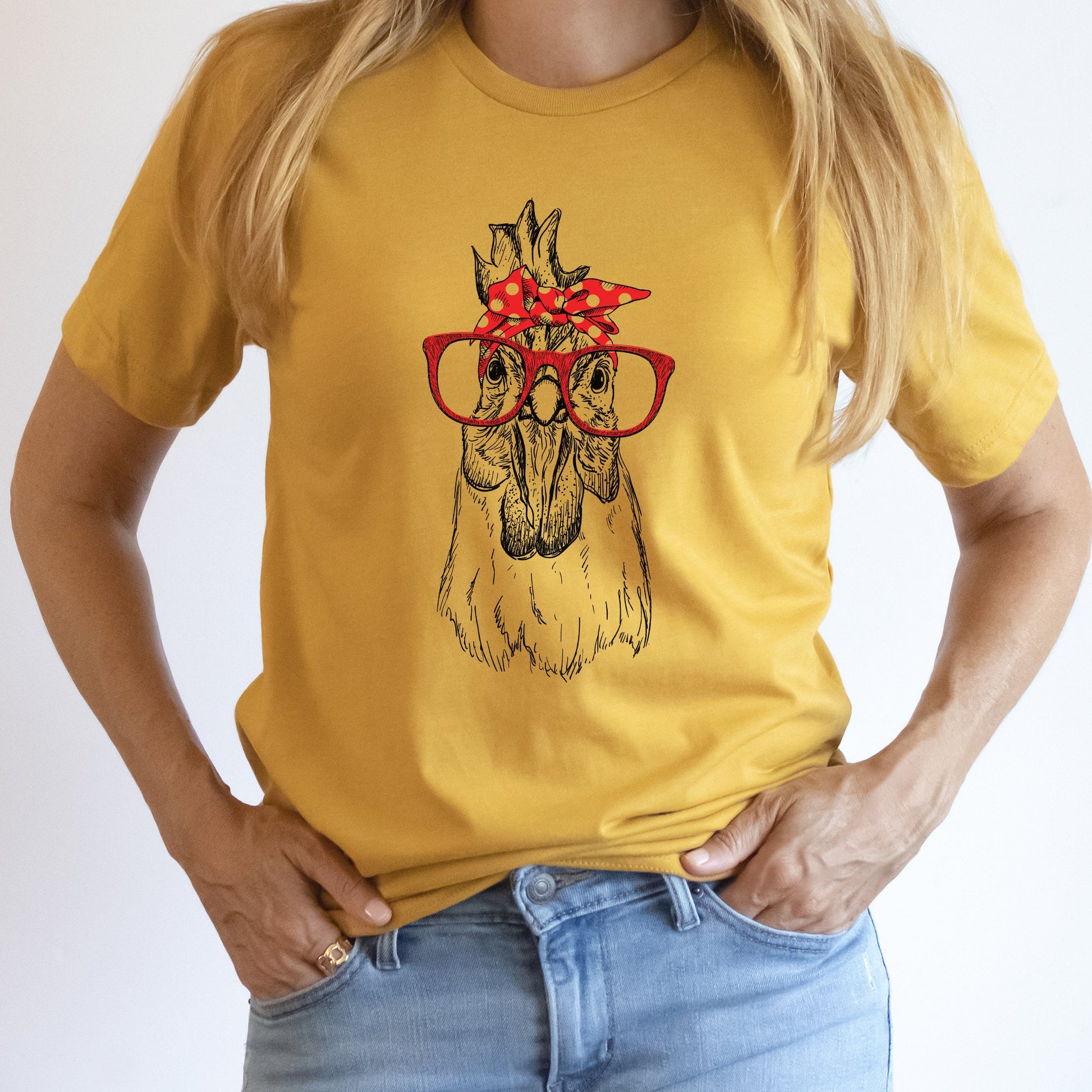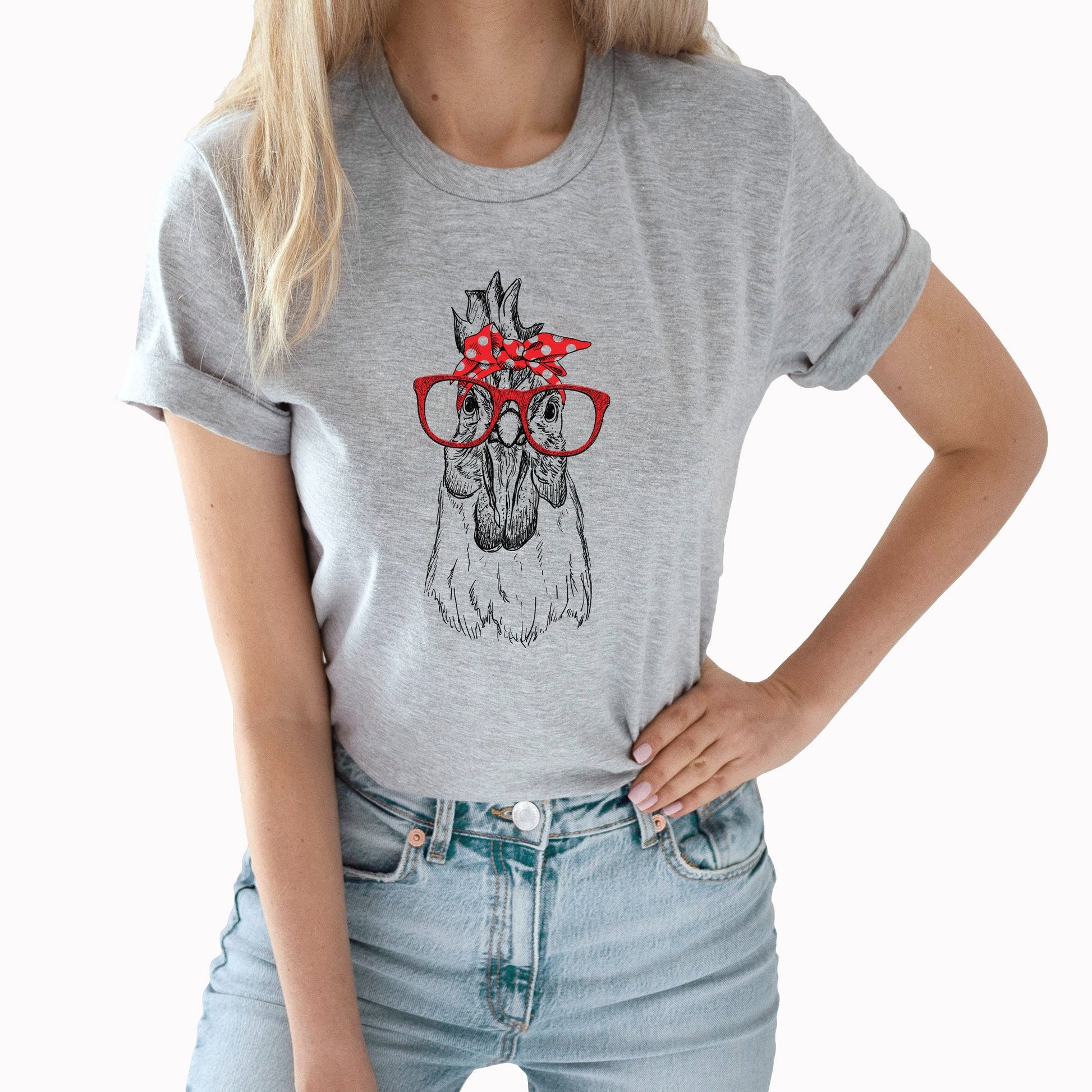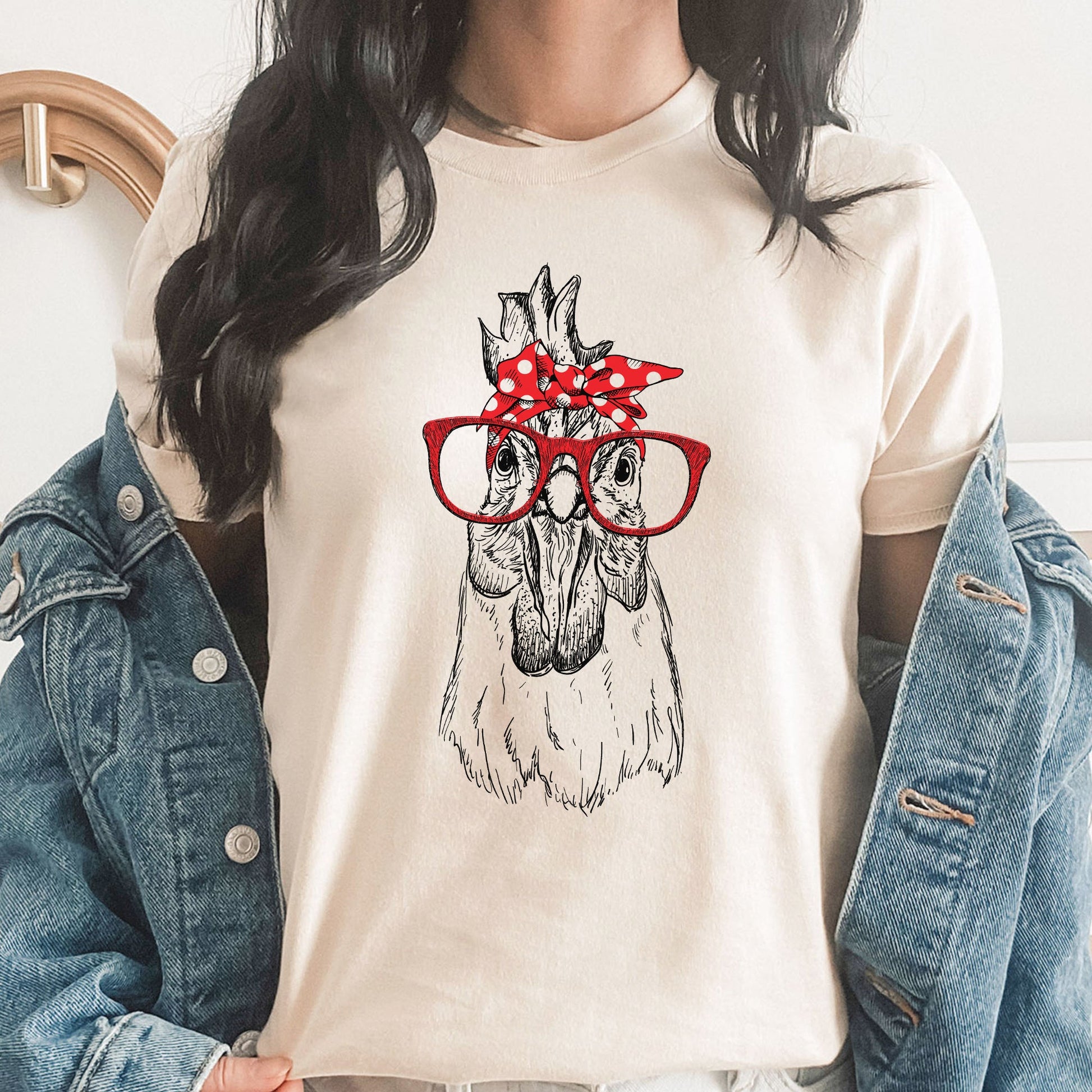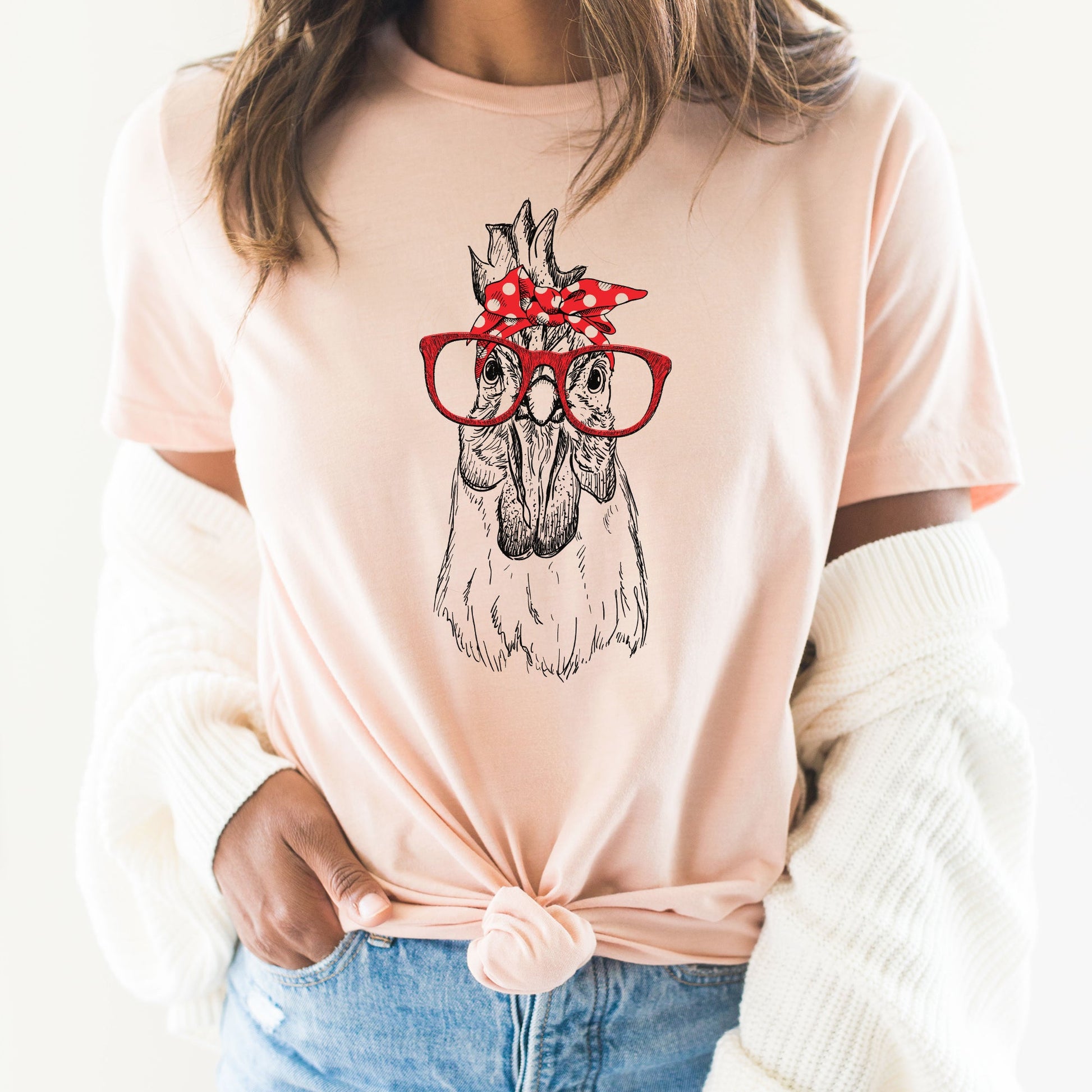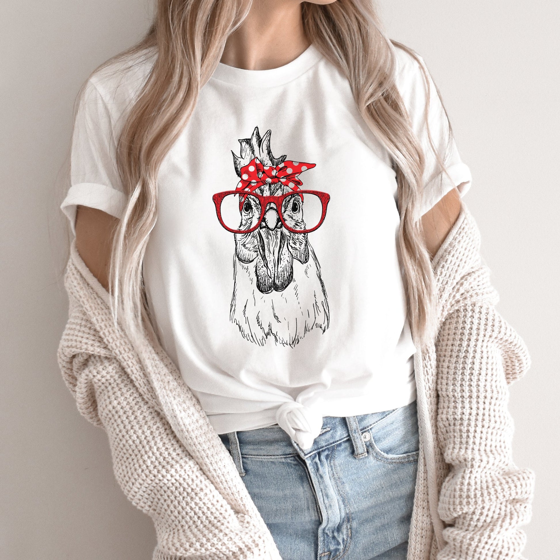 Red Glasses Chicken Graphic Tee | Chicken Farmer | Farm Life | Funny Chicken | Red Glasses | Chicken Mama | Crazy Chicken Lady