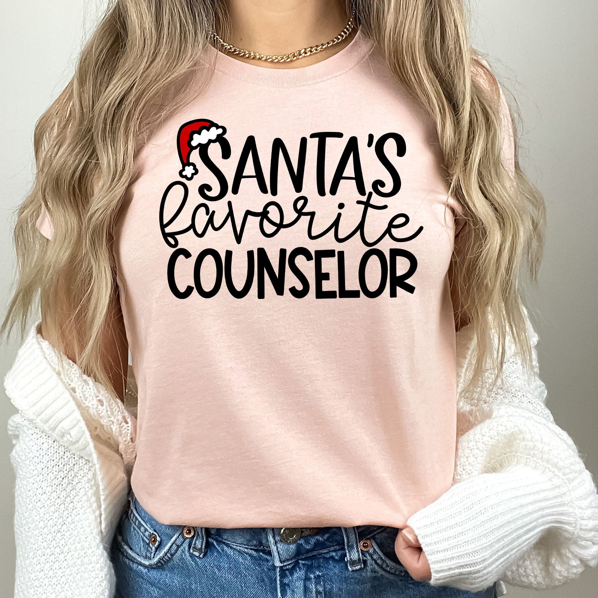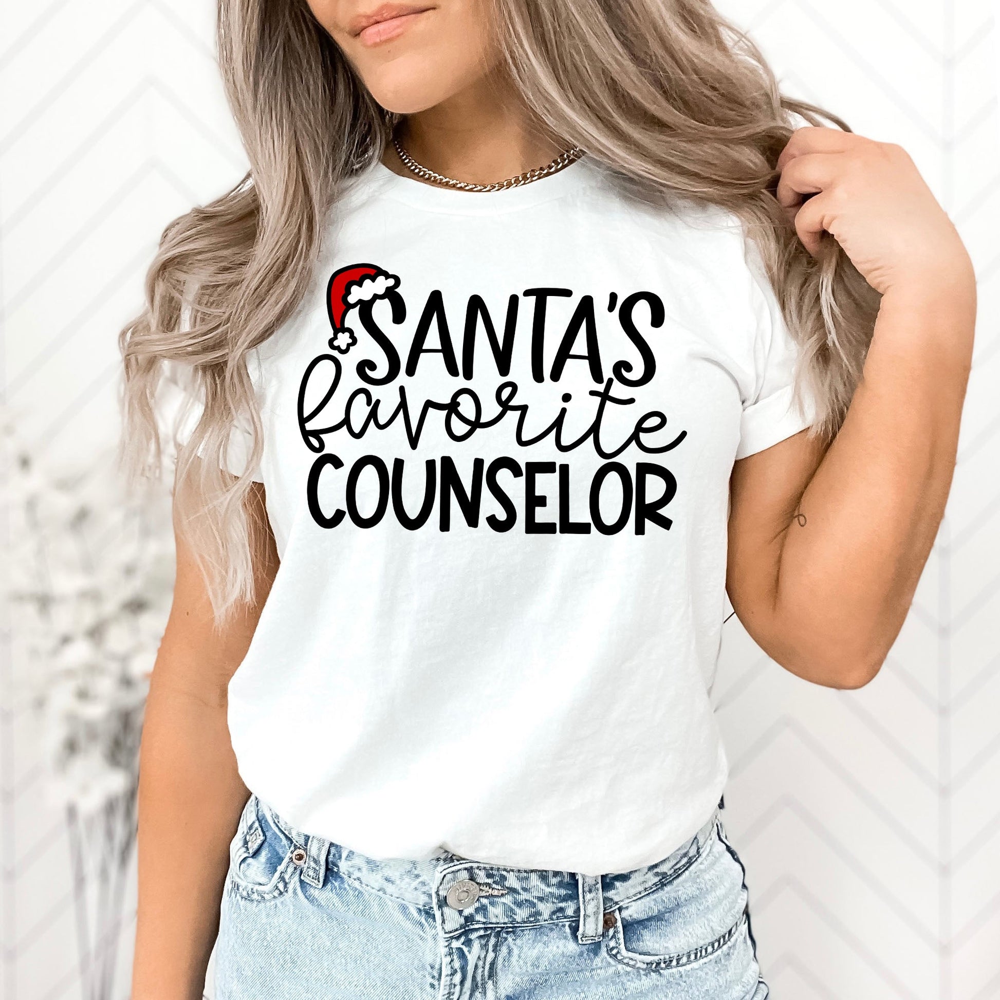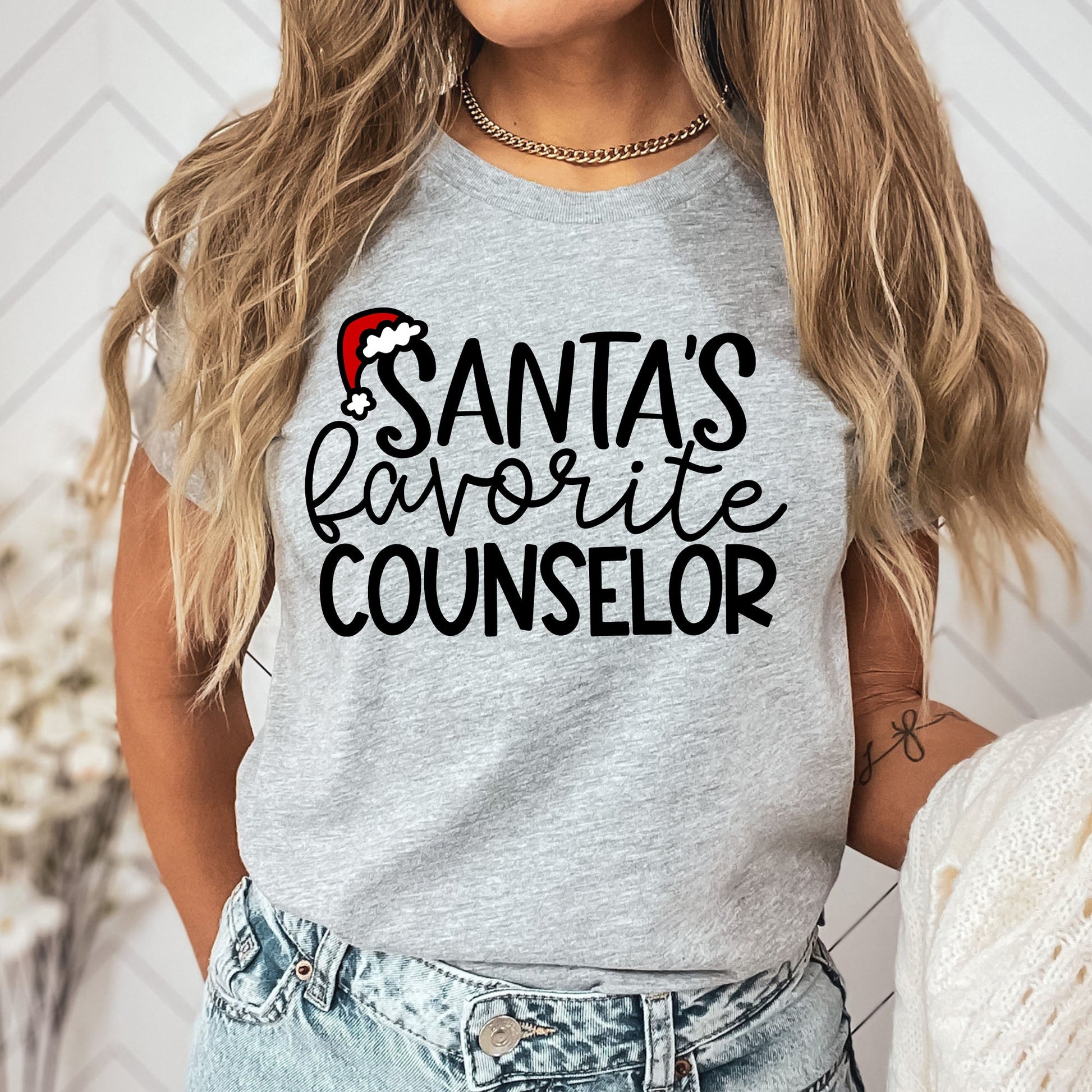 Santa's Favorite Counselor Graphic Tees | School Faculty | Santa Hat | Nice List | School | Christmas Break | Layering Tee