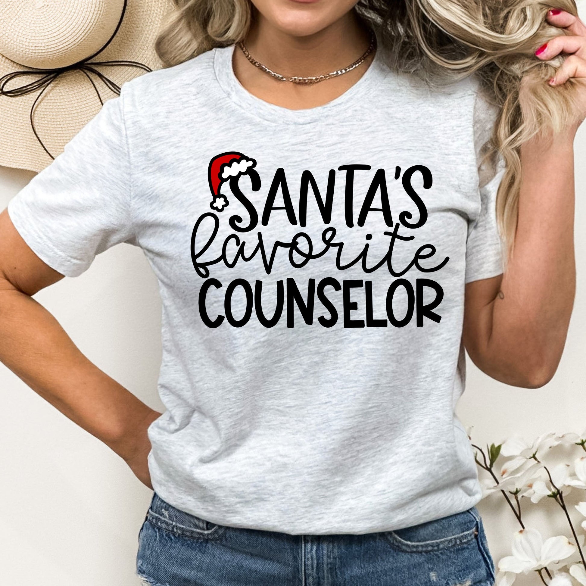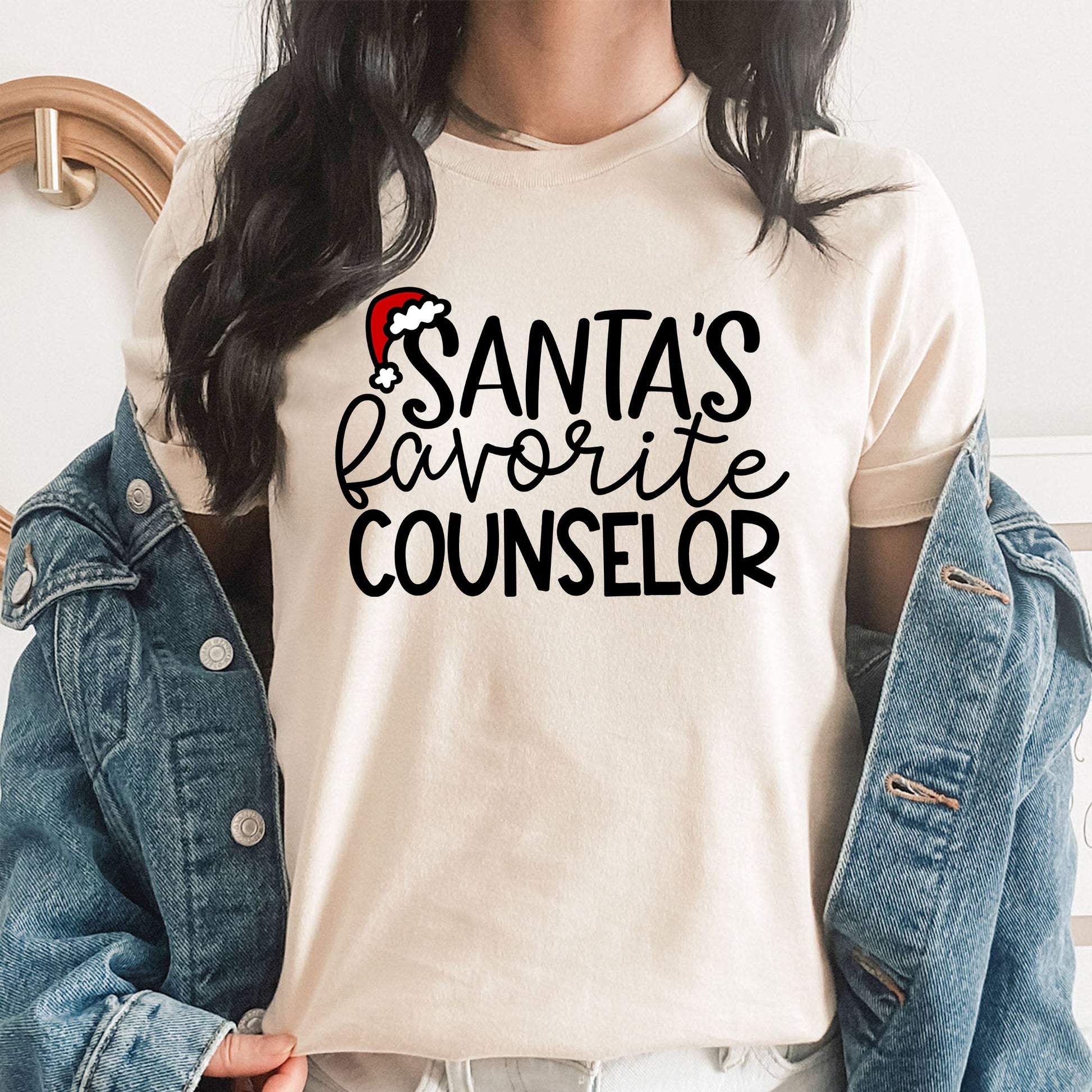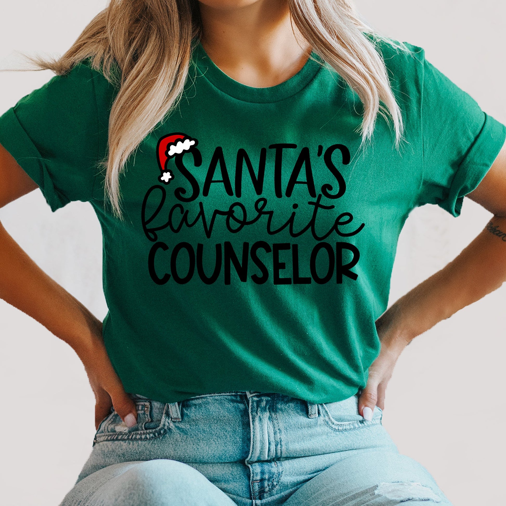 Santa's Favorite Counselor Graphic Tees | School Faculty | Santa Hat | Nice List | School | Christmas Break | Layering Tee