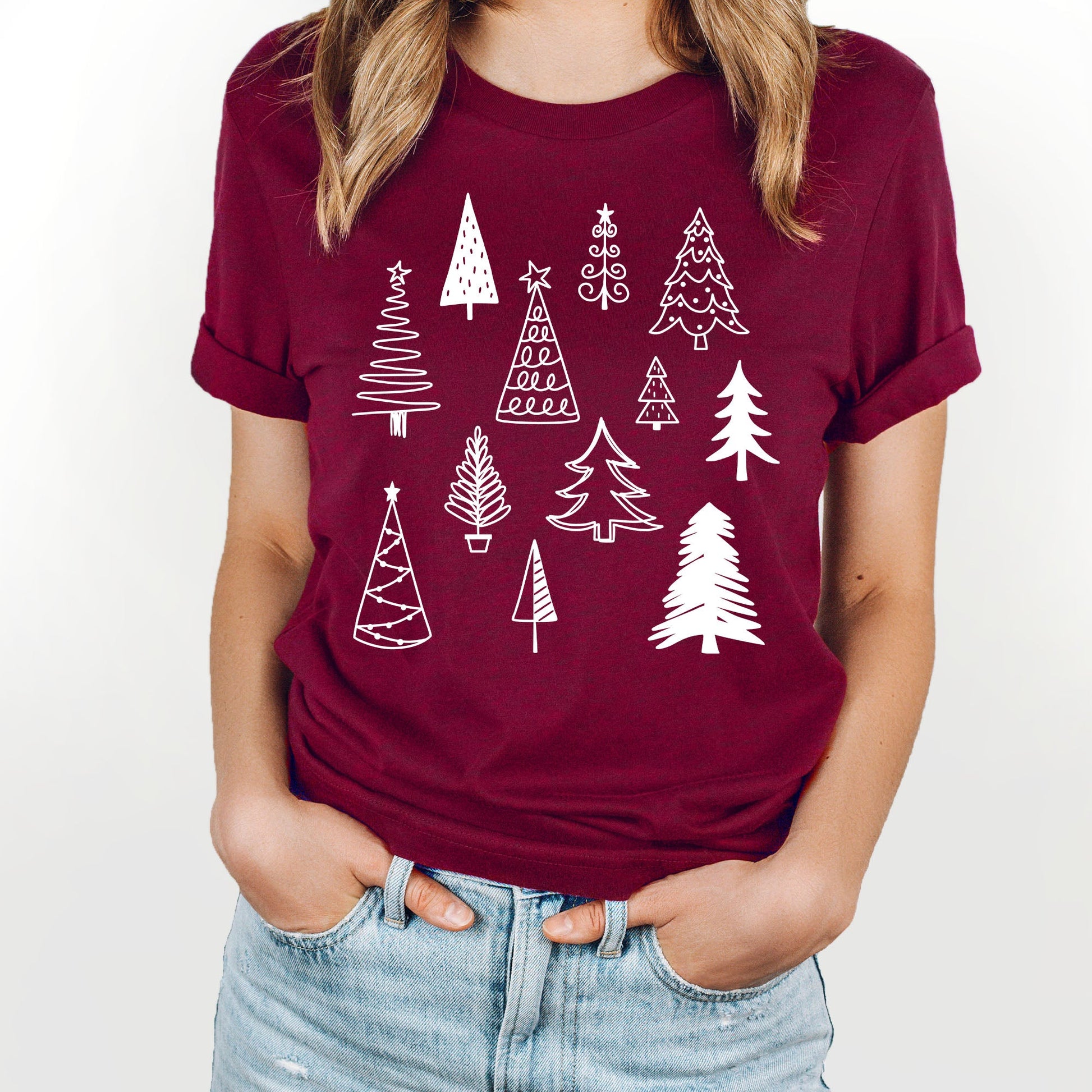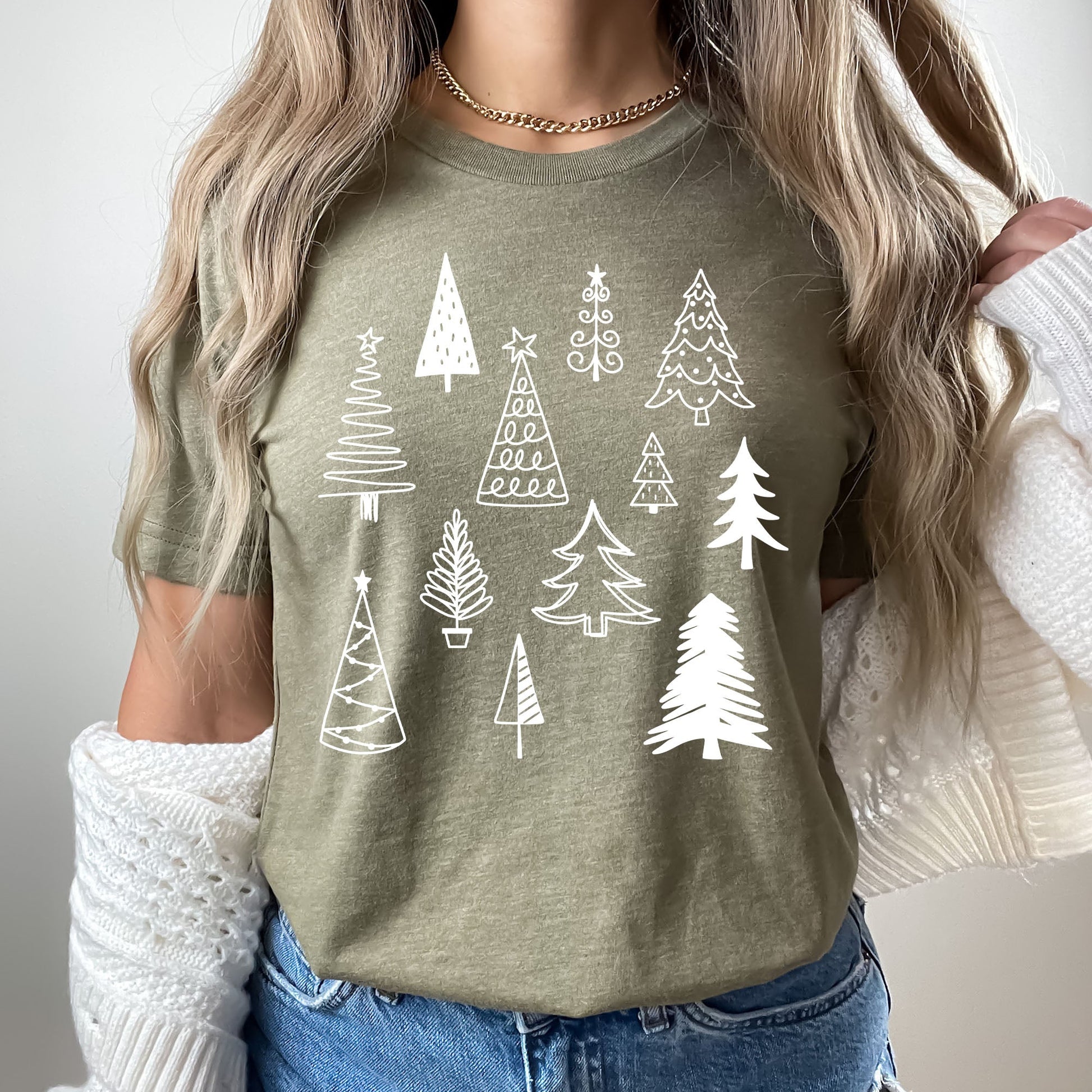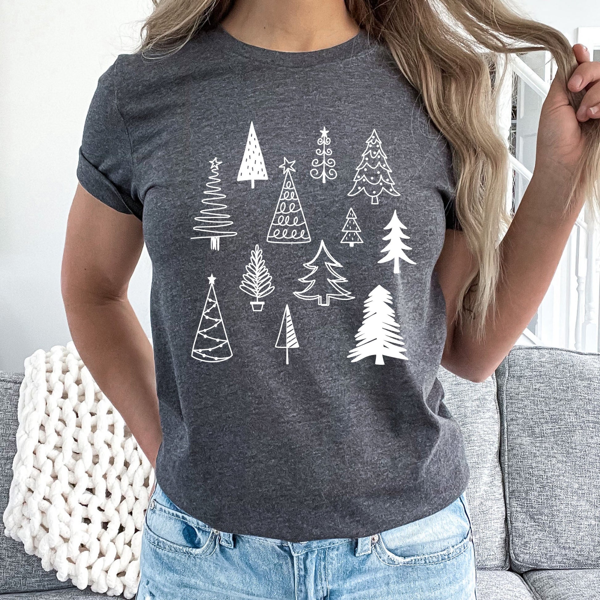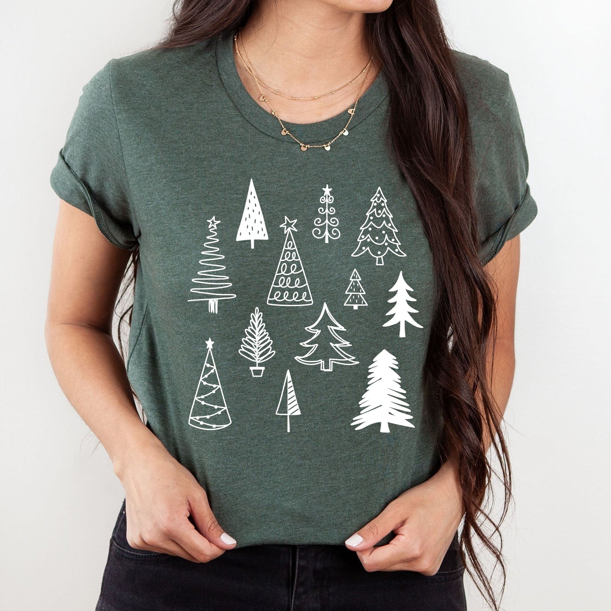 Simplistic Christmas Trees Grid Graphic Tee | Doodle Trees | Unique | Layering Tee | Holiday | Pine Trees | Festive