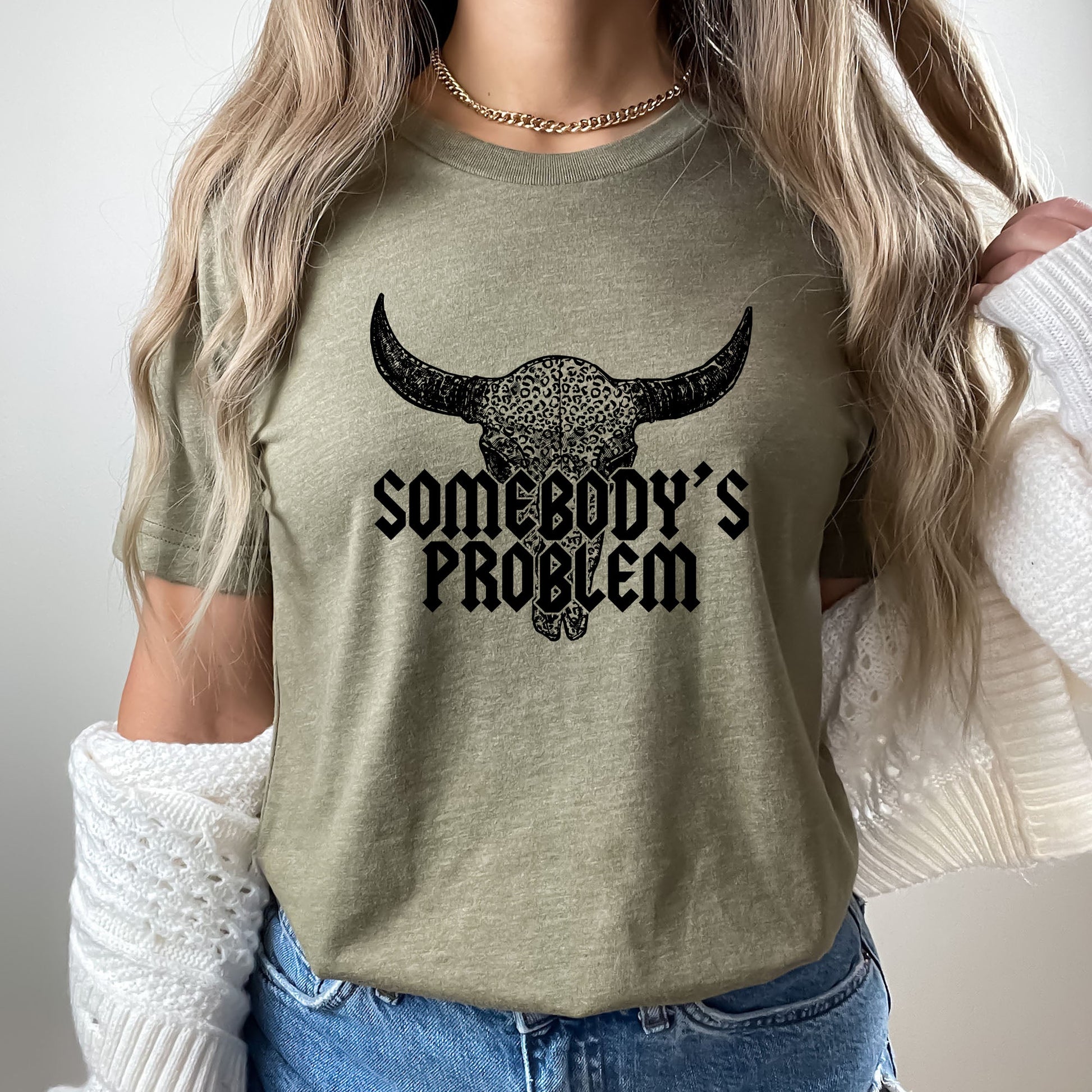Somebody's Problem Graphic Tee | Country | Western | Bull | Skull | Leopard Print | Cowboy | Song Lyrics | Country Music | Wallen | Layering Tee