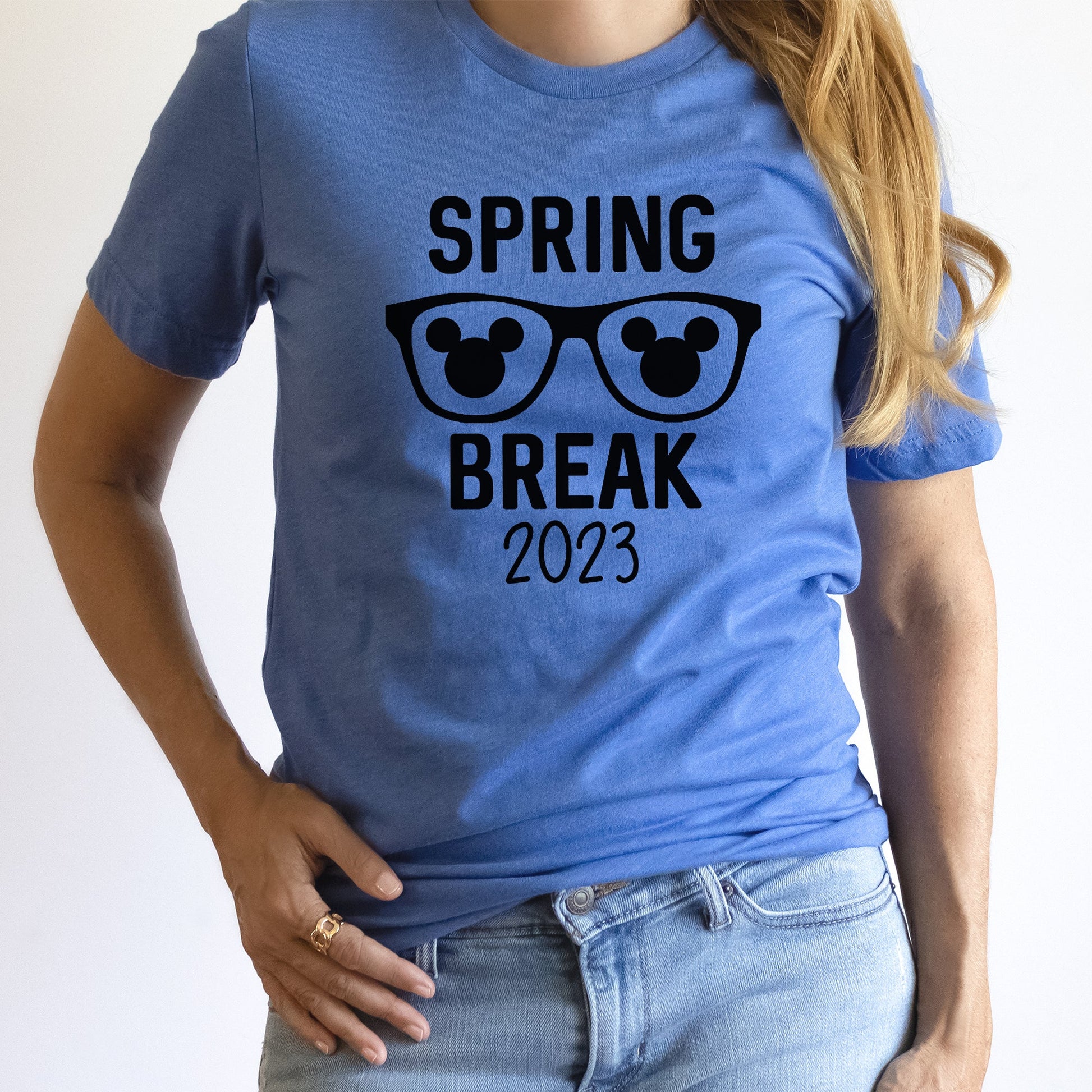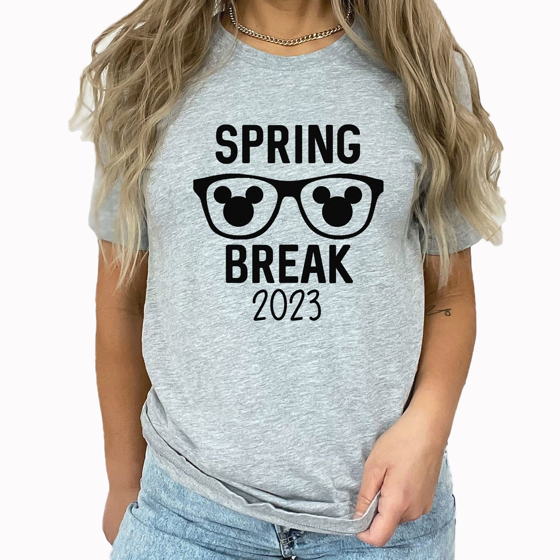 The lively graphic on this tee features a fun pair of sunglasses, perfectly encapsulating the sunny vibes of Spring Break. Whether you're heading to a theme park, planning a Disney getaway, or simply soaking in the vacation atmosphere, this tee is the perfect choice to showcase your enthusiasm.
