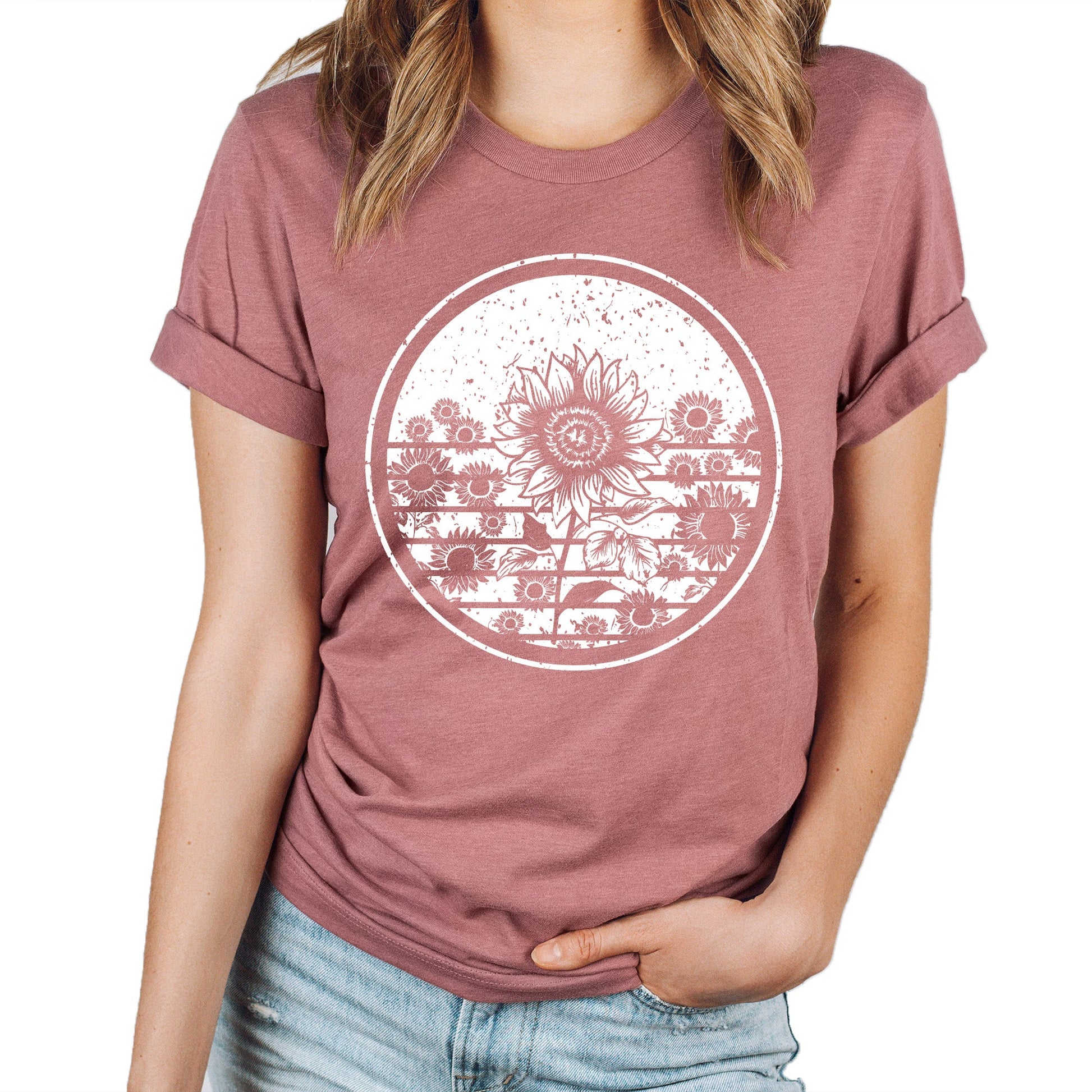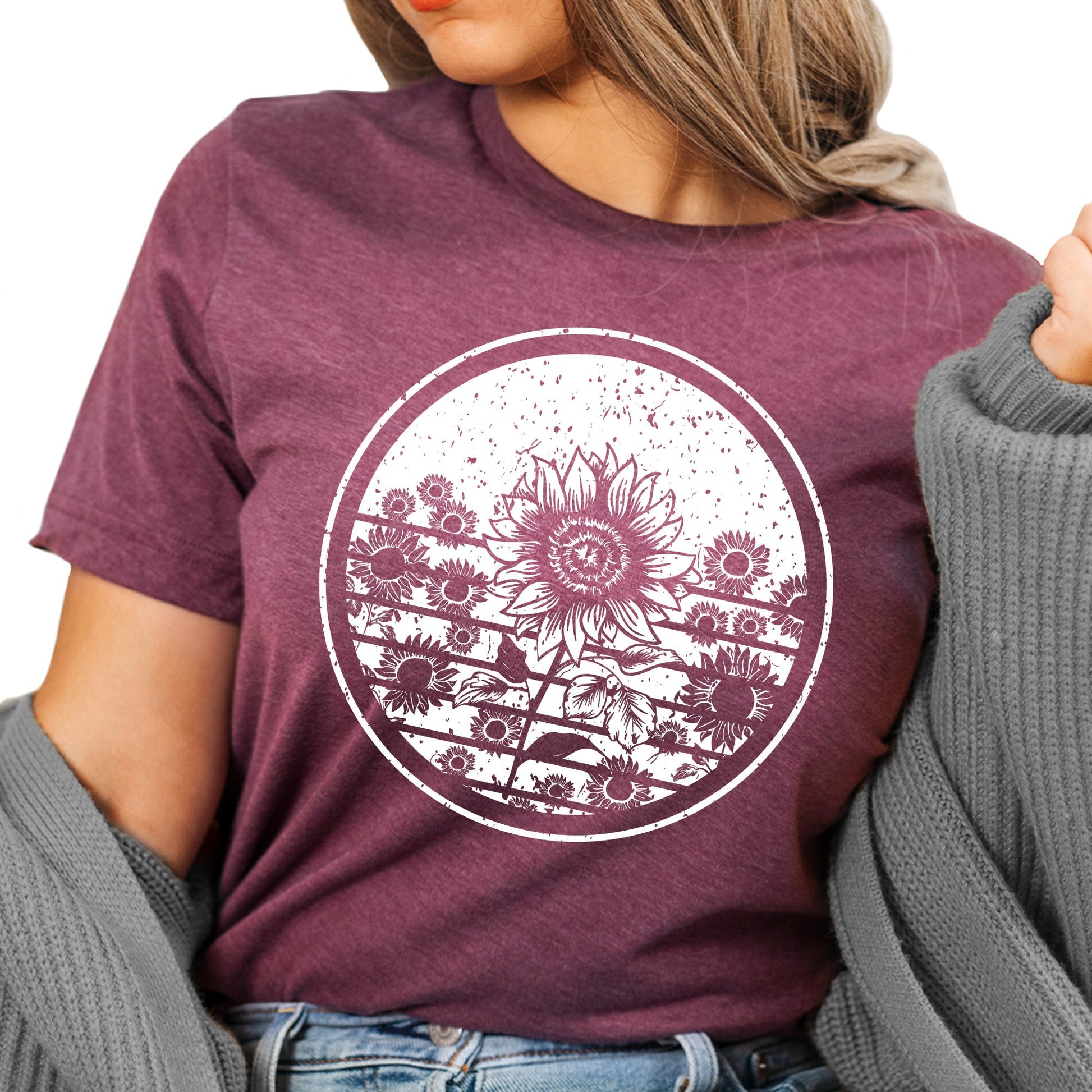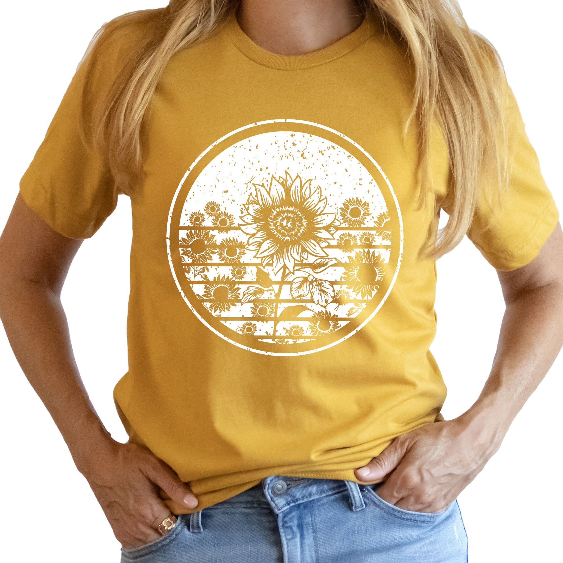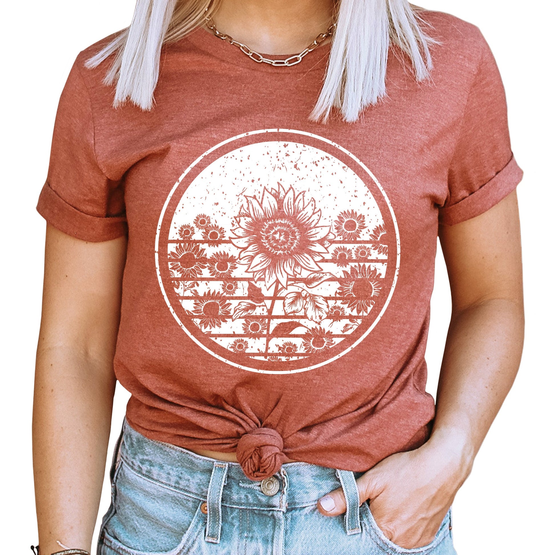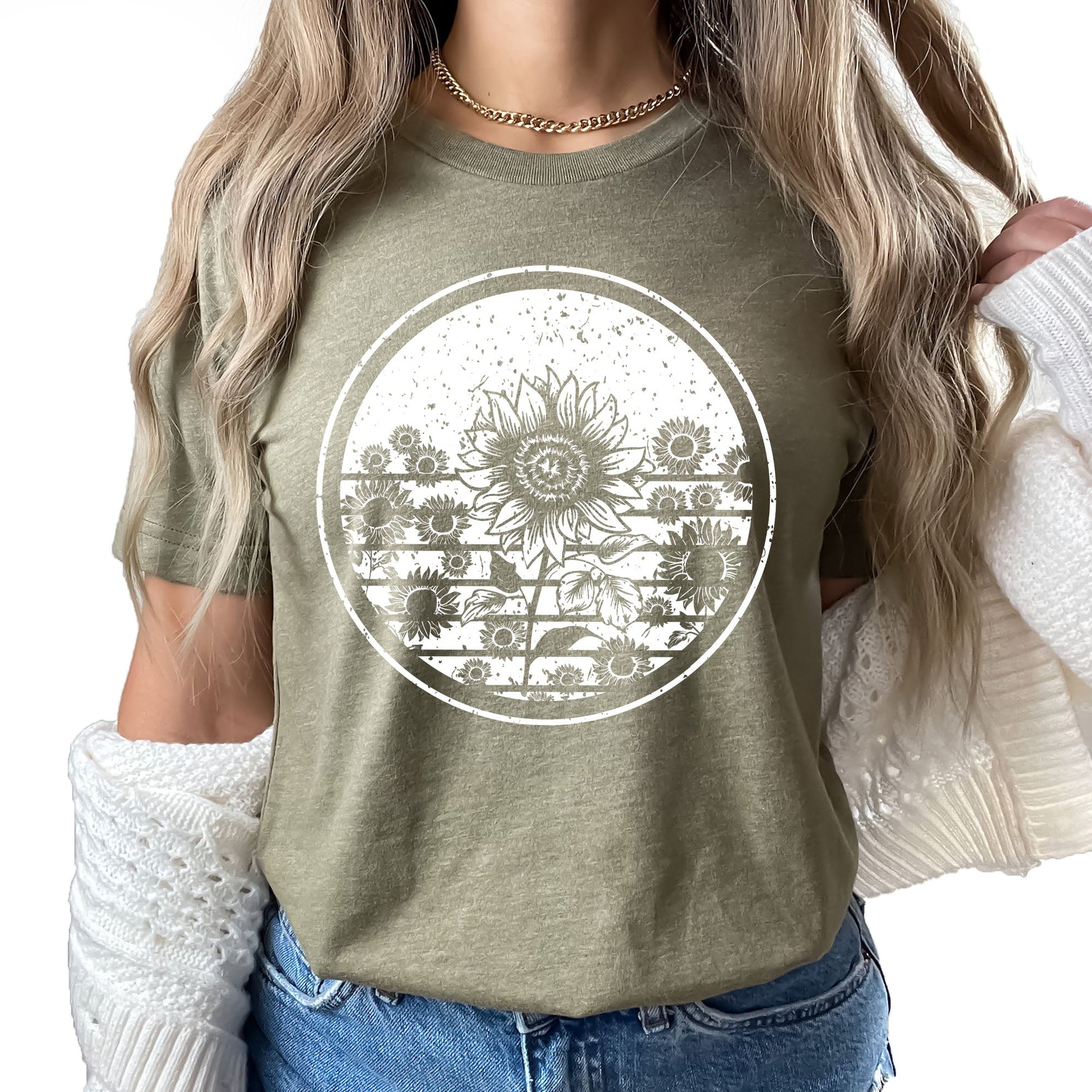 Sunflower Love Circle Graphic Tee | Popular Summer | Sunflower Patch | Vintage Flower | Summer | Sun