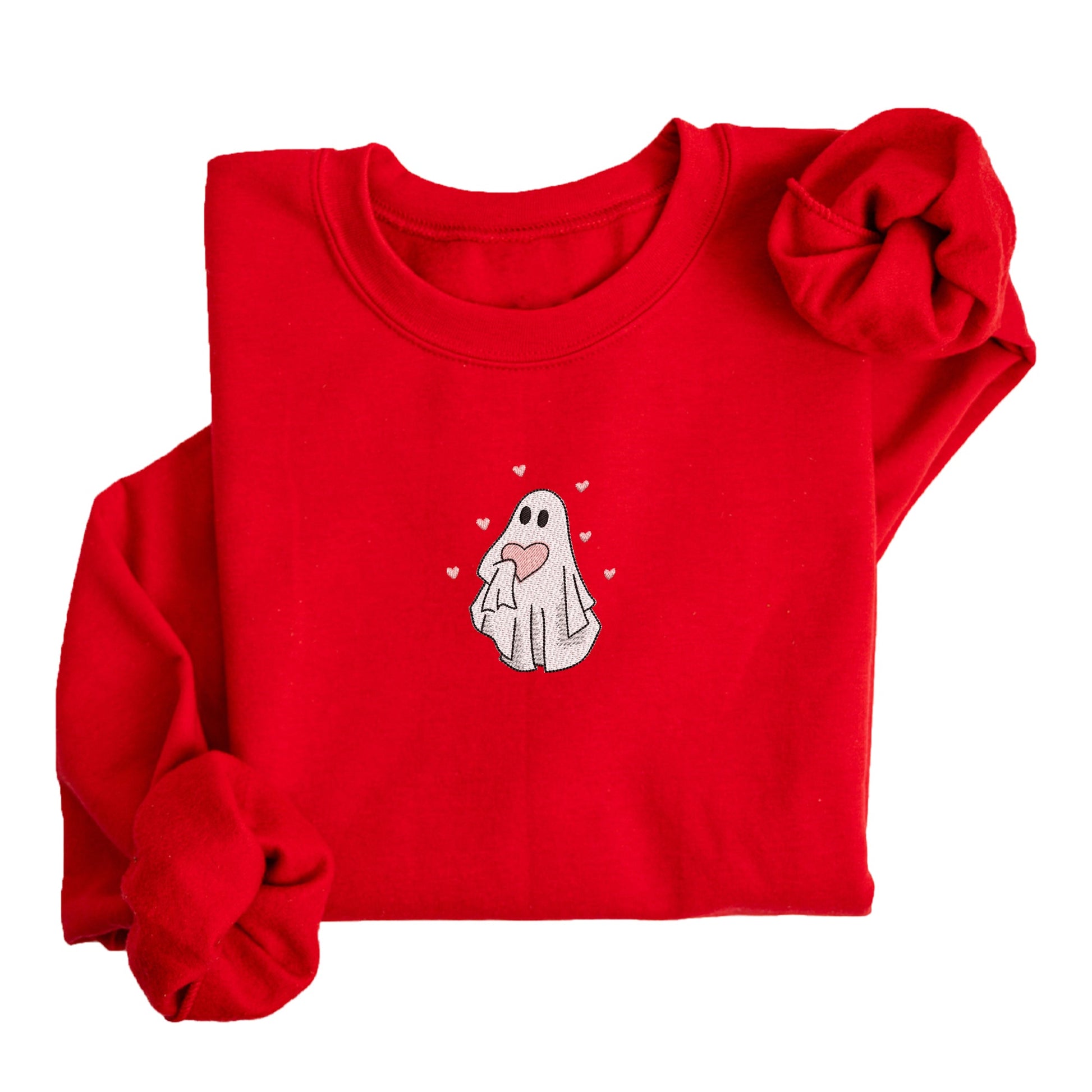 Elevate your Valentine's Day style with our Pink Heart Ghost Embroidered Sweatshirt, a cozy and chic choice for celebrating love. This pullover is not just a piece of clothing; it's a warm embrace adorned with charming embroidered hearts, perfect for the romantic season. With its comfy fleece lining, this sweatshirt brings both comfort and style together effortlessly. Whether you're planning a cozy night in or a casual outing, pair it with jeans for an easygoing yet fashion-forward look. Embrace the spirit of Valentine's Day with this delightful sweatshirt that radiates love and style in every stitch.