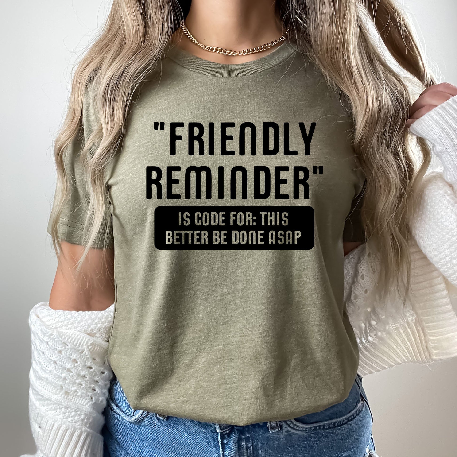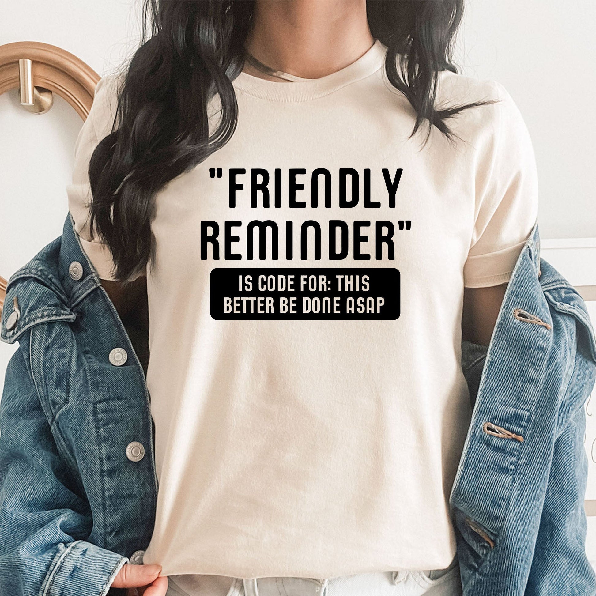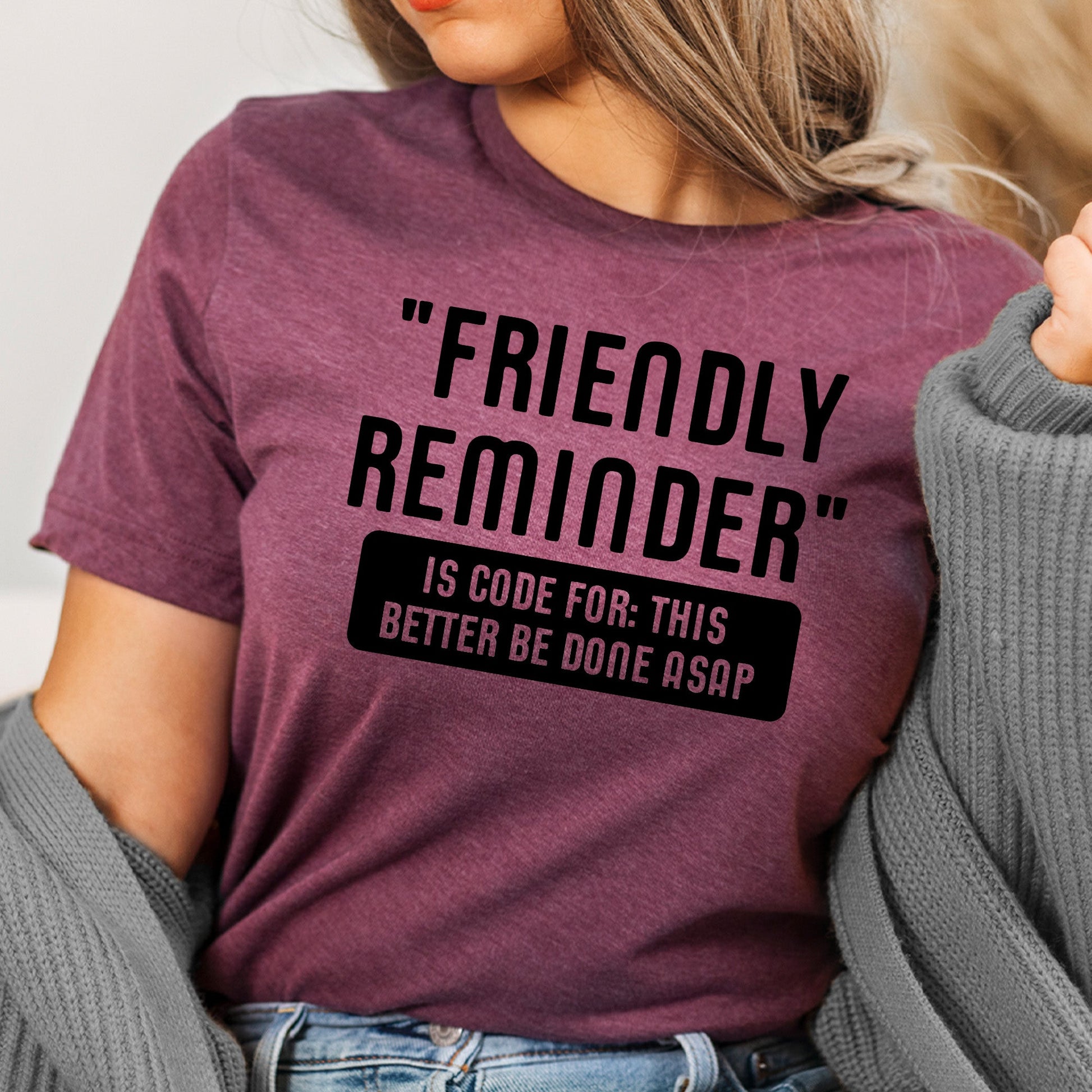 Work Email Humor Friendly Reminder Graphic Tee | Funny Work Graphics | Sarcastic | Office | Work Humor