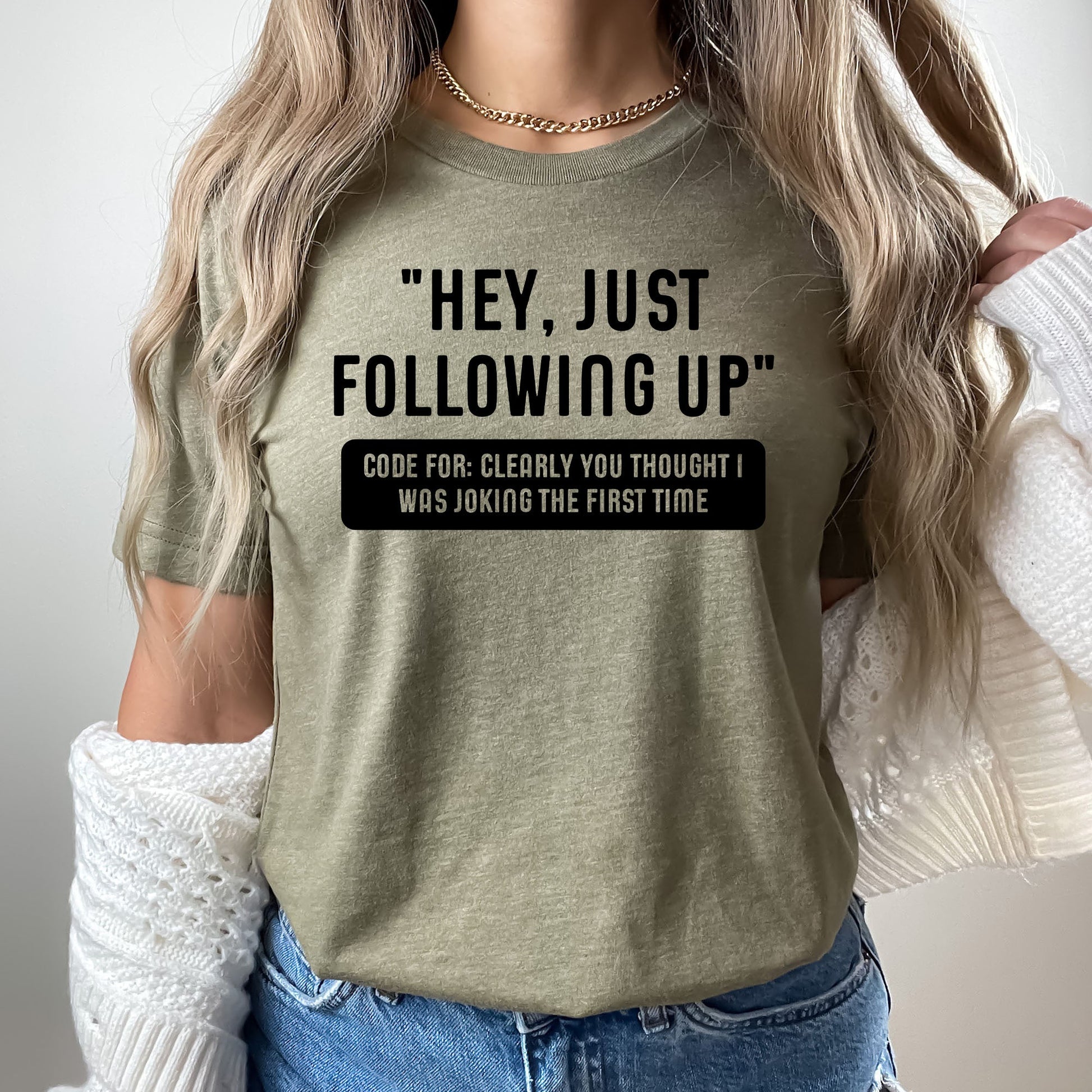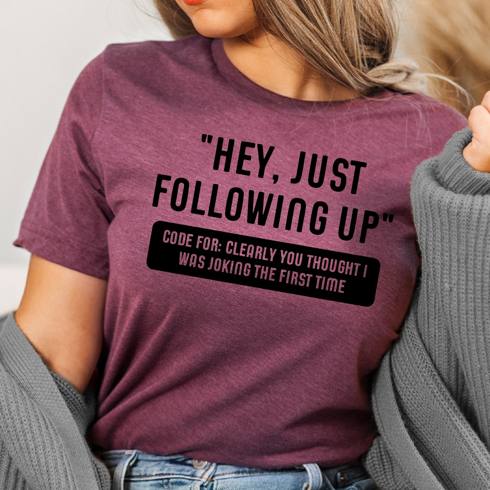 Work Email Humor Hey Just Following Up Graphic Tee | Funny Work Graphics | Sarcastic | Office | Work Humor