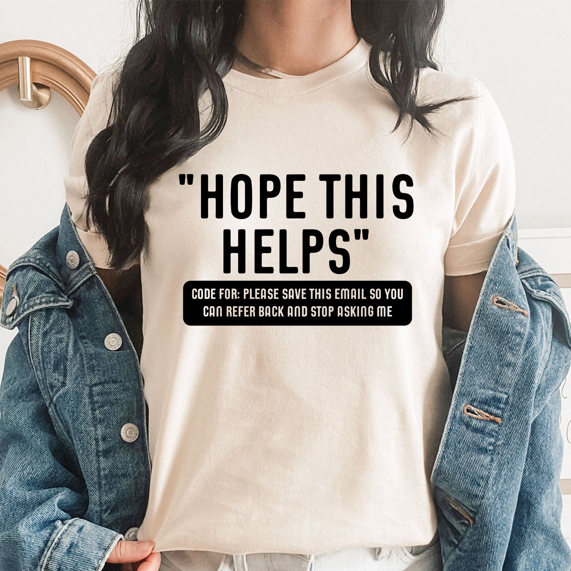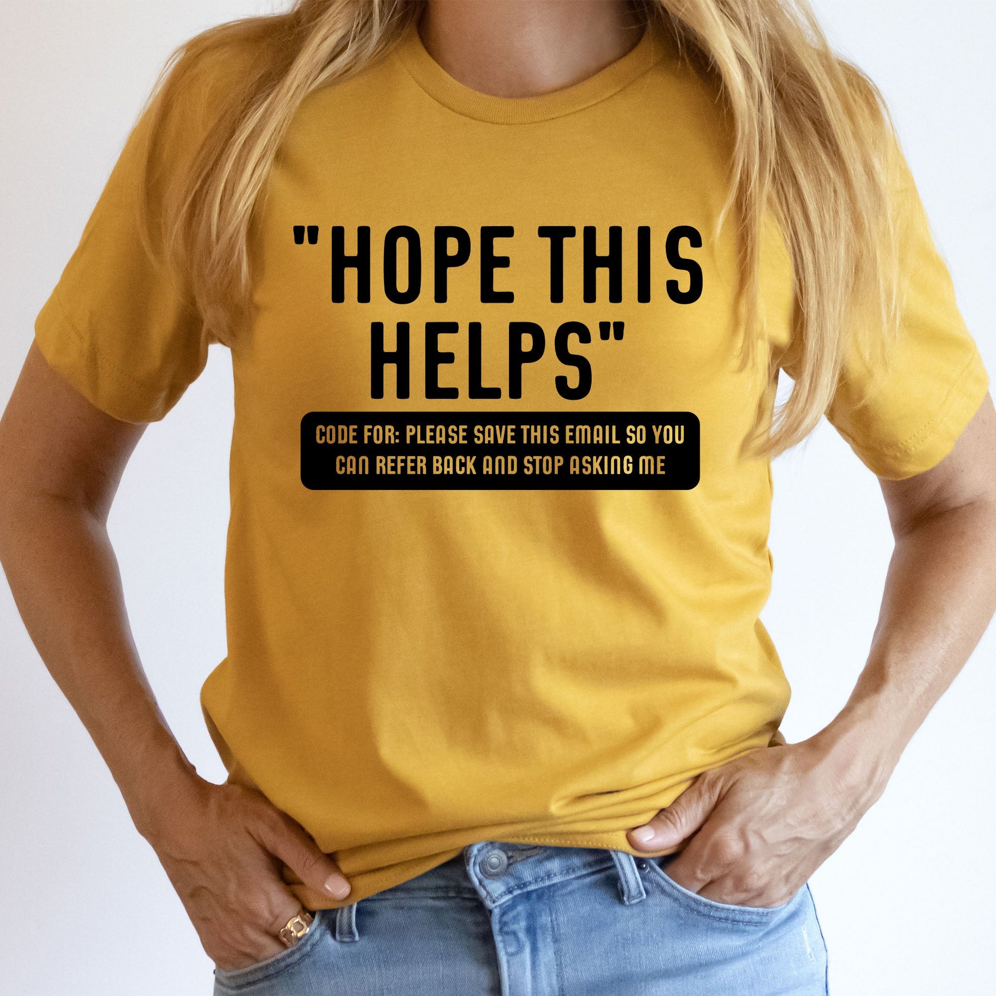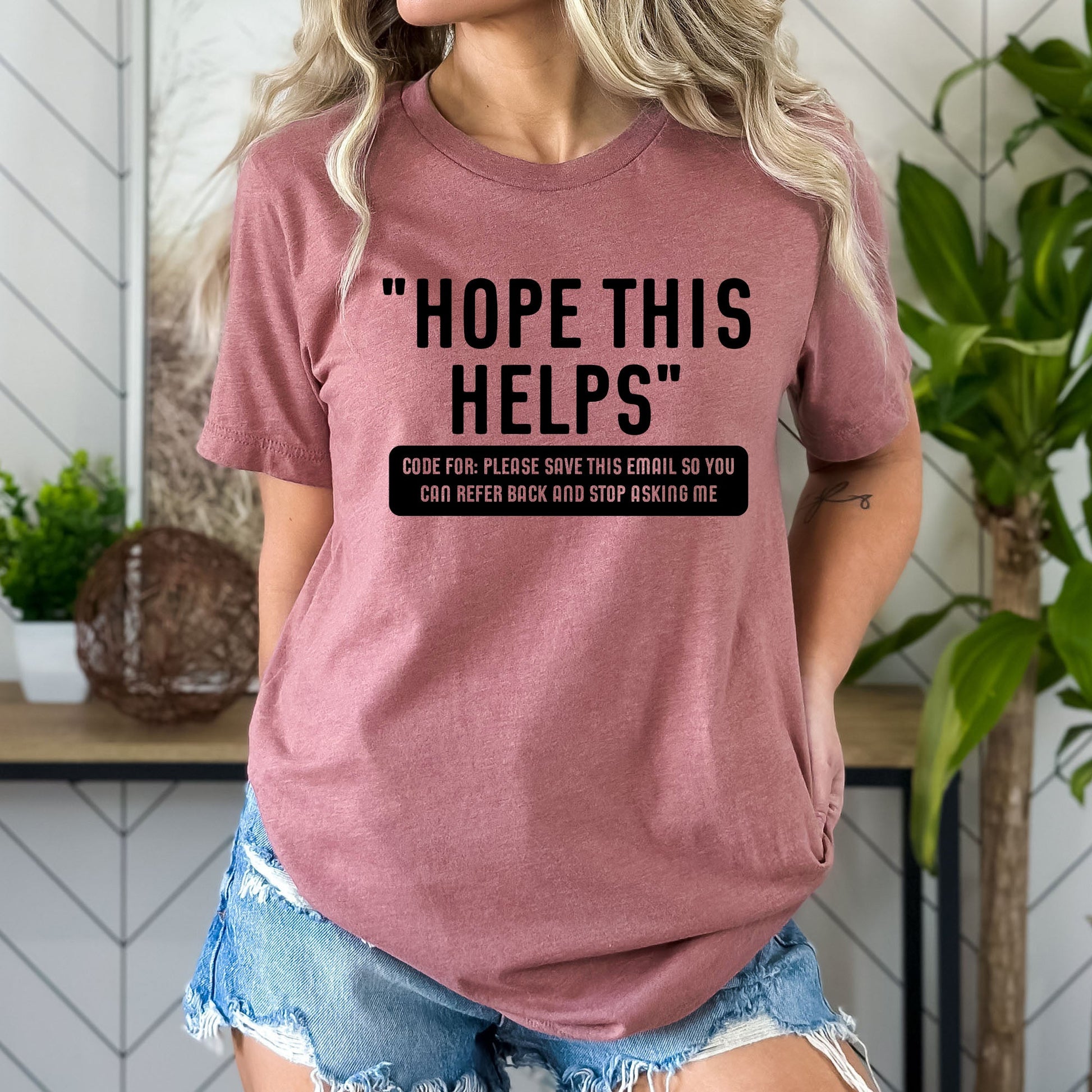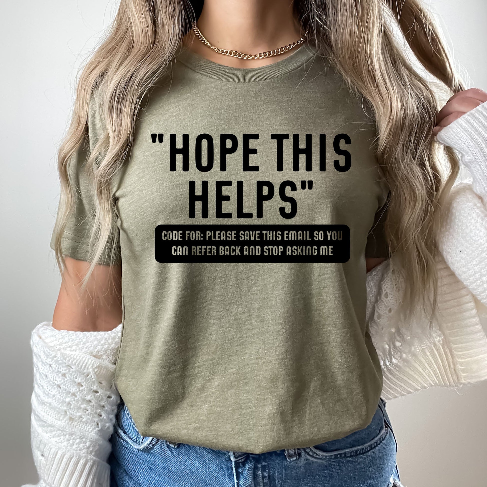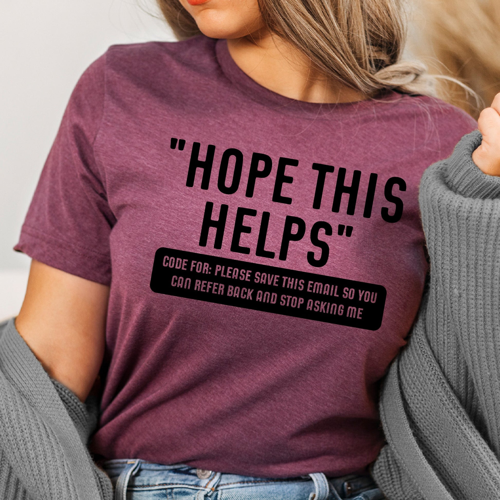 Work Email Humor Hope This Helps Graphic Tee | Funny Work Graphics | Sarcastic | Office | Work Humor