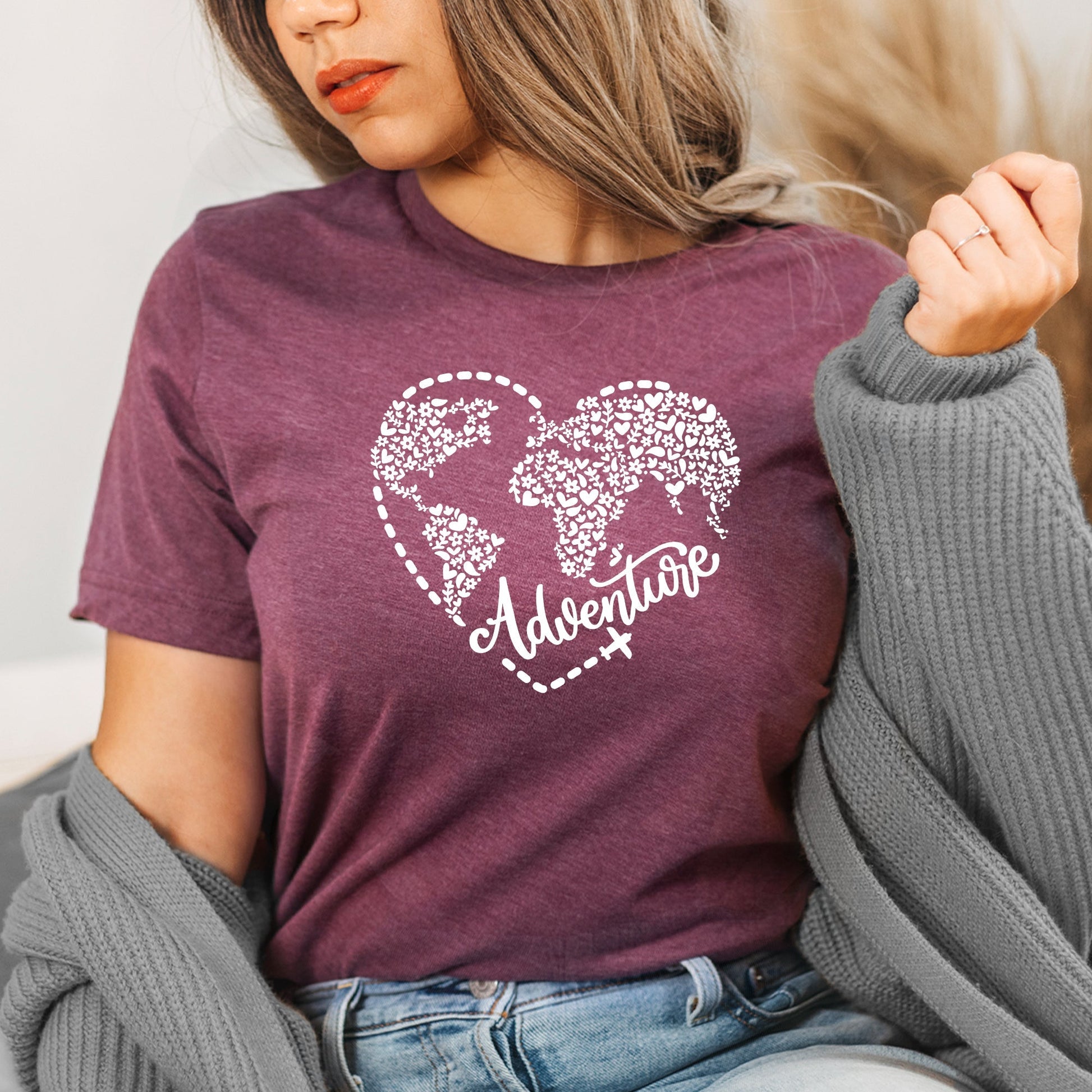 Adventure Heart Graphic Tee | Adventure Awaits | Earth | Trip | Travel | Bon Voyage | Trip Around The World | Exploring | Layering Tee