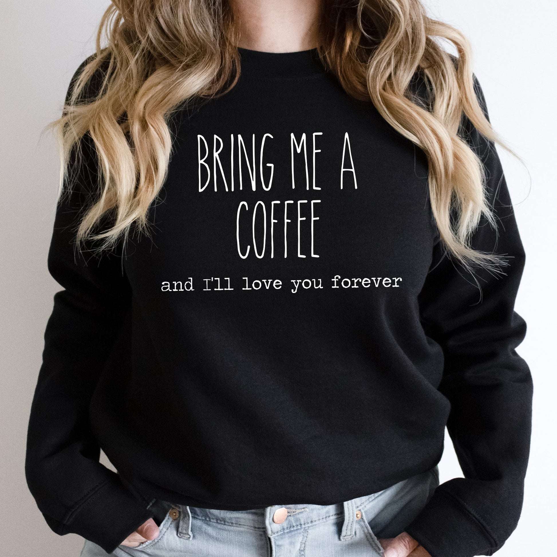 Bring Me A Coffee And I'll Love You Forever Sweatshirt | Fleece Lined Pullover | Caffeine Lover | Soda Tees | Popular Graphic | Caffeinated Drinks
