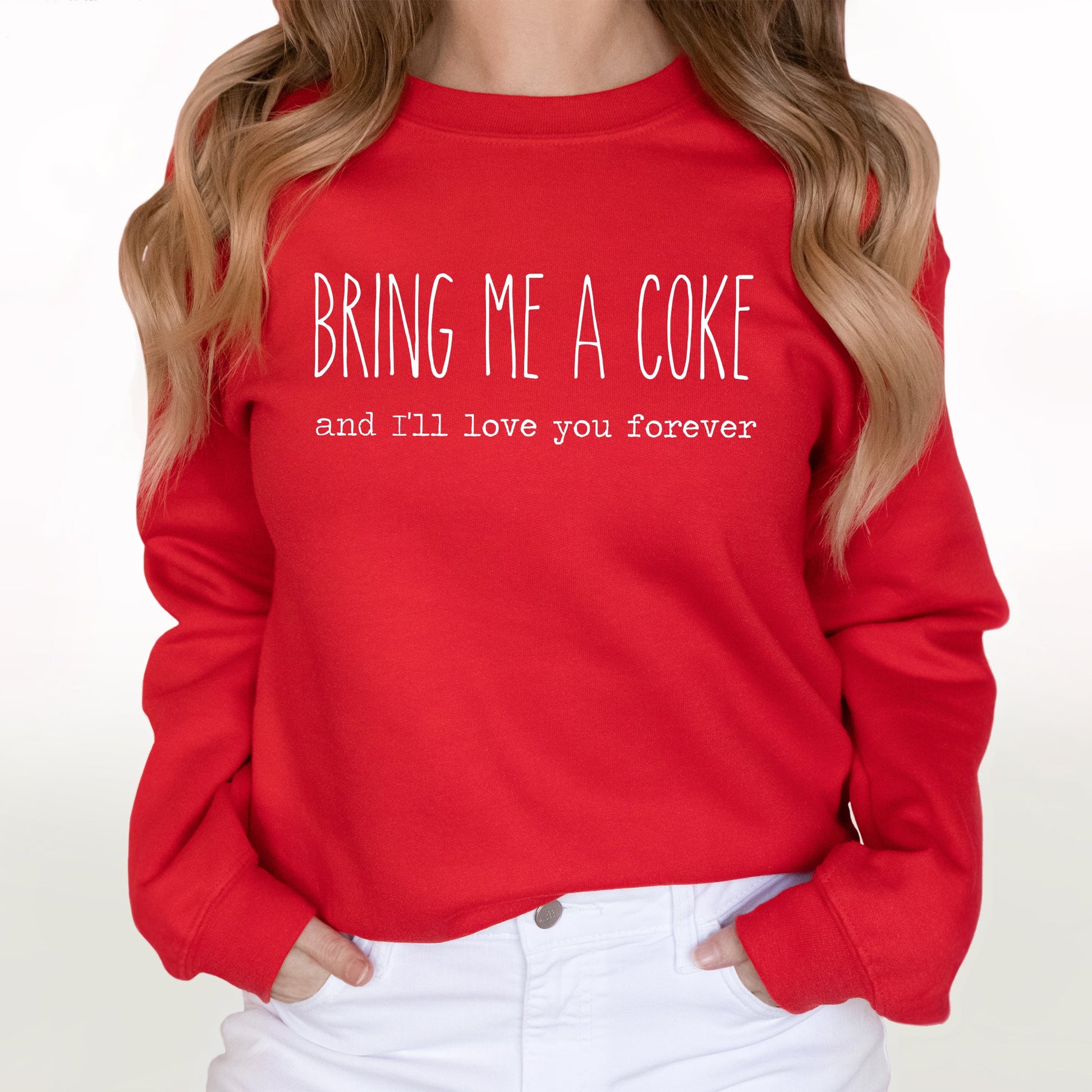 Bring Me A Coke And I'll Love You Forever Sweatshirt | Fleece Lined Pullover | Caffeine Lover | Soda Tees | Popular Graphic | Caffeinated Drinks
