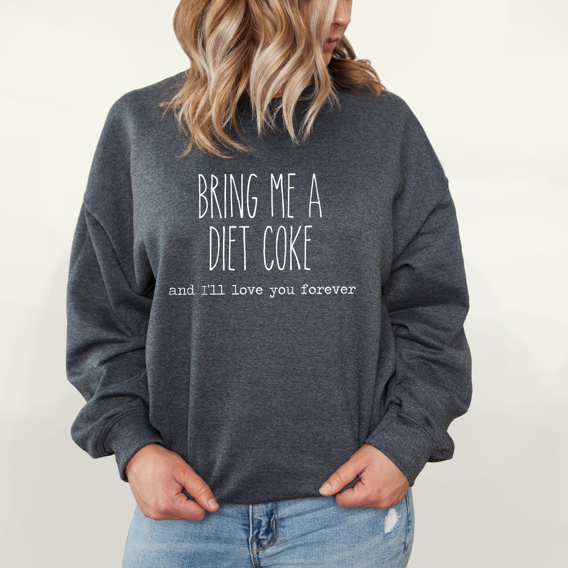Bring Me A Diet Coke And I'll Love You Forever Sweatshirt | Fleece Lined Pullover | Diet | Caffeine Lover | Soda Tees | Popular Graphic | Caffeinated Drinks