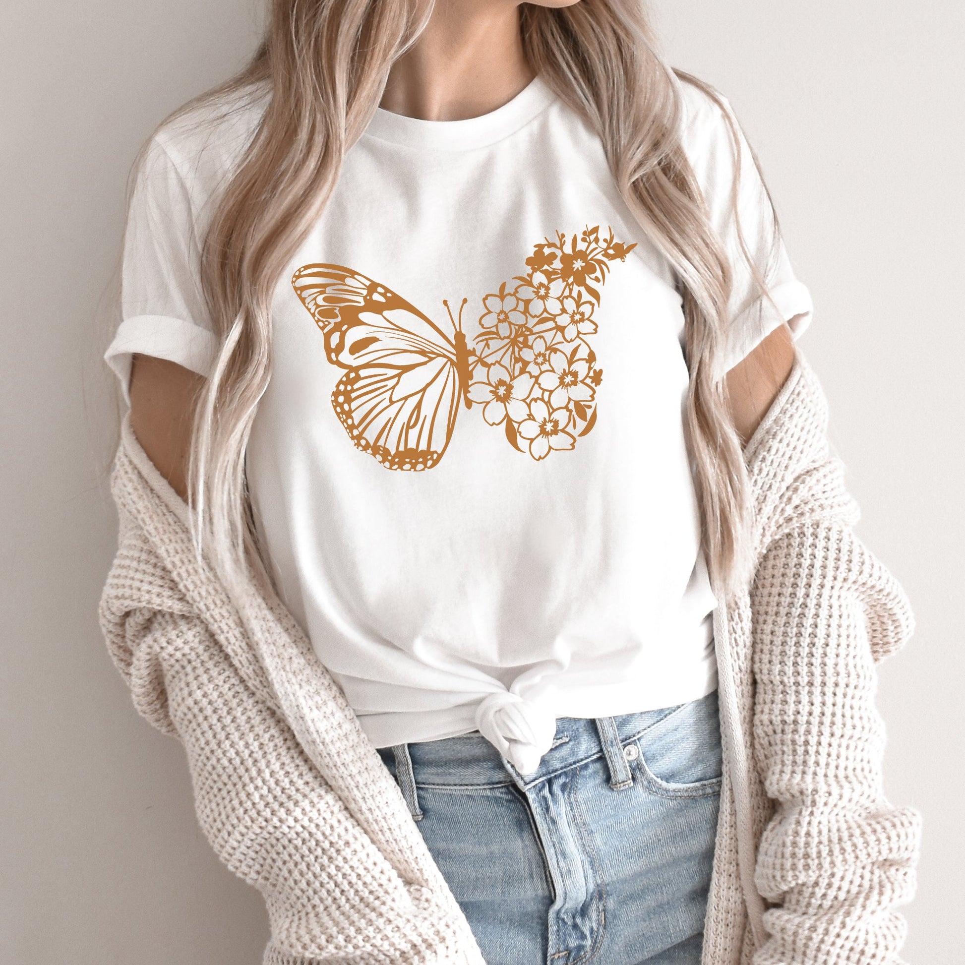 Crafted with both comfort and a touch of nature-inspired elegance in mind, this tee features premium cotton for a soft and breathable feel against your skin. The captivating graphic showcases a vibrant butterfly in flight, surrounded by wildflowers, evoking a sense of whimsy and natural beauty.