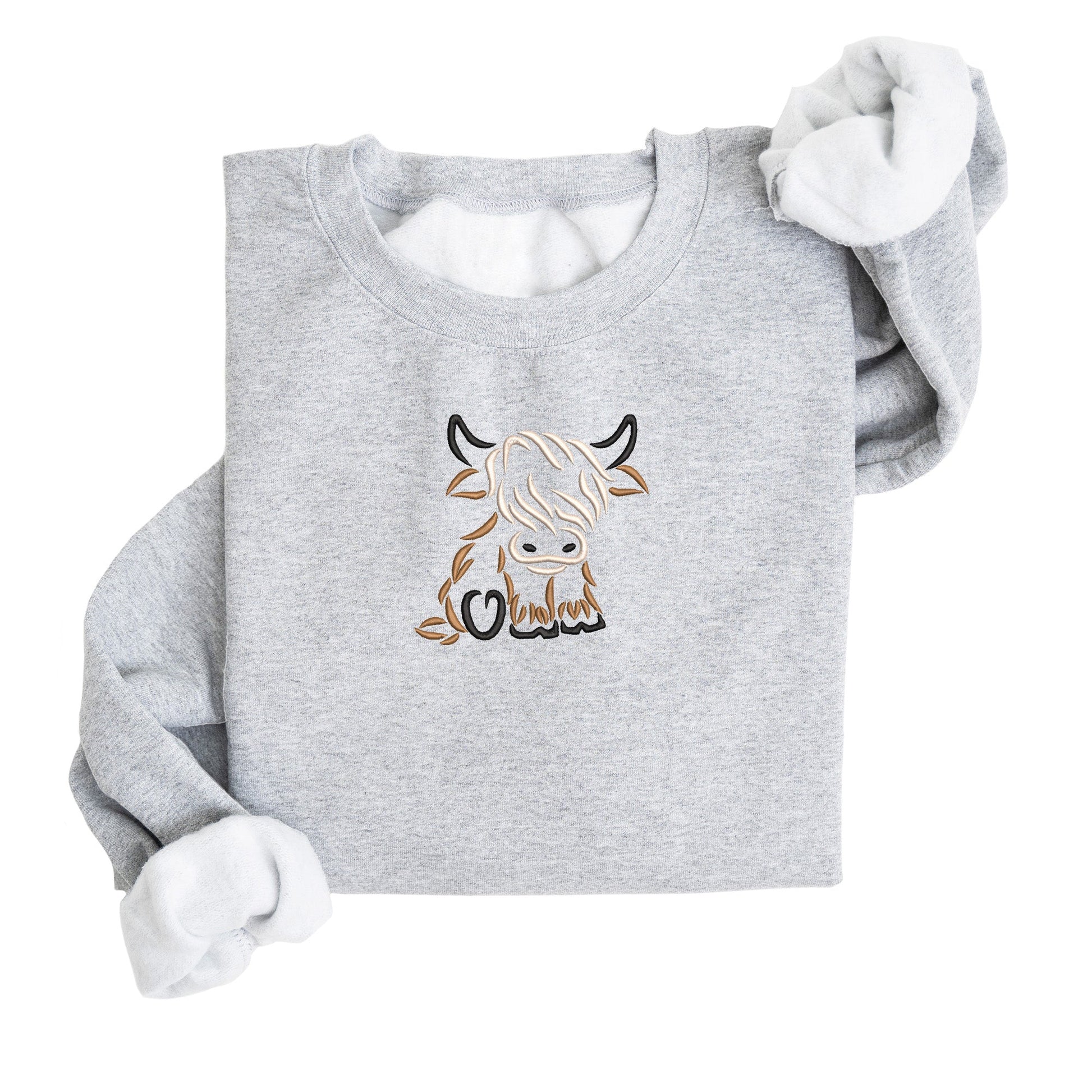 Highland Cow Embroidered Sweatshirt | Fleece Lined Pullover | Western Cow | Cute Animal | Baby Cow | Stitched