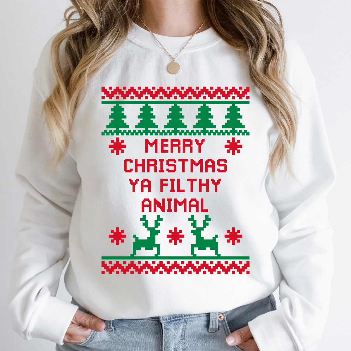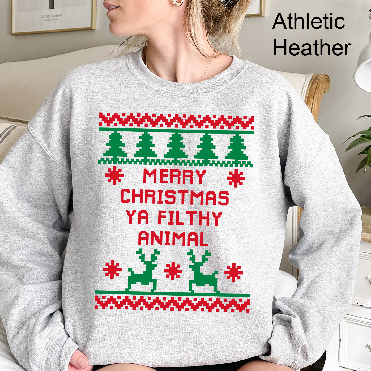 Merry Christmas Ya Filthy Animal Comfy Sweatshirt | Ugly Christmas Sweater | Holiday Movie | Prank | Christmas Show | Vacation | Funny Graphic