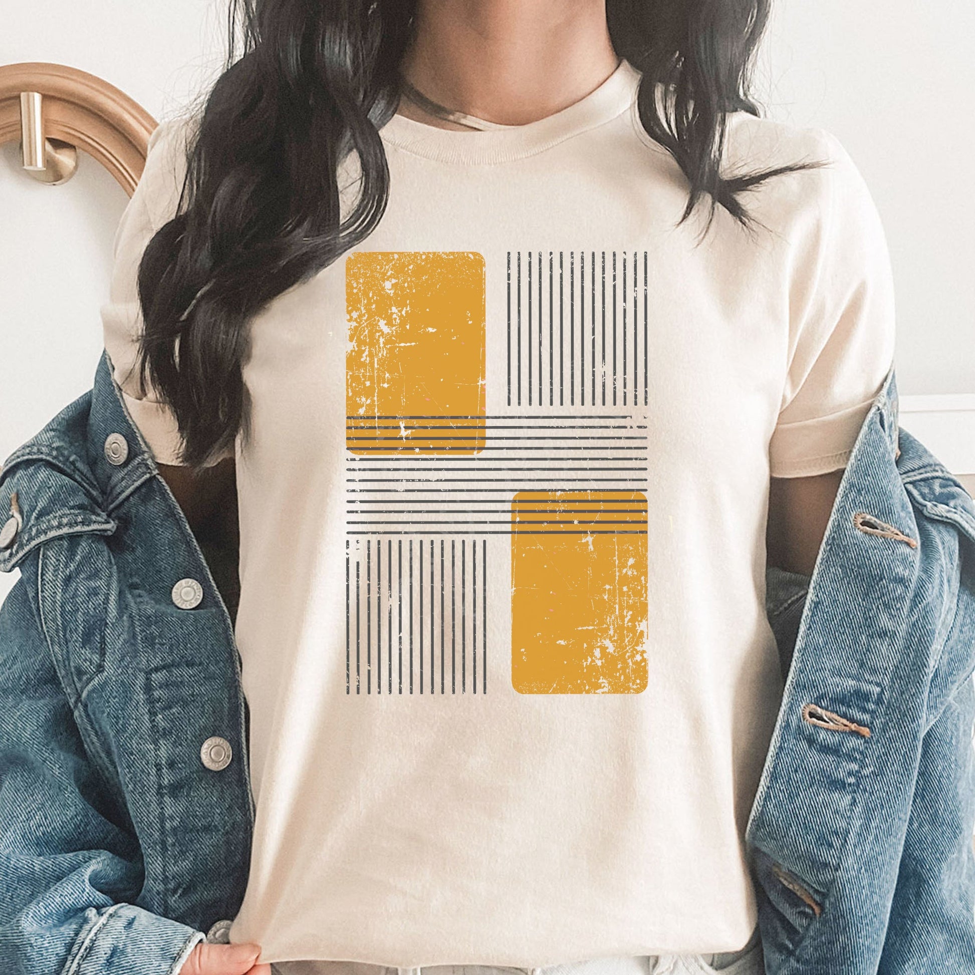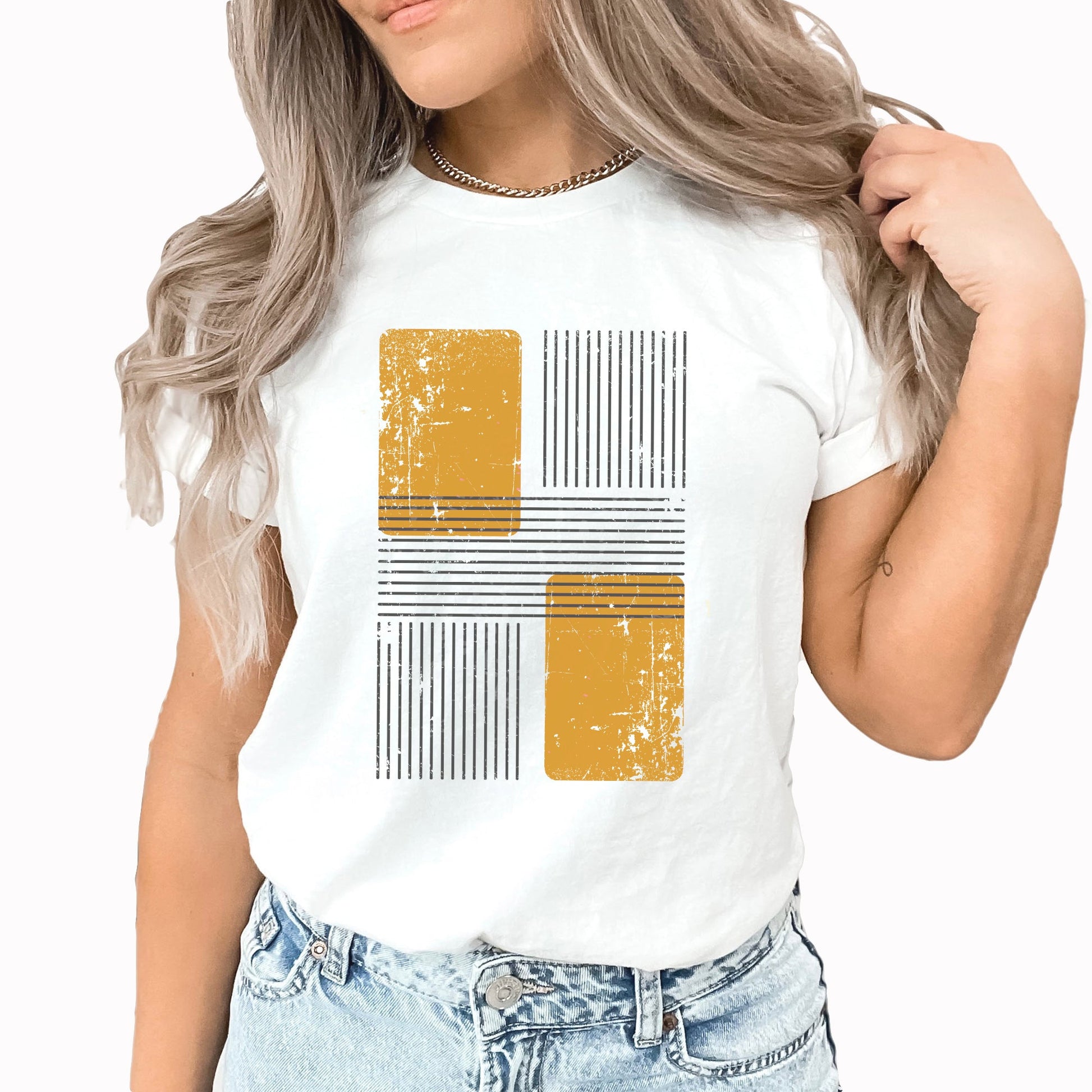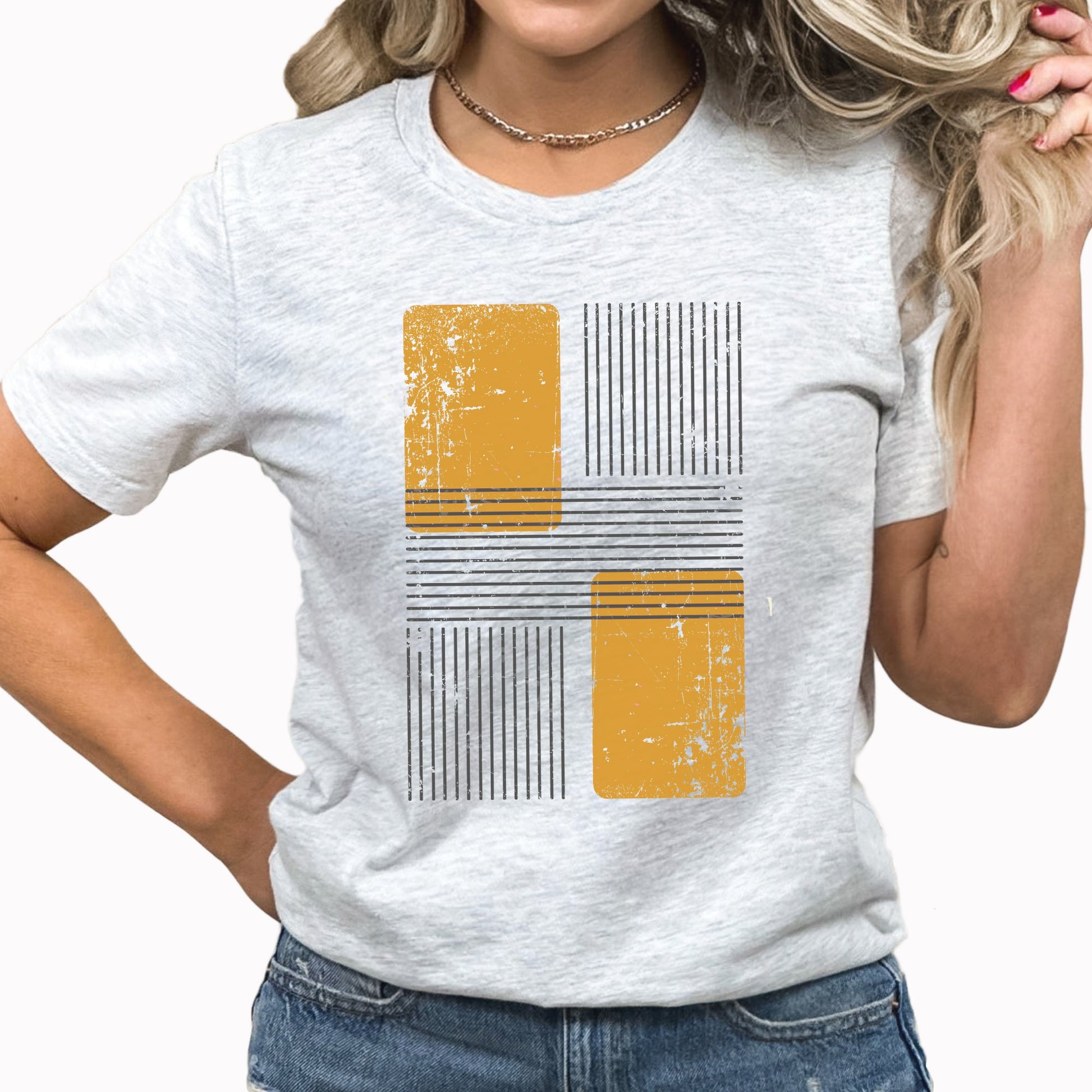 Mustard Yellow Block Graphic Tee | Abstract Block Design