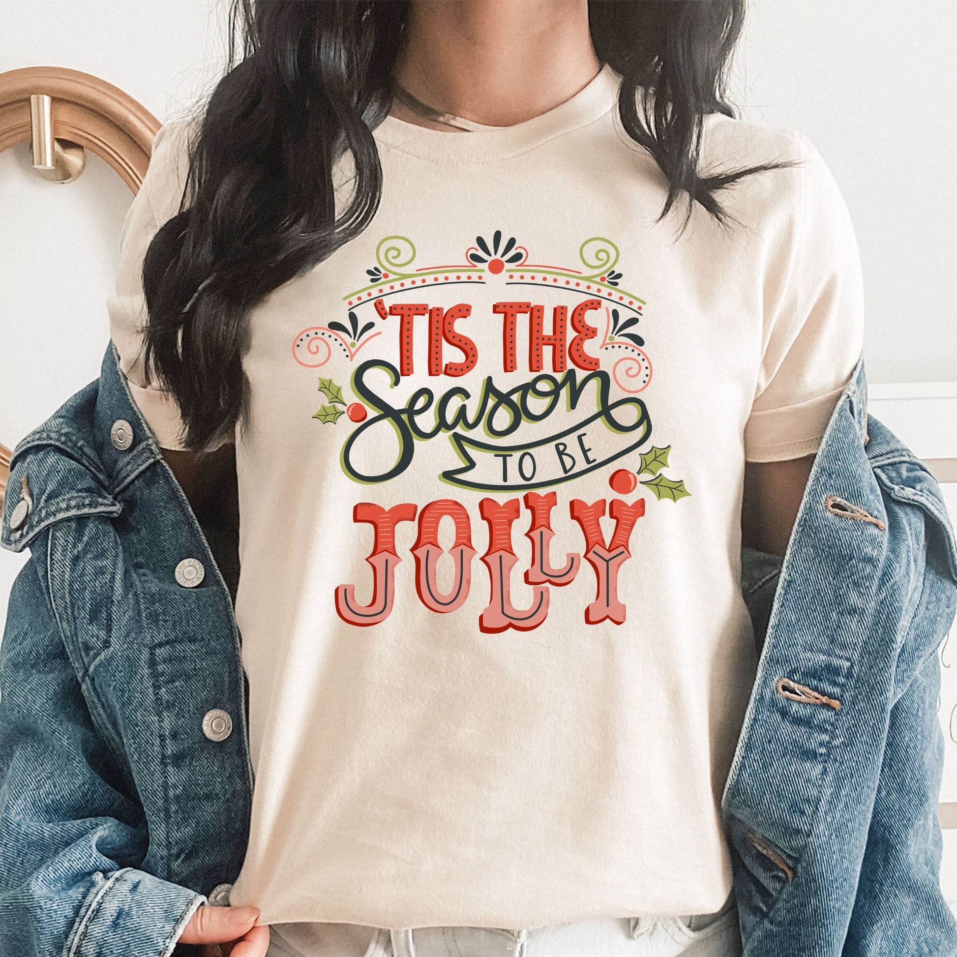 Tis the Season To Be Jolly Graphic Tee | Christmas Season | Holliday | Merry | Jolly | | Holly | Song Lyrics | Layering Tee